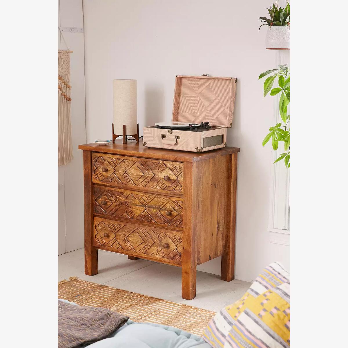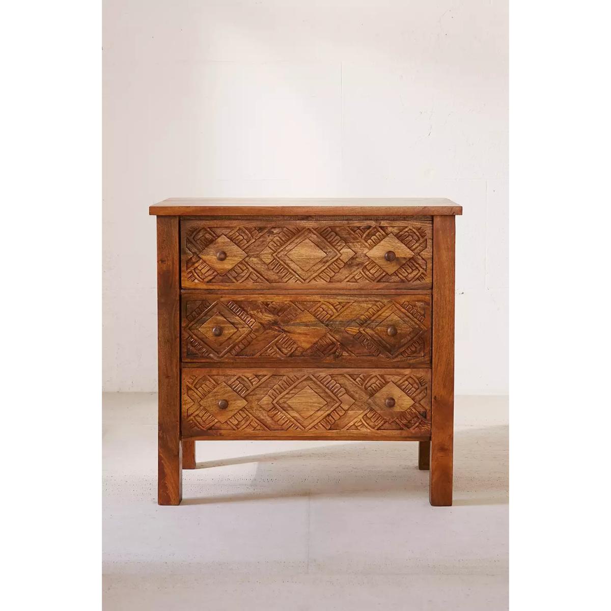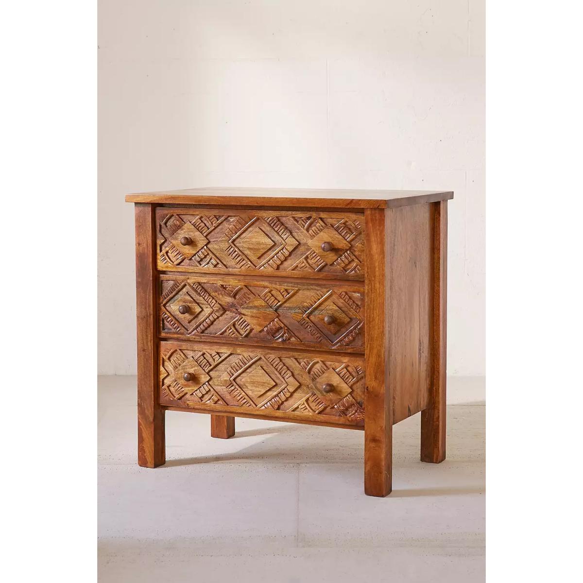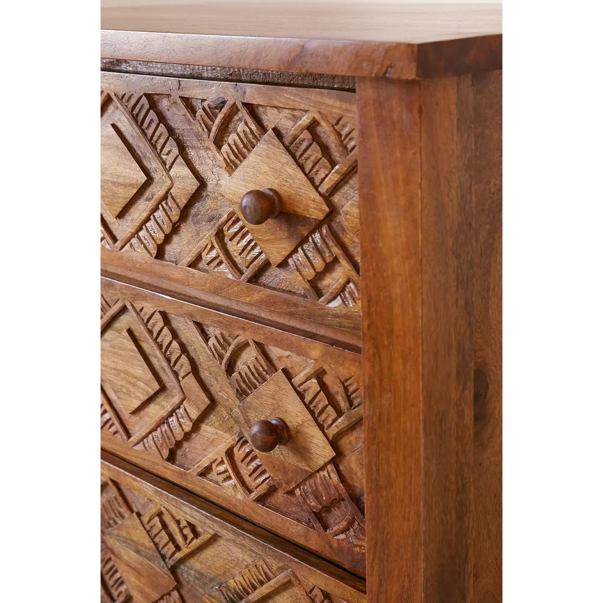 Carved detailing side table with orate cut-out motifs throughout. Crafted from solid mango wood with a natural-finish patina, this sturdy side table makes a great bedside or storage addition in your space. Finished with a drawer and four straight legs. *Online return only. This item cannot be returned instore. Please note furniture items currently cannot be shipped to Northern Ireland or The Republic of Ireland. Delivery of large furniture items may take 1-2 weeks and are therefore not eligible for Next Day Delivery.* **Content + Care** \- Wood \- Wipe clean **Size** \- 50cm x 31cm x 61cm