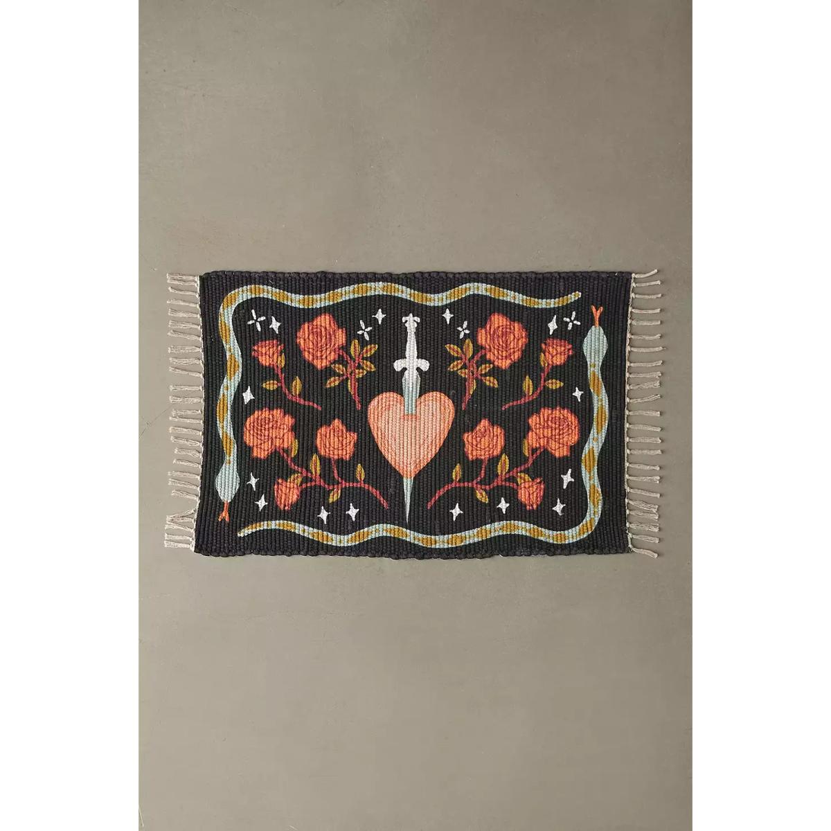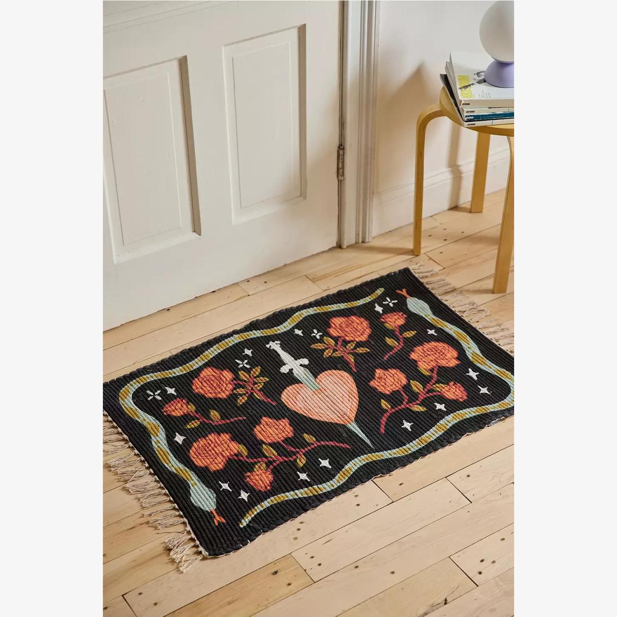 An edgy take on romantic aesthetics, the Amora Rose Printed Rag Rug features a lightweight cotton fabrication with whimsical icons printed allover the top. **Content + Care** \- 100% Cotton \- Hand wash **Size** \- 61cm x 91.5cm (2ft x 3ft)