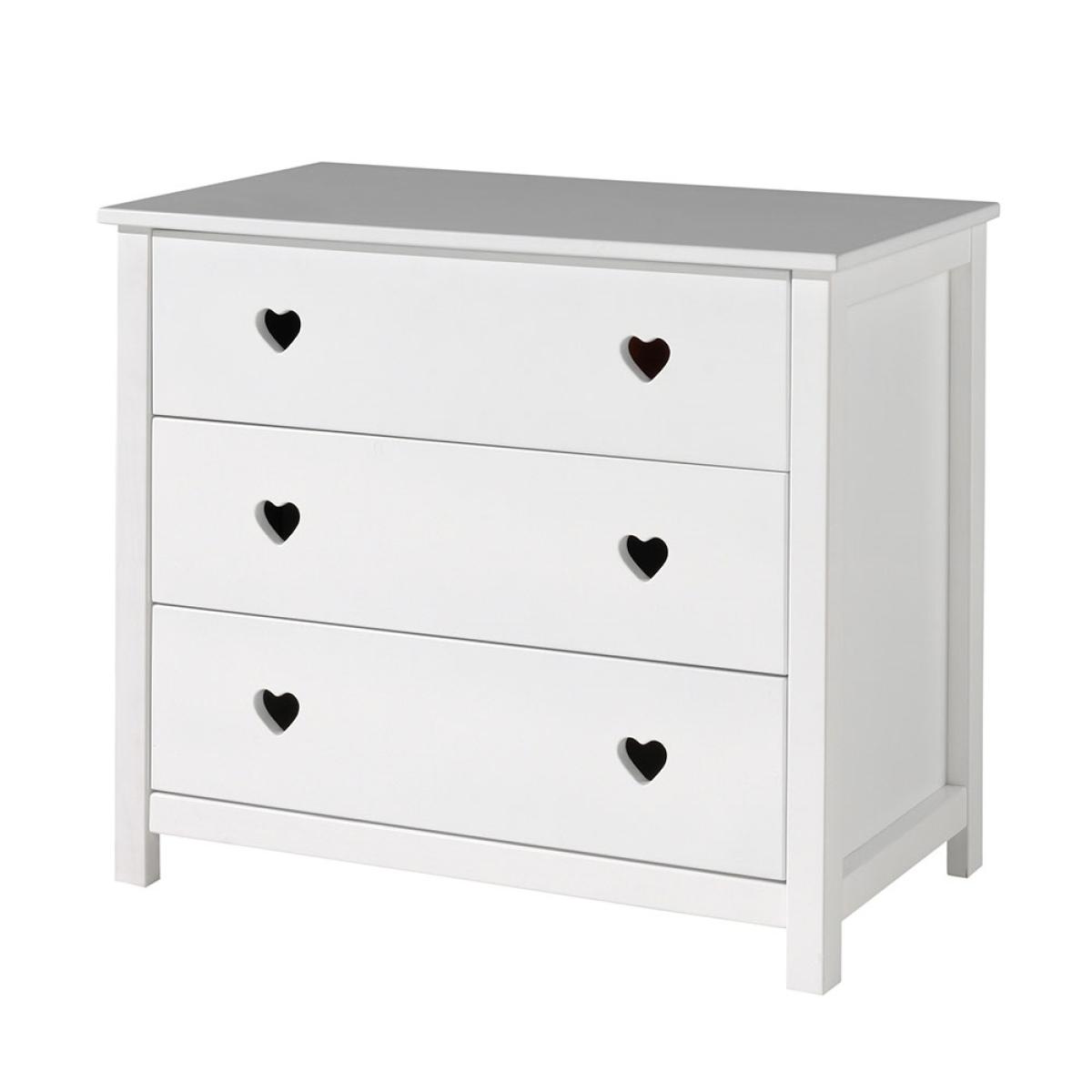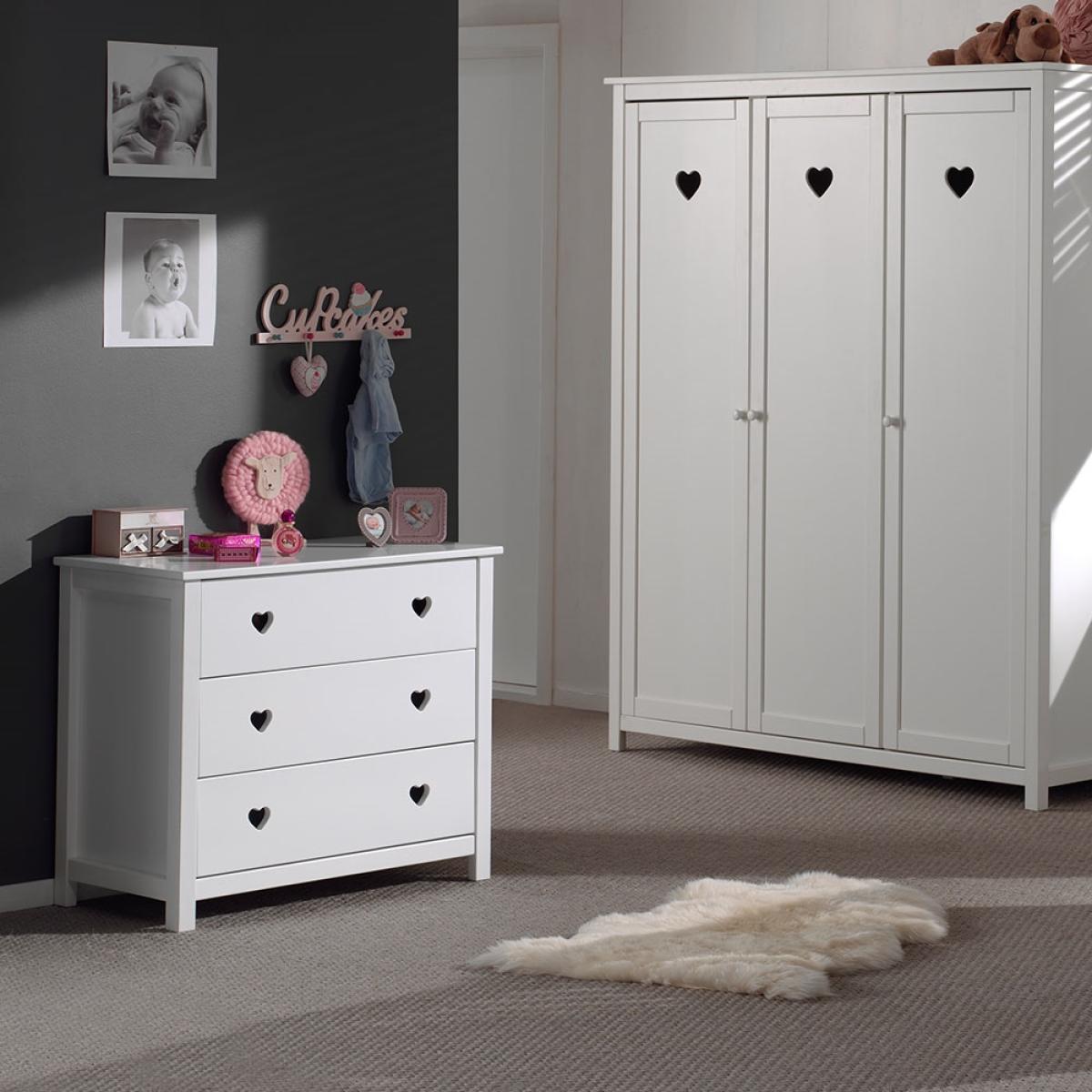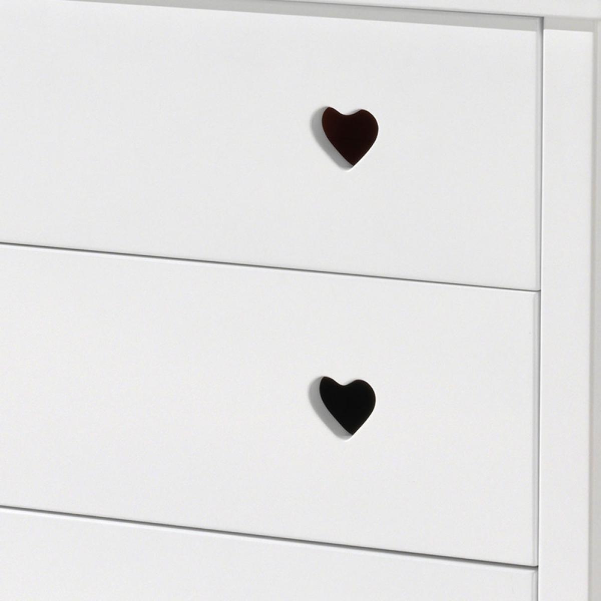 Keeping your little one's bedroom neat and tidy has never looked more adorable with the Amori Kids Chest of Drawers. Manufactured from solid pine and MDF, boasting three drawers, there will be more than enough space to house all their clothes and the space on top will be perfect for displaying their knick-knacks and doodads! With a simple white finish, it will suit any interior style and with a cute cut-out heart detail, your kiddie is sure to love it!.