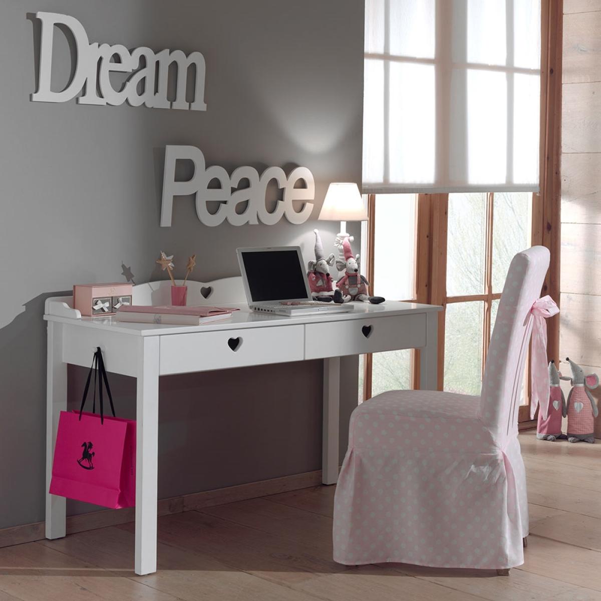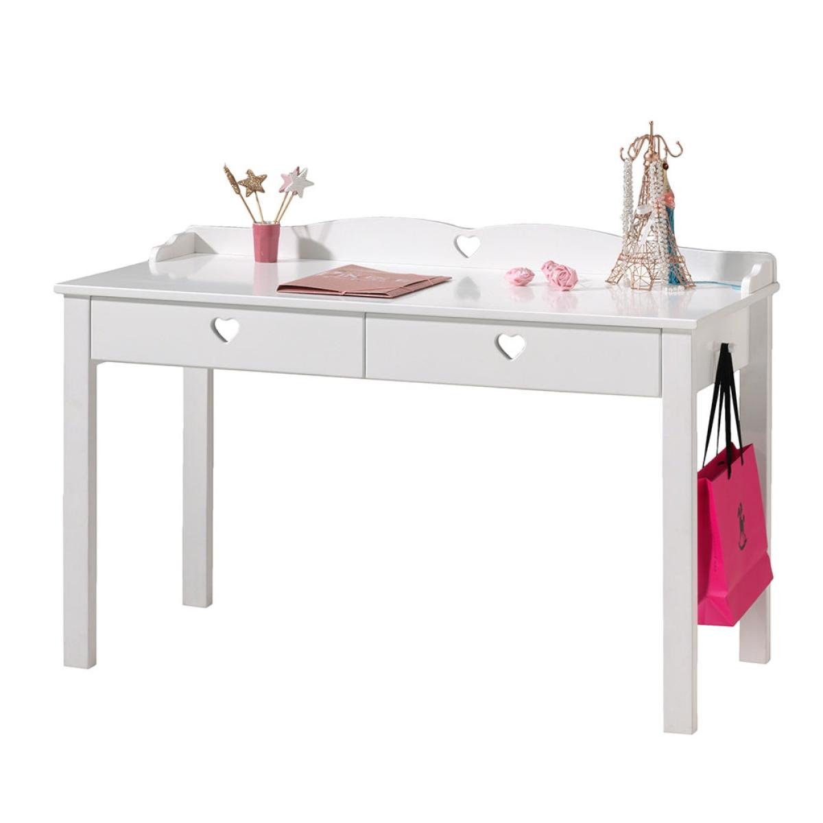 Adorable and practical, the Amori Kids Desk is the ideal place for your little one to get creative. Featuring two drawers, keeping all their bits and bobs organised will be easy whilst the large table top offers up plenty of space to get arty or to finally start that homework they've been avoiding. Manufactured from solid pine and MDF, with a simple white finish, it will suit any interior style and with a cute cut-out heart detail, your kiddie is sure to love it! With other coordinating items in the Amori collection, you could even give your youngster's bedroom a complete makeover.