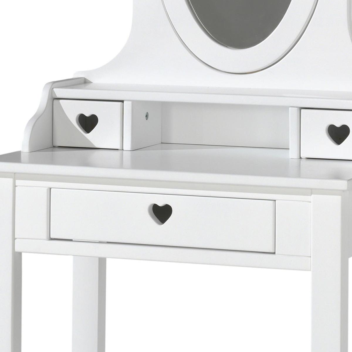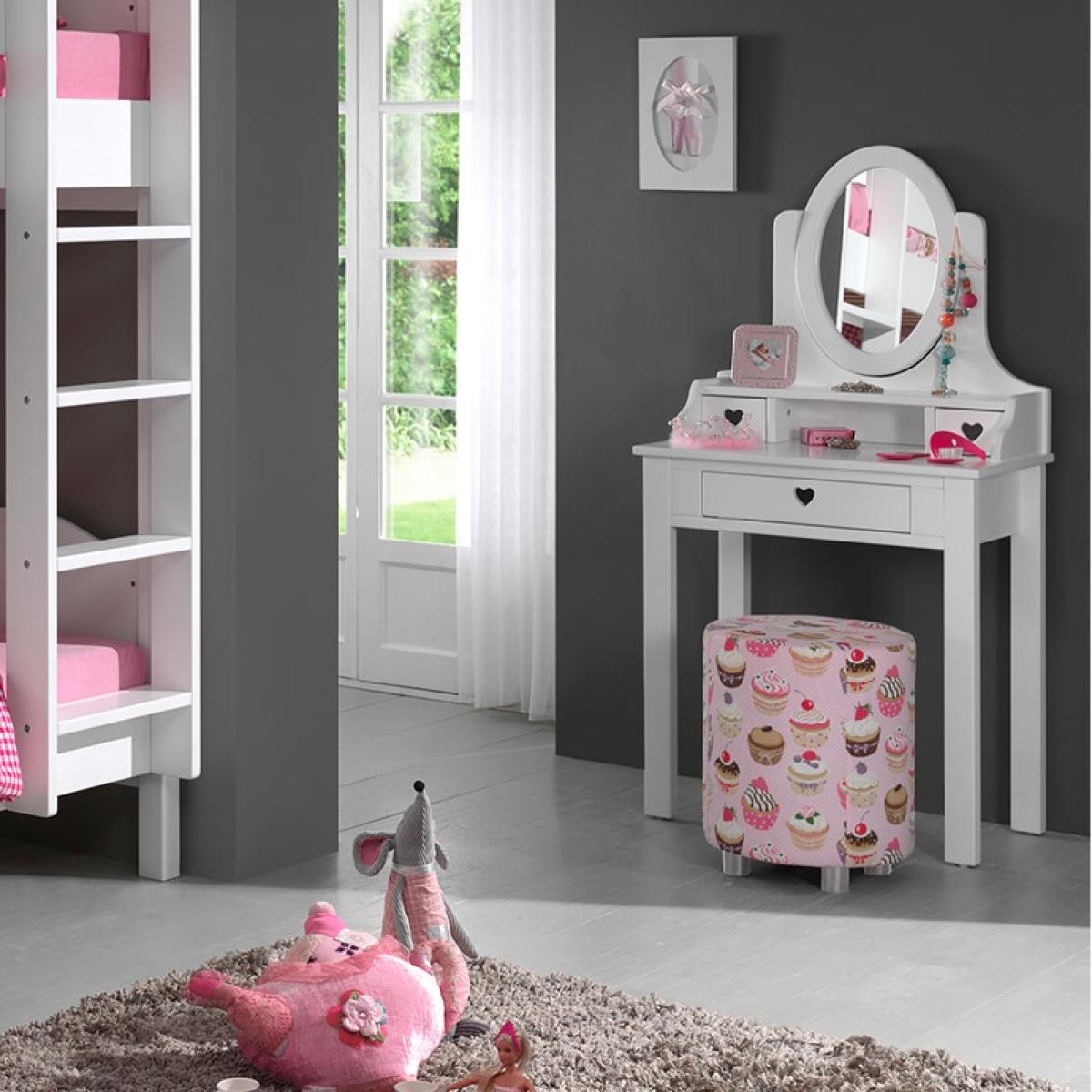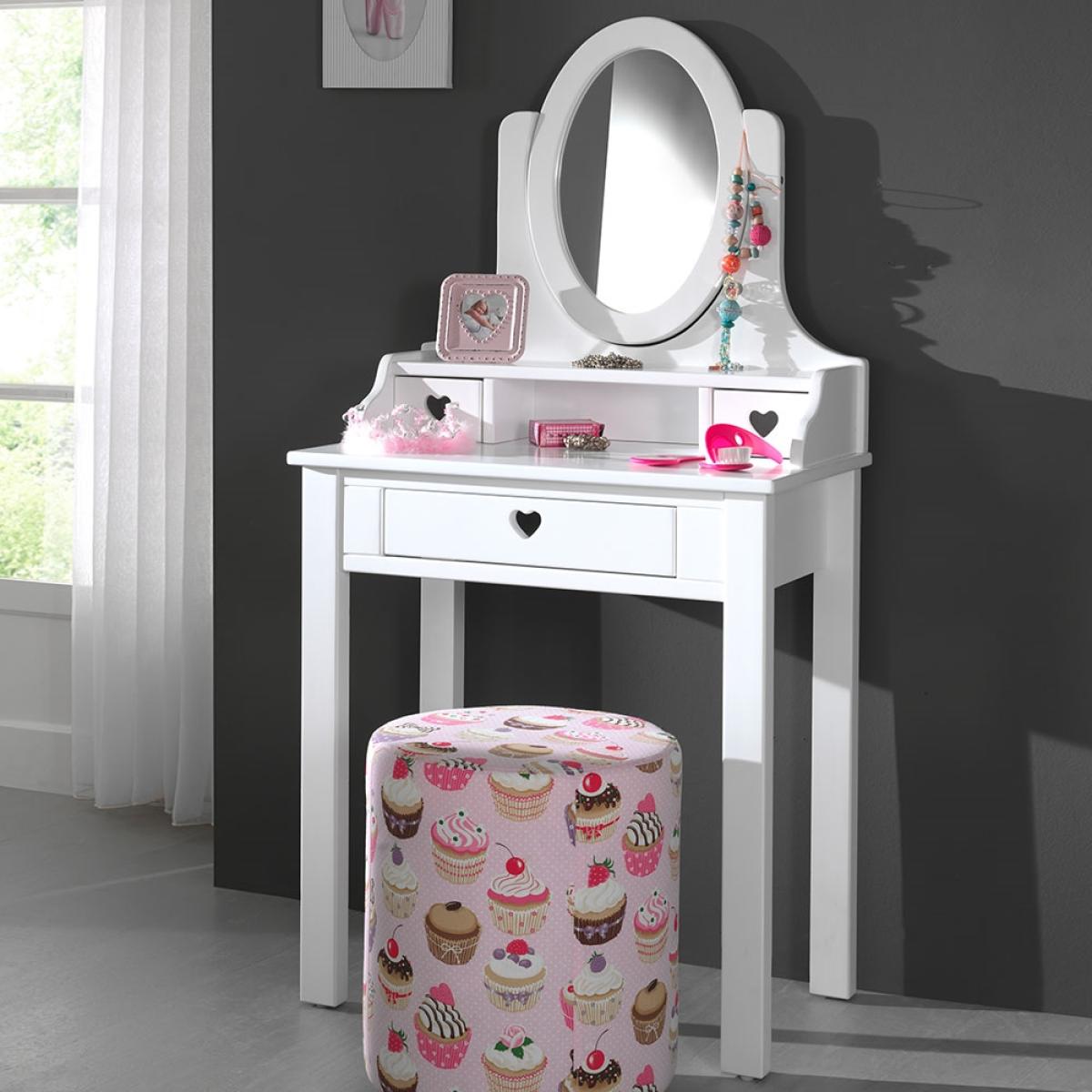 Make your kiddie feel like a grown up with the Amori Kids Dressing Table, they'll love getting ready for the day knowing they've got this adorable table waiting for them. The Amori kids dressing table has a large drawer and two smaller drawers, it will be perfect for storing there hair accessories, jewellery and trinkets. Plus with a tiltable mirror, practising with Mum's lipstick and blush will be one easy task. Manufactured from solid pine and MDF, with a simple white finish, it will suit any interior style and with a cute cut-out heart detail, your kiddie is sure to love it!.