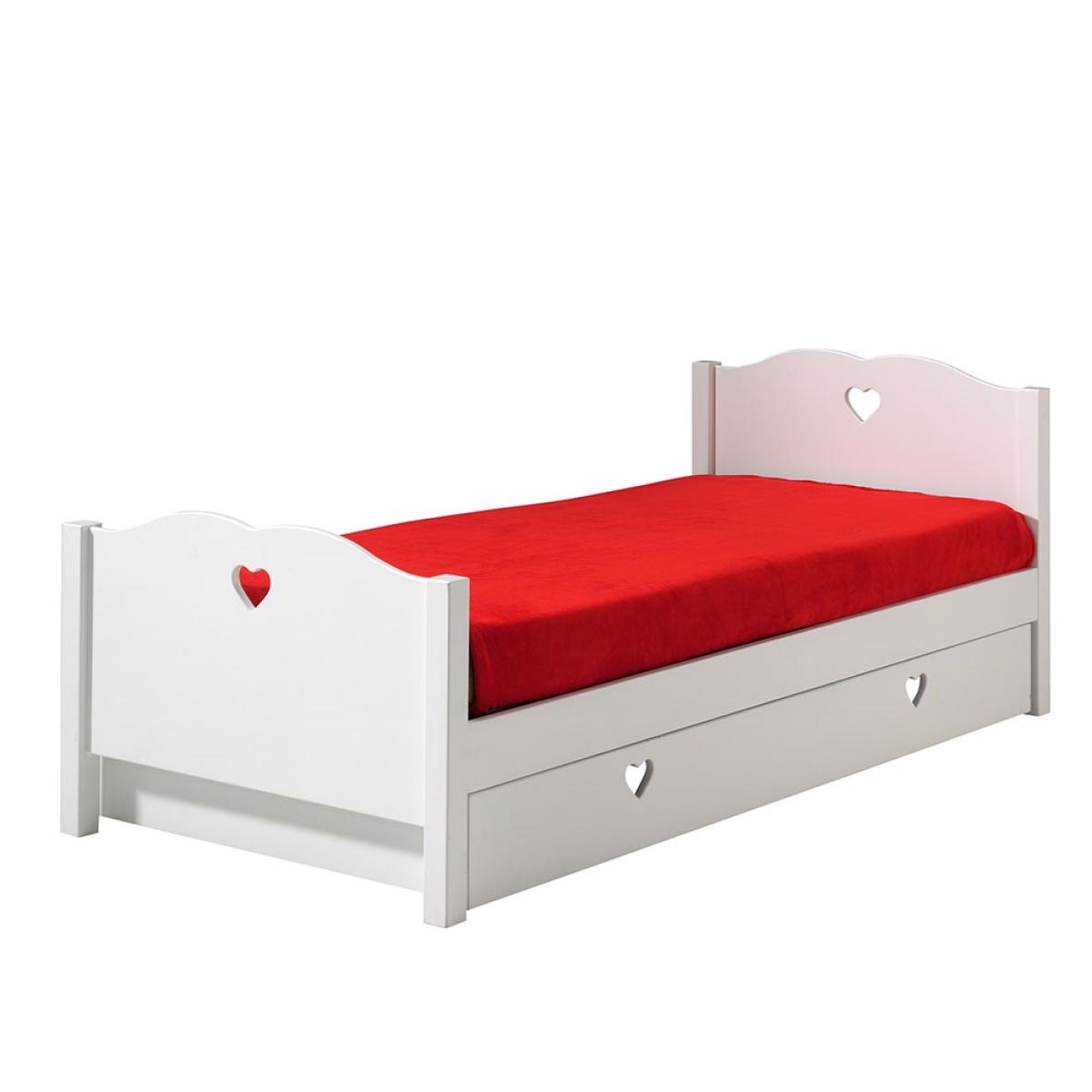 With sweet heart details, the Amori Kids Single Bed will be an adorable addition to any youngsters room. Manufactured from solid pine and MDF, this sturdy bed is sure to be able to handle even the most energetic of children! With a simple white finish, it will suit any interior style and with a cute cut-out heart detail, your kiddie is sure to love it! With other coordinating items in the Amori collection, you could even give your little one's bedroom a complete makeover and give them the room of their dreams.