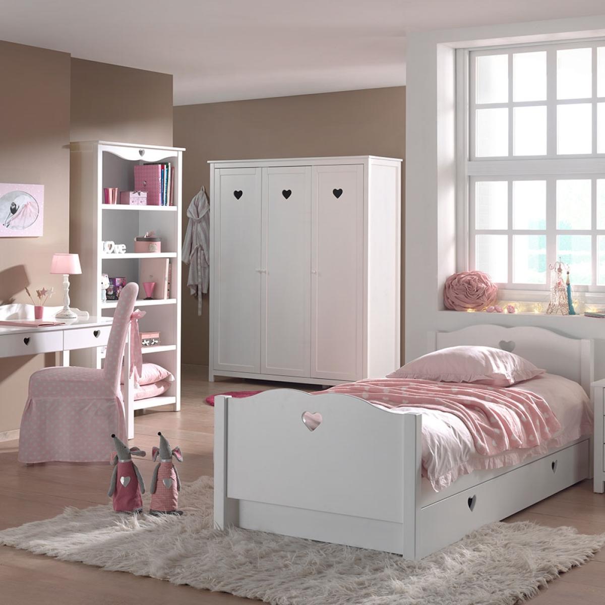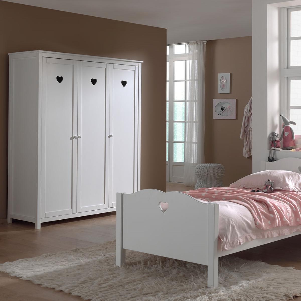 With oodles of space, storing your youngster's clothes will be easy with the Amori Kids Triple Wardrobe. A gorgeous addition to any little one's room, the double side featuring a hanging rail is perfect for keeping all those adorable outfits organised whilst the single side, with three shelves, will be ideal for bedding and blankets, everything will have its place. Manufactured from solid pine and MDF, with a simple white finish, it will suit any interior style and with a cute cut-out heart detail, your kiddie is sure to love it!.