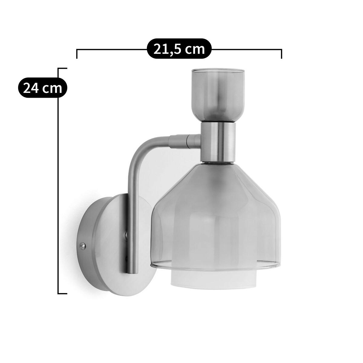 Our Amoris wall lamp combines smoked glass and opaline for a warm and soothing light effect. Compact and easy on the eye, its double shade with opaline and glass gently diffuses the light to create a warm ambiance and prevent glare. Product Details • Brass-finish iron structure • Double lampshade in smoked and opaline glass. • GE9 socket for G9 LED bulb of 5W max not supplied, class A.Dimensions • L21.5 x D13.5 x H24cm. Parcel dimensions and weight: • 1 parcel • 29 x 27.5 x 21cm • 1.37kg