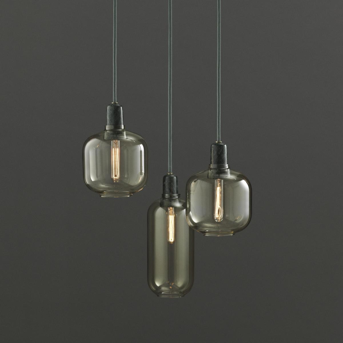 The Amp lamp large from Normann Copenhagen is a modern lamp with nostalgic vibes. Amp is designed by Simon Legald and is inspired by old tube amplifiers from the 1960s. It has an exciting material combination of marble and glass with a visible carbon filament bulb that creates a decorative lighting in all directions. Hang it in the window, hallway or create a cluster of Amp lamps over the dining table.