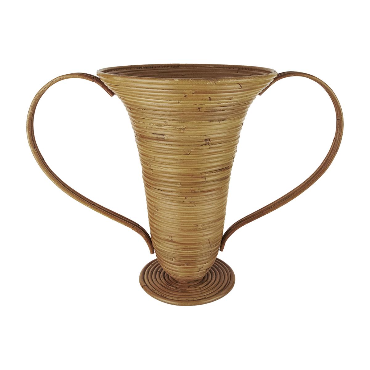 PLEASE NOTE. Not designed to hold water. The Amphora vase offers a fresh take on conventional, traditional pottery, using an unusual material: rattan. With its oversized handles, the Amphora vase plays with proportion and texture to redefine the traditional, ancient Greek vase. This decorative piece is hand-woven using natural rattan. This is a hand-crafted object so slight variations may occur. This sculptural object will work well in any room of the house.