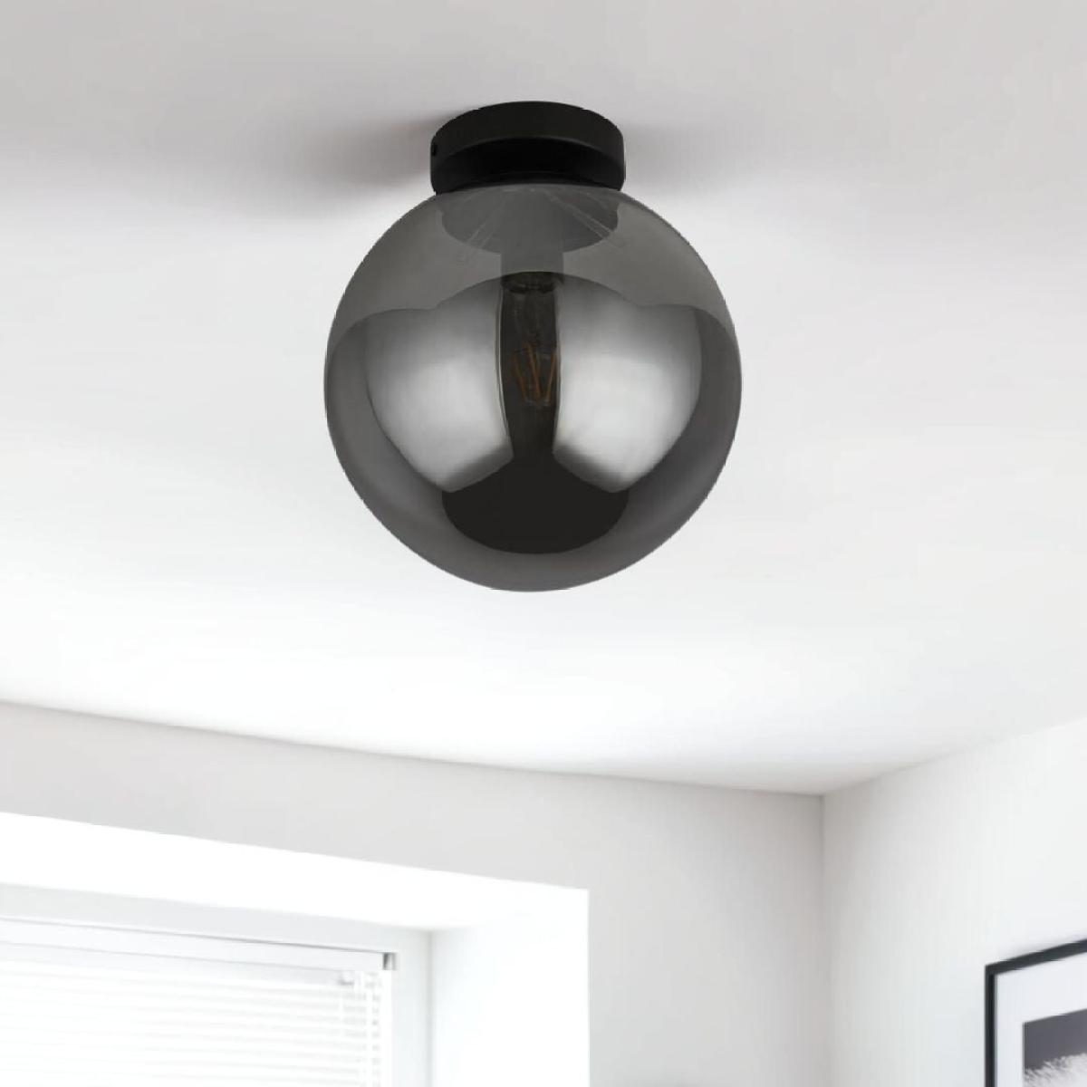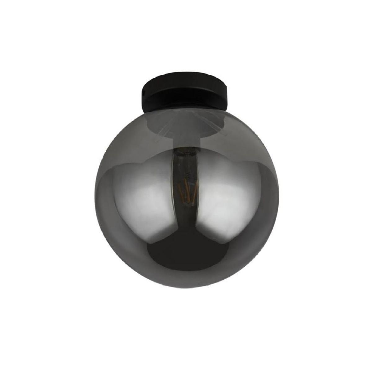 Amsterdam 1-light black flush ceiling light with spherical smoked glass shade.   Amsterdam 1-light black flush ceiling light with spherical smoked glass shade.