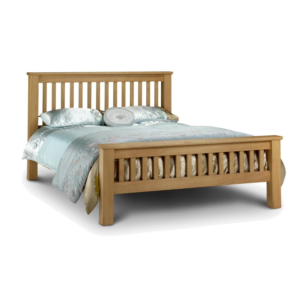 Relax after a long day upon this Julian Bowen Amsterdam Oak Bed Frame. Crafted from solid oak with oak veneer, it offers traditional allure through the slatted headboard and footboard. Standing a little off the ground, you can easily store your bedding, shoes, and more in boxes underneath. This bed will add a countryside feel to the room with its simple and rural style and would fit well with classic interior design aesthetics, making it a must-have for any chic home.