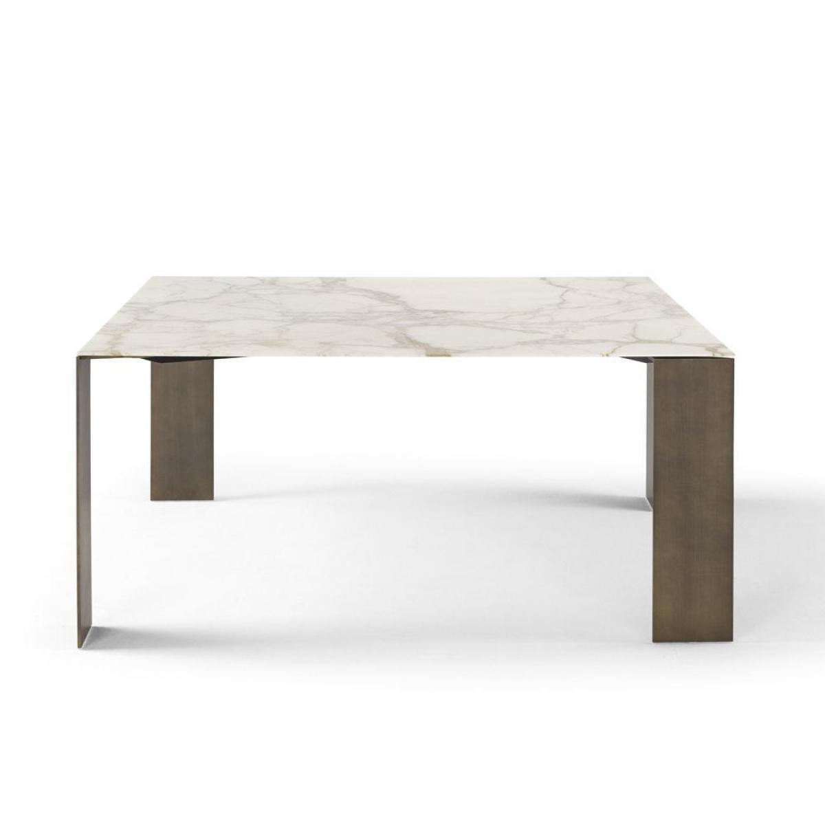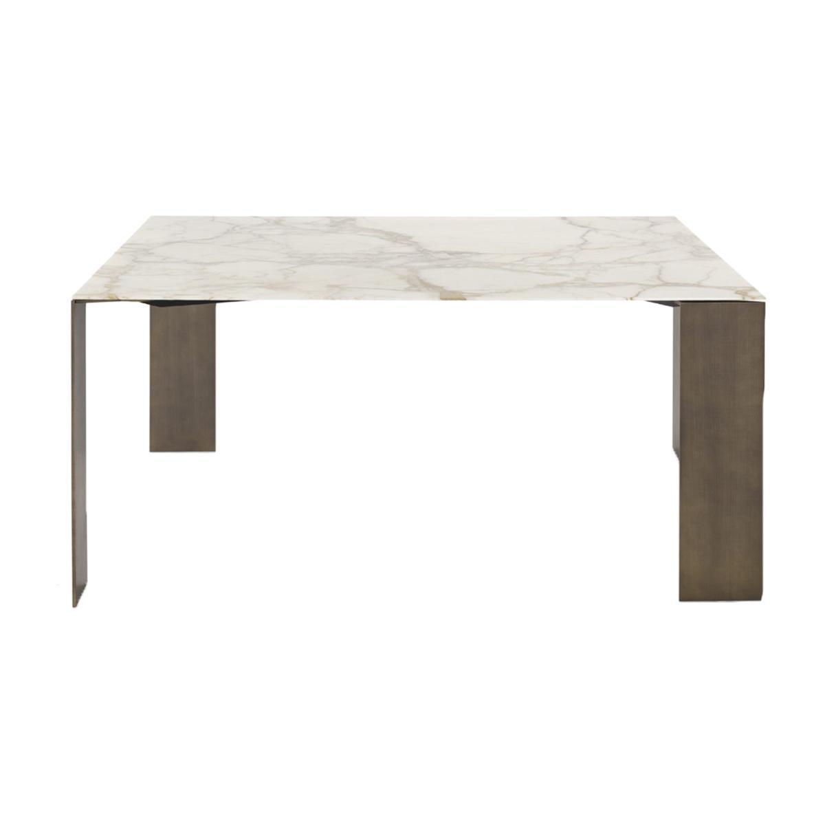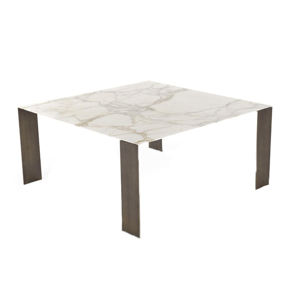 The Exillis dining tables boasts a simple elegant design that will effortlessly fit into contemporary living spaces, with a beautiful calacatta marble top which is supported by a solid wooden base.