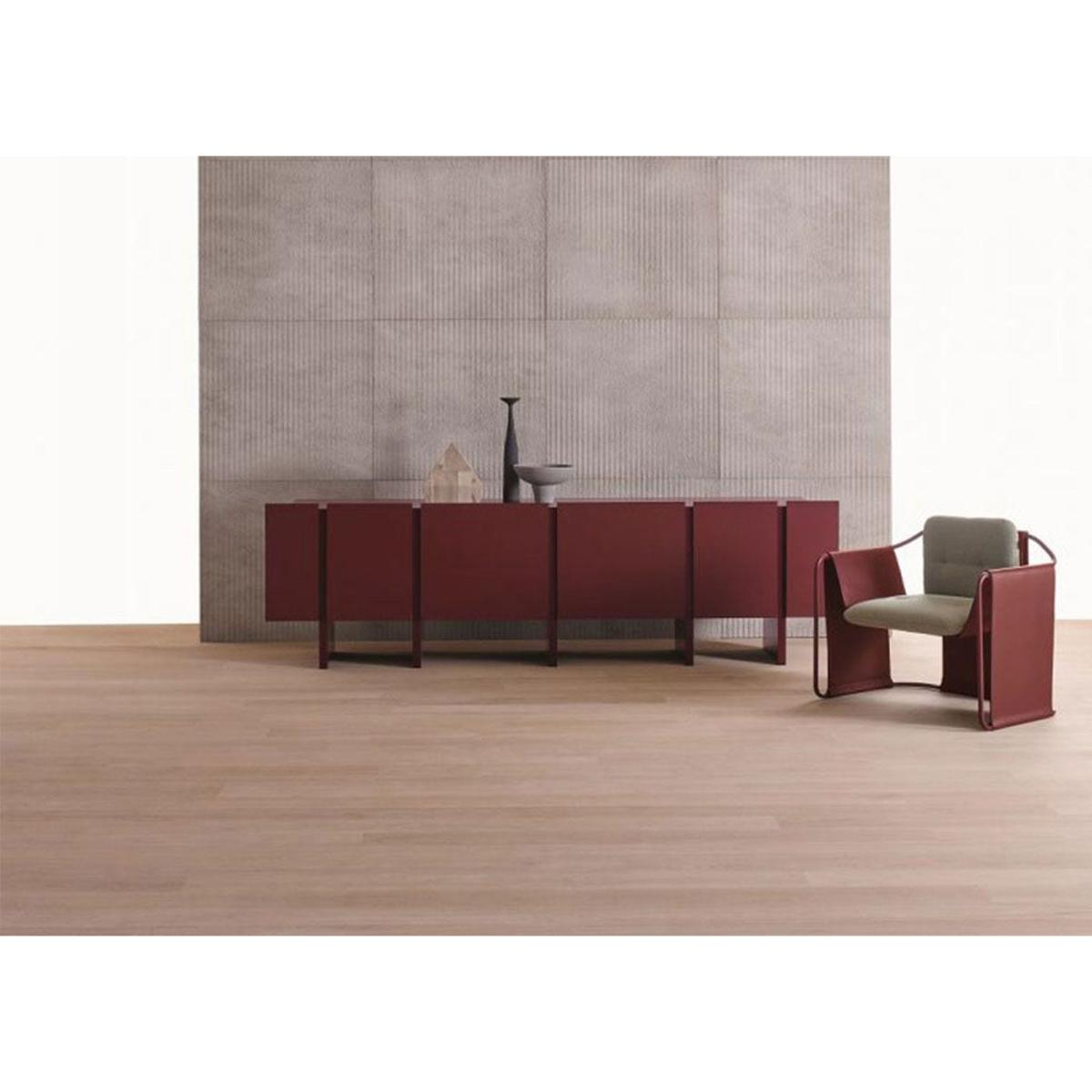 Essentiality of design: that’s where lies the original personalità of Kimono, in the craftsmanship of the coverage the fascination of a hand-made product. The tubular metal gives shape to the structure, and the cuoio dresses it, hiding some parts, showing others: its defines the seat and backrest, leans on the arms and falls back, straight to the floor, as long kimono sleeves. Soft cushions allow for the necessary comfort. The coverage can be customised, as a dress: a chance to play with material and colours. That’s the great versatility of Kimono, a “bespoke” product, for different needs and destinations, from residential to contract.