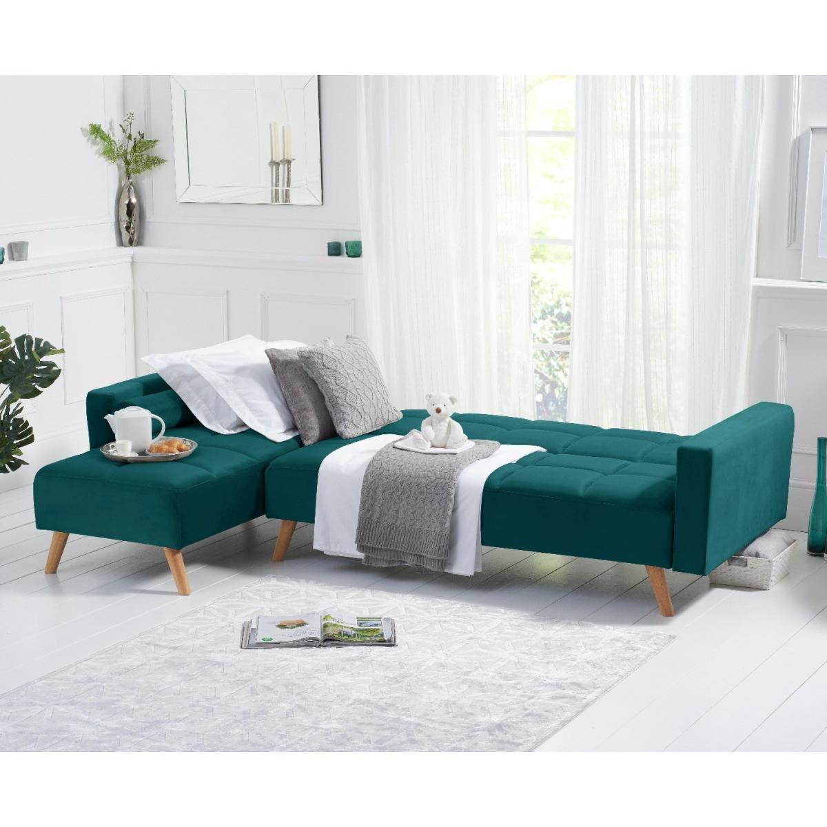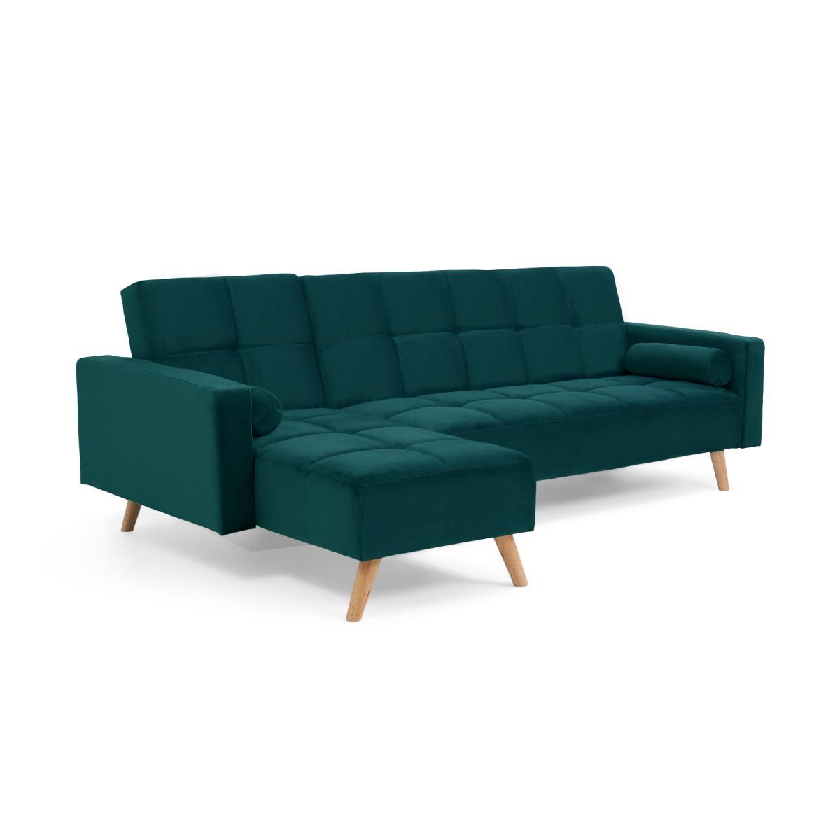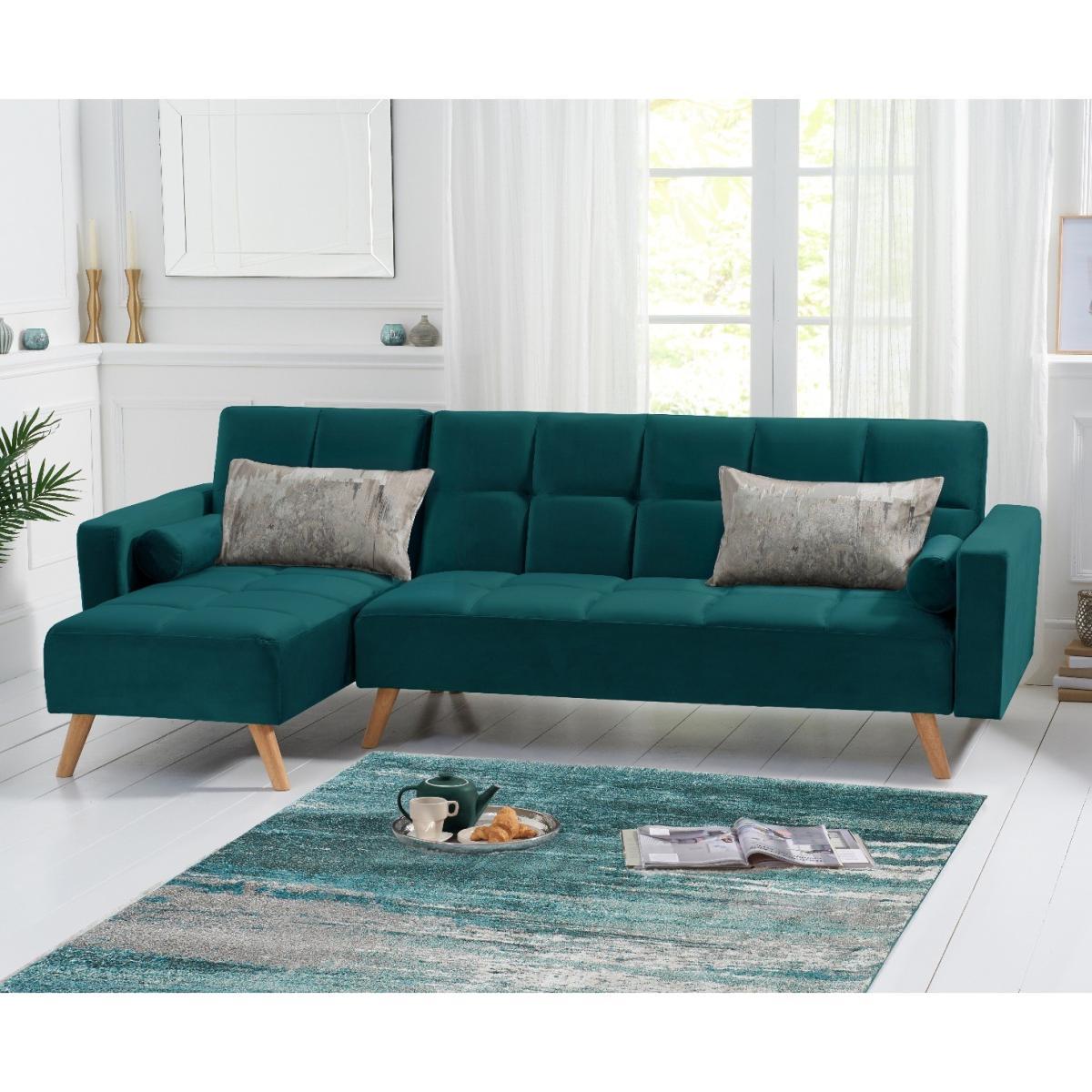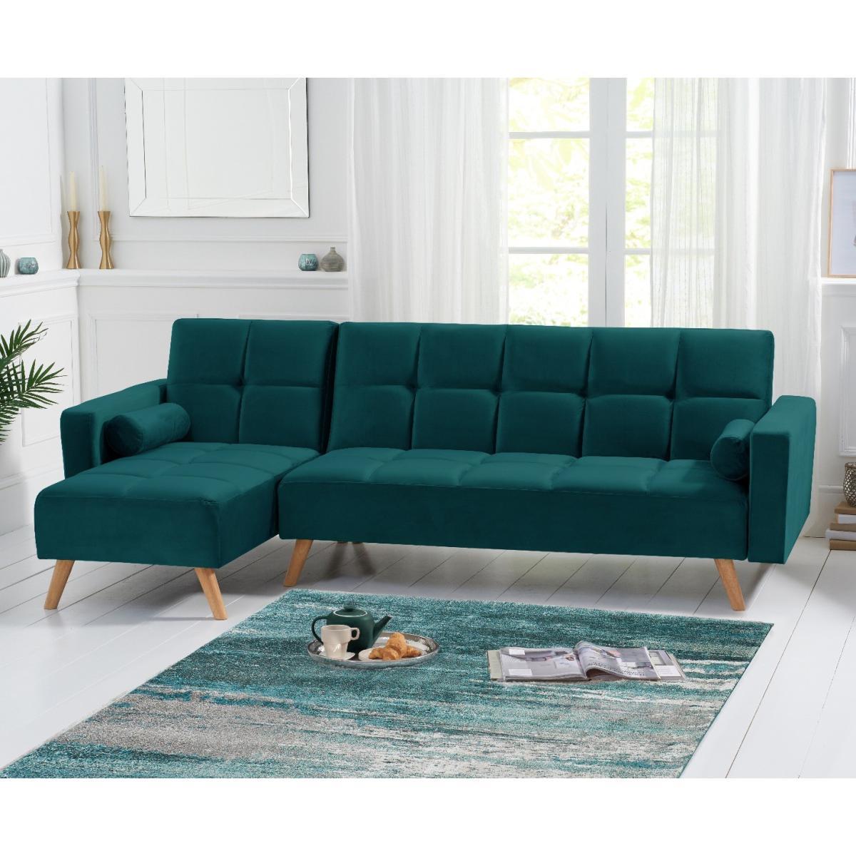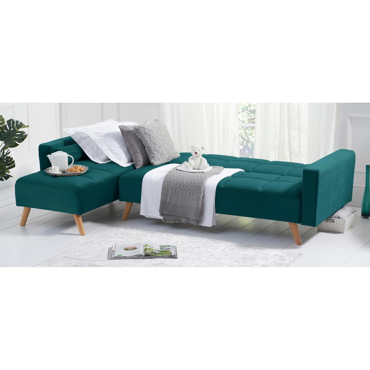 Ana Green Velvet 3 Seater Corner Sofa Bed with Left Facing Chaise