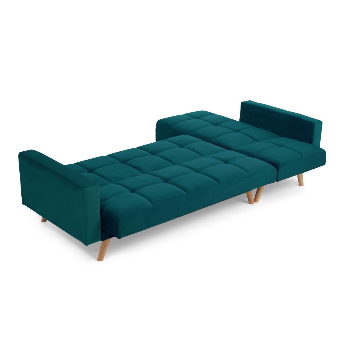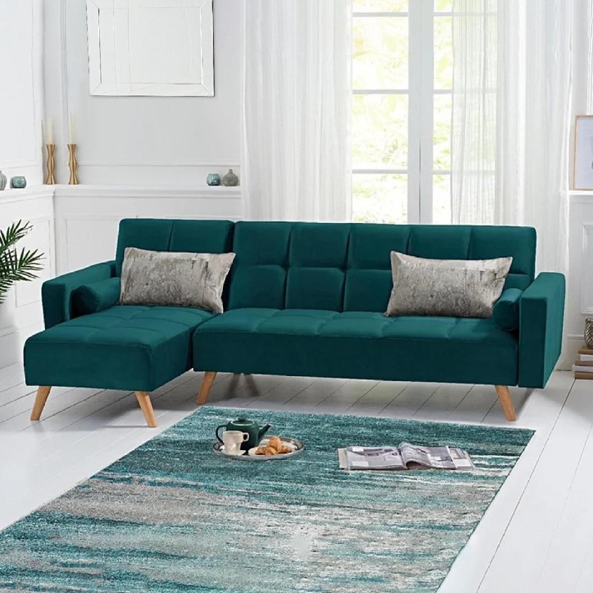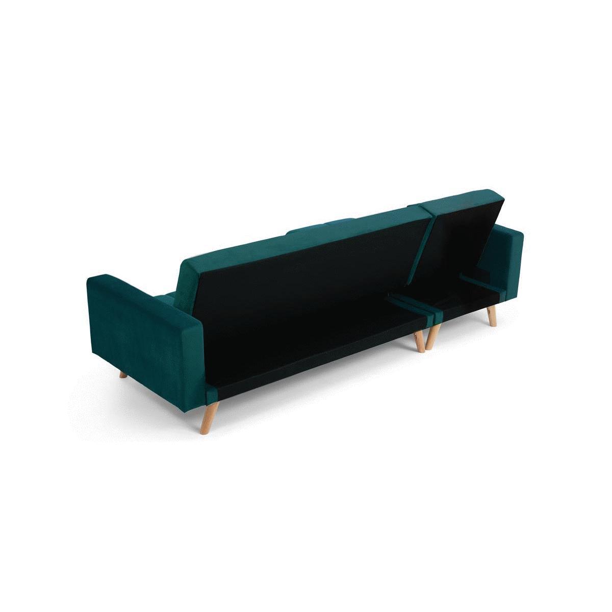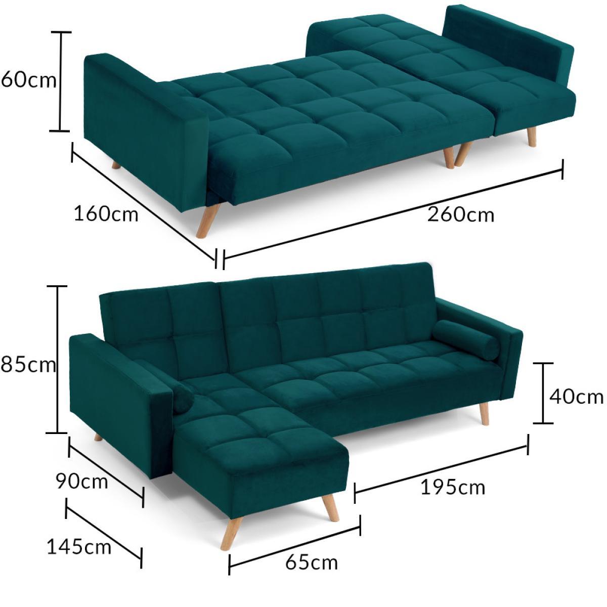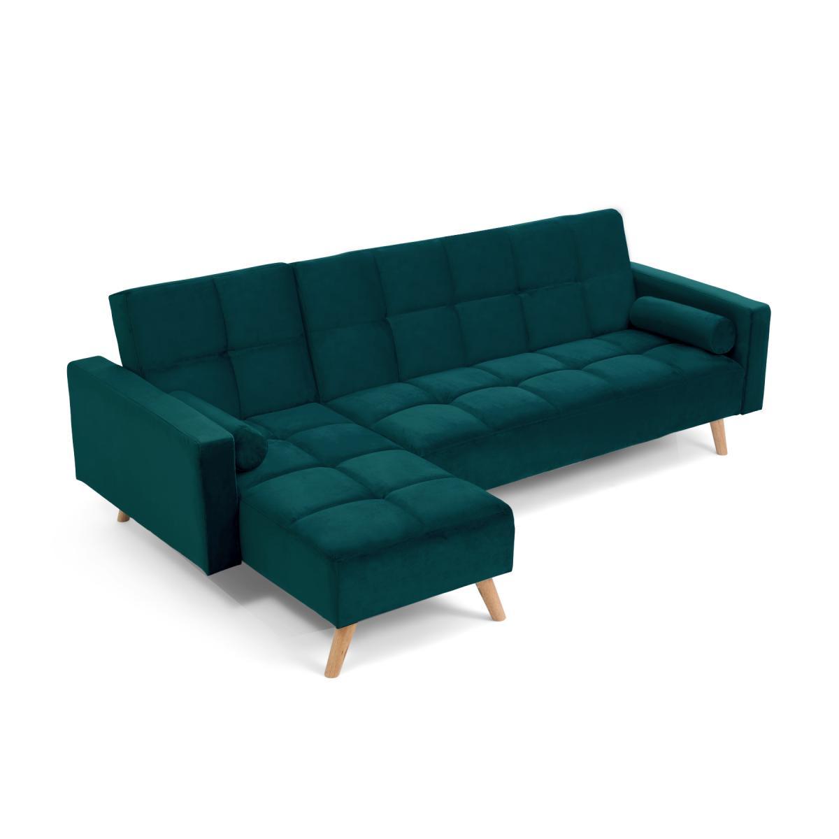 Ana Green Velvet 3 Seater Corner Sofa Bed with Left Facing Chaise
