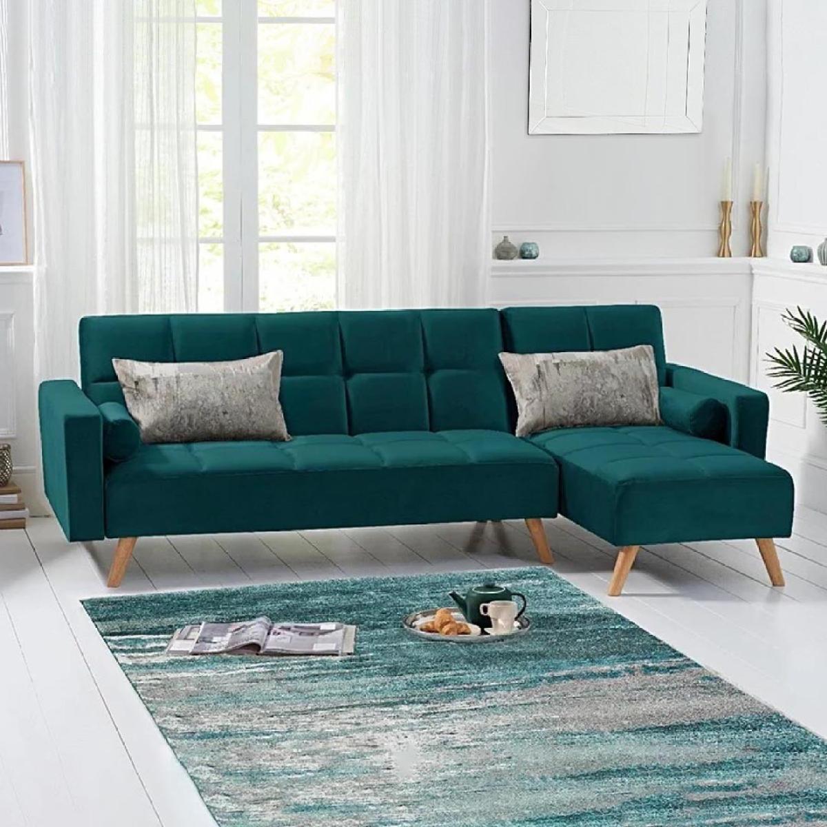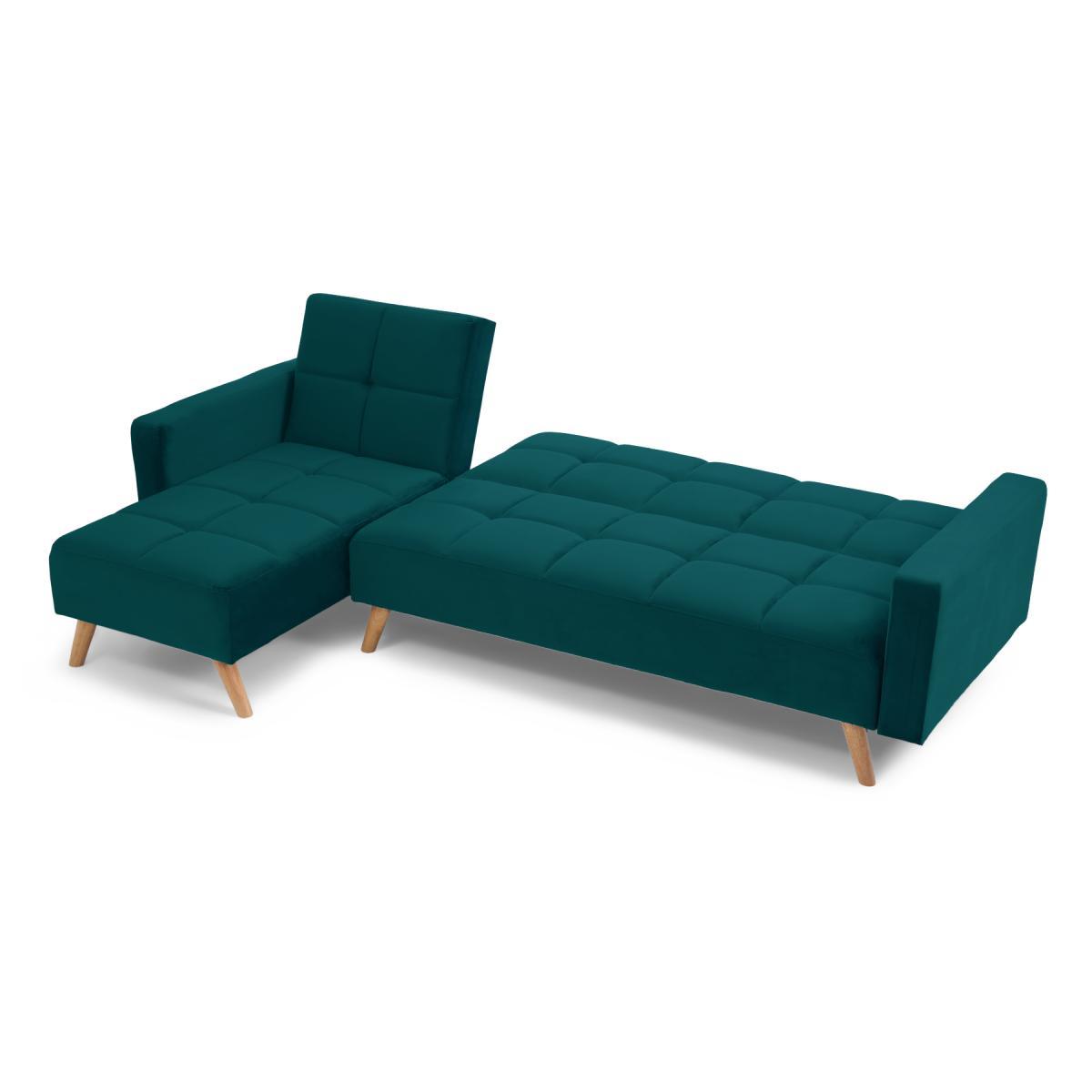 Ana Green Velvet 3 Seater Corner Sofa Bed with Right Facing Chaise