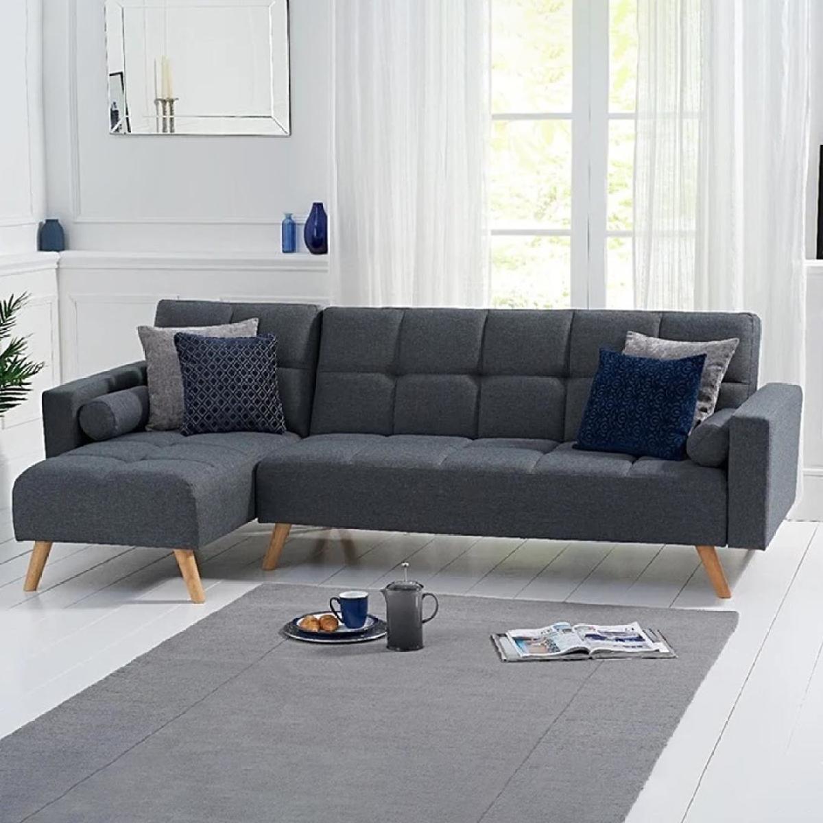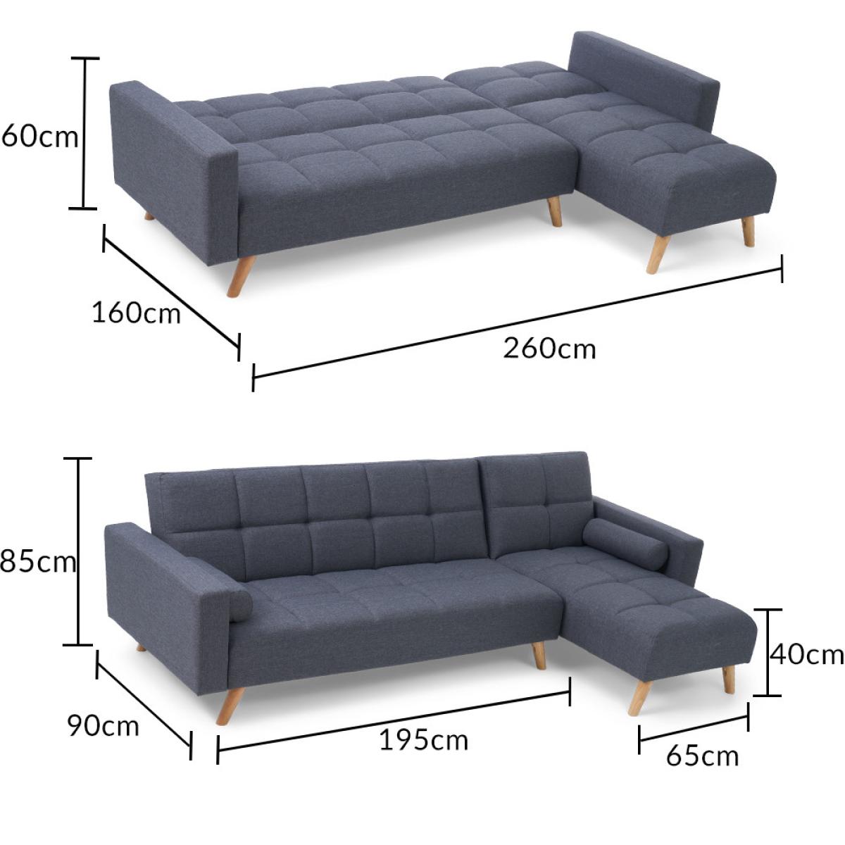 Retro and modern in design, the sleek Ana Chaise Left Hand Sofa Bed features clean lines, stylish tufted stitching to the low backrest and a separate chaise end. Turning into a handy bed via a smooth clicking mechanism to the back seat, it’s supported by contemporary tapered light oak legs. Retro and sleek in silhouette Linen is light and soft to the touch. Works as a family-friendly 3 Seater, as well as a functional bed. Folds down to create a comfy bed element when needed. Also available: Grey Velvet Left Facing Chaise Sofa, Grey Linen Right Facing Chaise Sofa, Grey Velvet Right Facing Chaise Sofa*Comes with 2 free scatter cushions. Additional Measurements:Seat Depth:55cm Seat Width:230cm Seat Height:20cm Armrest Width:14cm Backrest Height:50cm Floor to Seat Height:40cm Leg Thickness:5cm Chaise Depth:160cm Chaise Cushion Depth:110cm