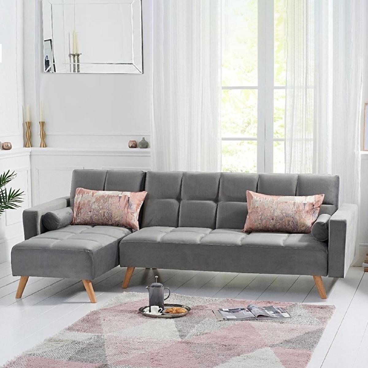 Ana Grey Velvet 3 Seater Corner Sofa Bed with Left Facing Chaise