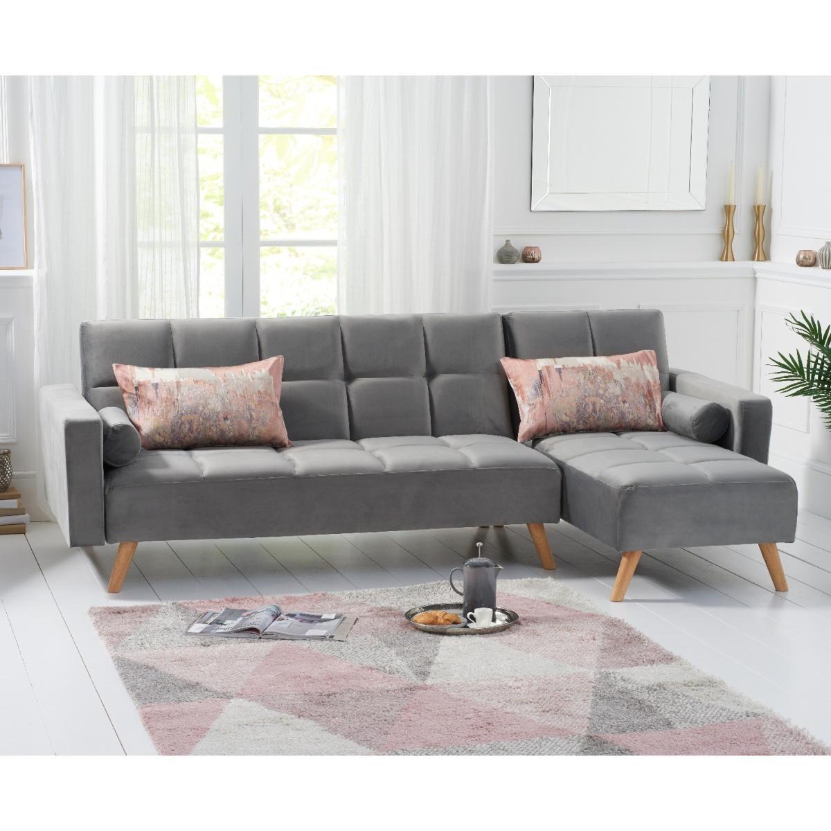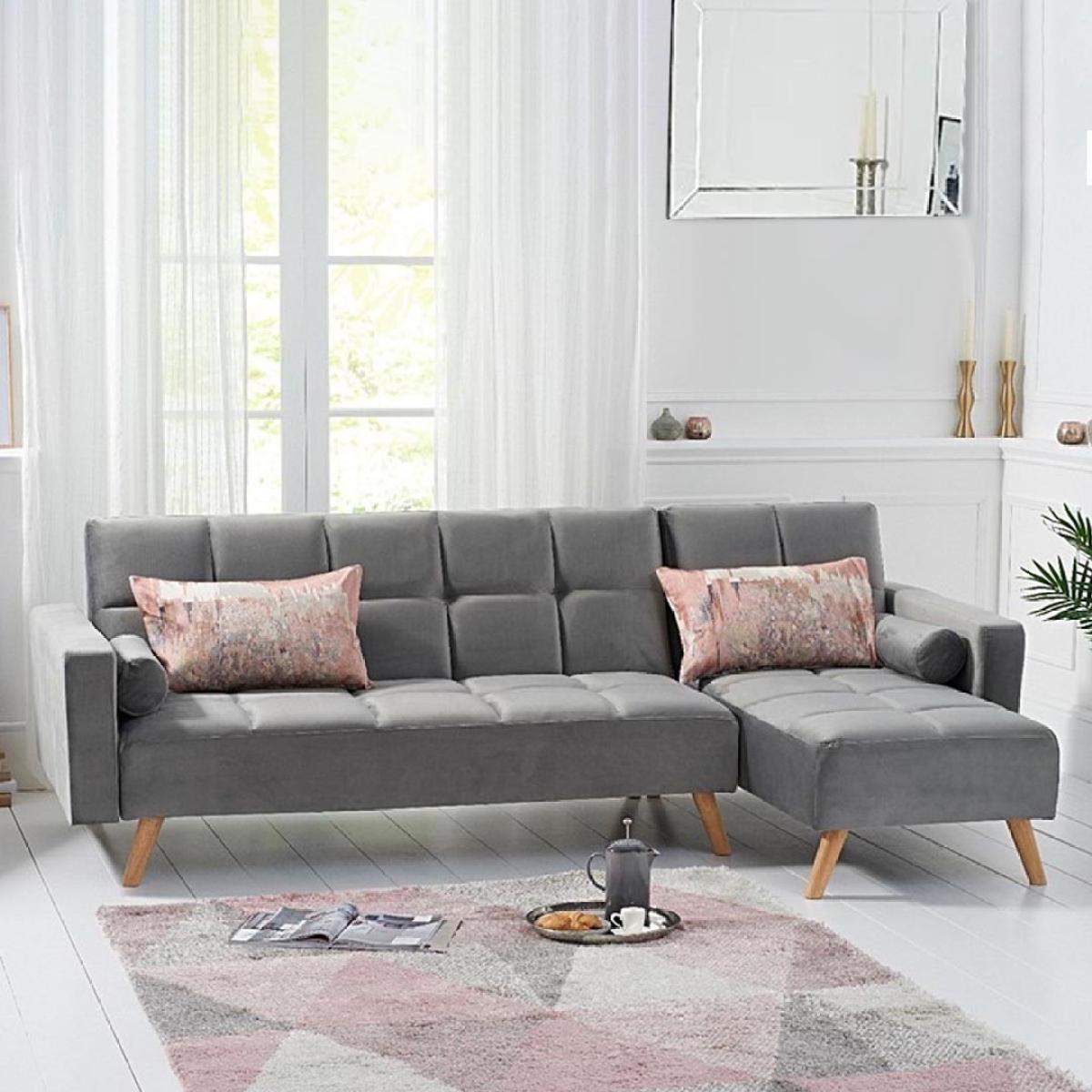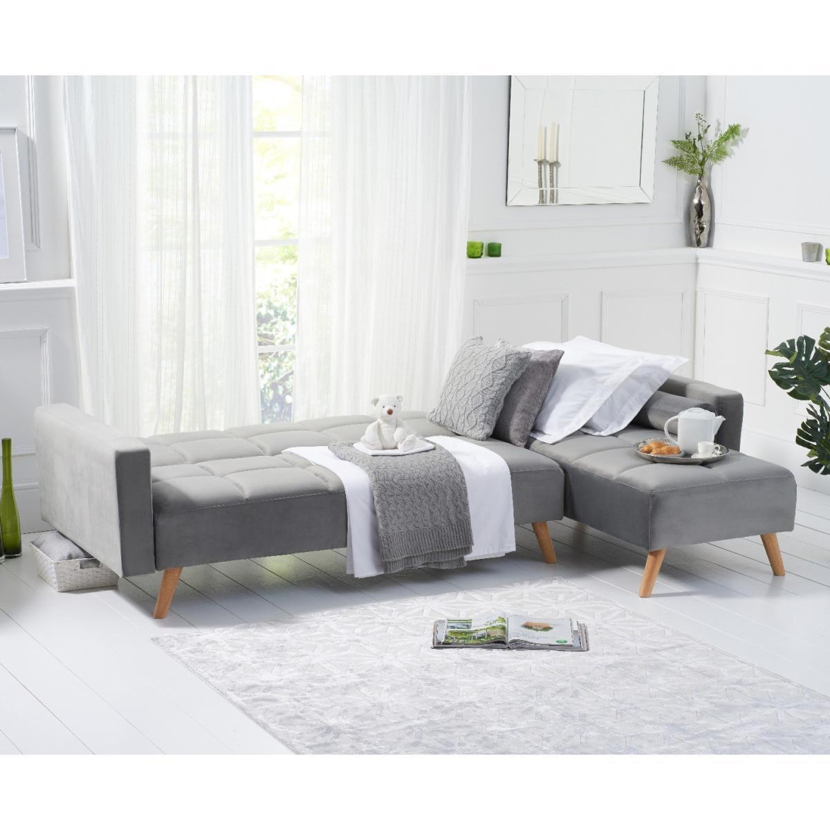 Retro and modern in design, the sleek Ana Chaise Right Hand Sofa Bed features clean lines, stylish tufted stitching to the low backrest and a separate chaise end. Turning into a handy bed via a smooth clicking mechanism to the back seat, it’s supported by contemporary tapered light oak legs. Retro and sleek in silhouette Linen is light and soft to the touch. Works as a family-friendly 3 Seater, as well as a functional bed. Folds down to create a comfy bed element when needed. Also available: Grey Velvet Left Facing Chaise Sofa, Grey Linen Right Facing Chaise Sofa, Grey Velvet Right Facing Chaise Sofa*Comes with 2 free scatter cushions. Additional Measurements:Seat Depth:55cm Seat Width: 230cm. Seat Height:20cm Armrest Width:14cm Backrest Height:50cm Floor to Seat Height:40cm Leg Thickness:5cm Chaise Depth:160cm Chaise Cushion Depth:110cm