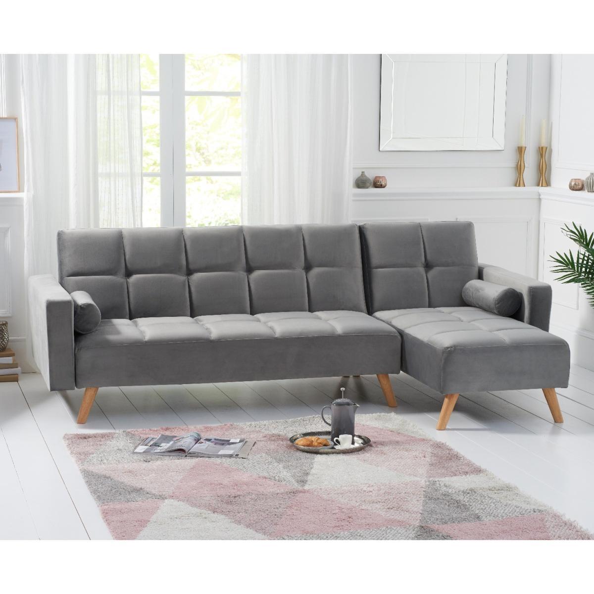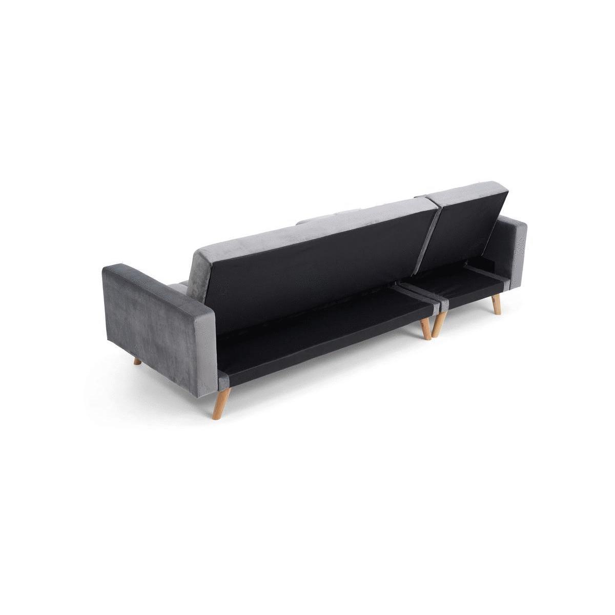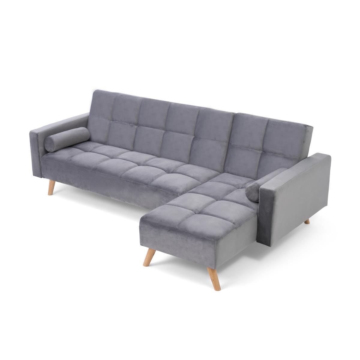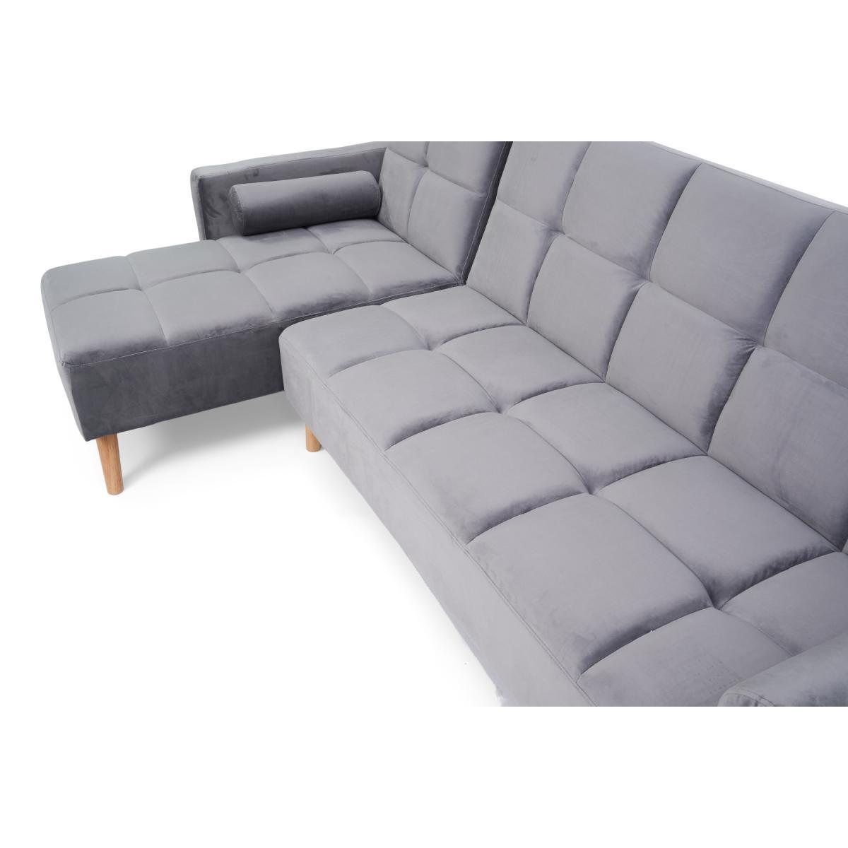 Retro and modern in design, the sleek Ana Chaise Right Hand Sofa Bed features clean lines, stylish tufted stitching to the low backrest and a separate chaise end. Turning into a handy bed via a smooth clicking mechanism to the back seat, it’s supported by contemporary tapered light oak legs. Retro and sleek in silhouette Linen is light and soft to the touch. Works as a family-friendly 3 Seater, as well as a functional bed. Folds down to create a comfy bed element when needed. Also available: Grey Velvet Left Facing Chaise Sofa, Grey Linen Right Facing Chaise Sofa, Grey Velvet Right Facing Chaise Sofa*Comes with 2 free scatter cushions. Additional Measurements:Seat Depth:55cm Seat Width: 230cm. Seat Height:20cm Armrest Width:14cm Backrest Height:50cm Floor to Seat Height:40cm Leg Thickness:5cm Chaise Depth:160cm Chaise Cushion Depth:110cm