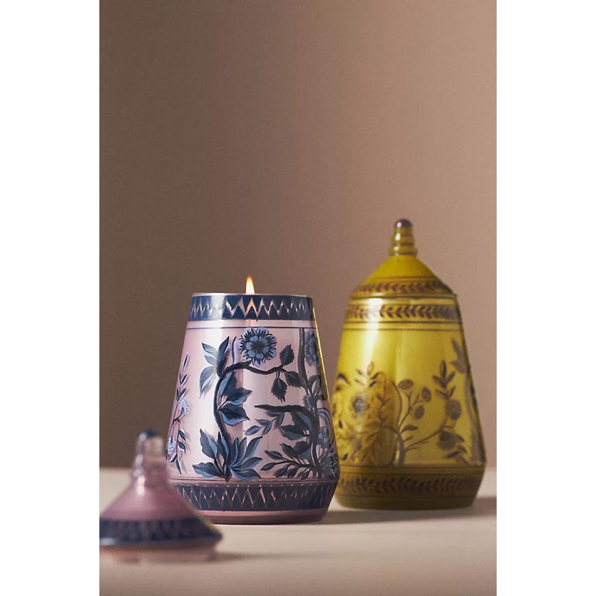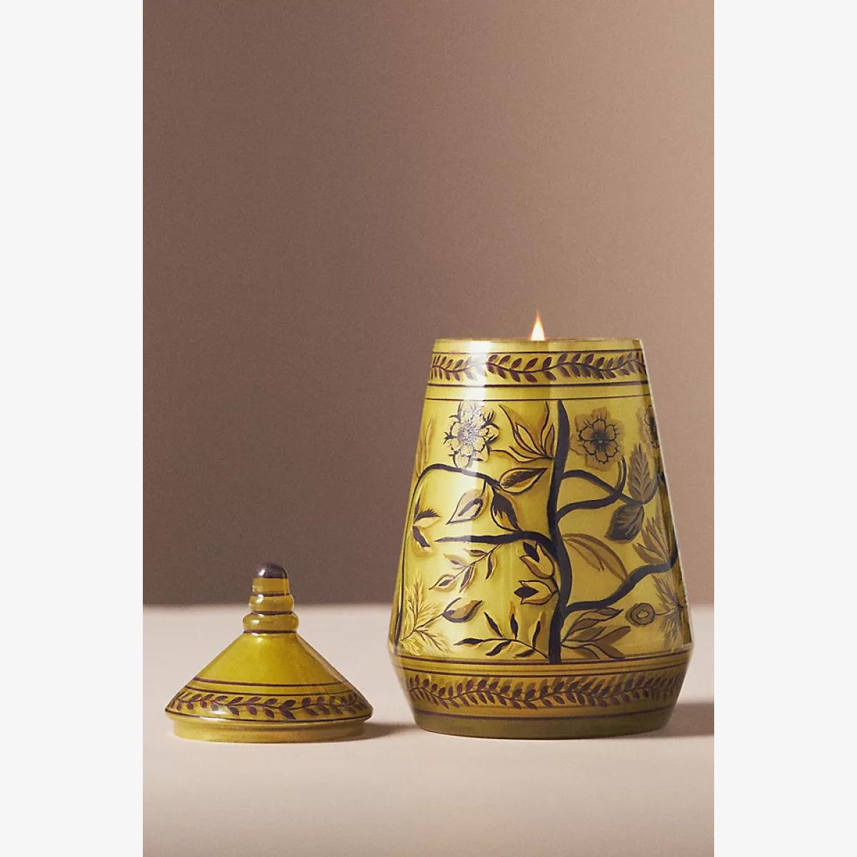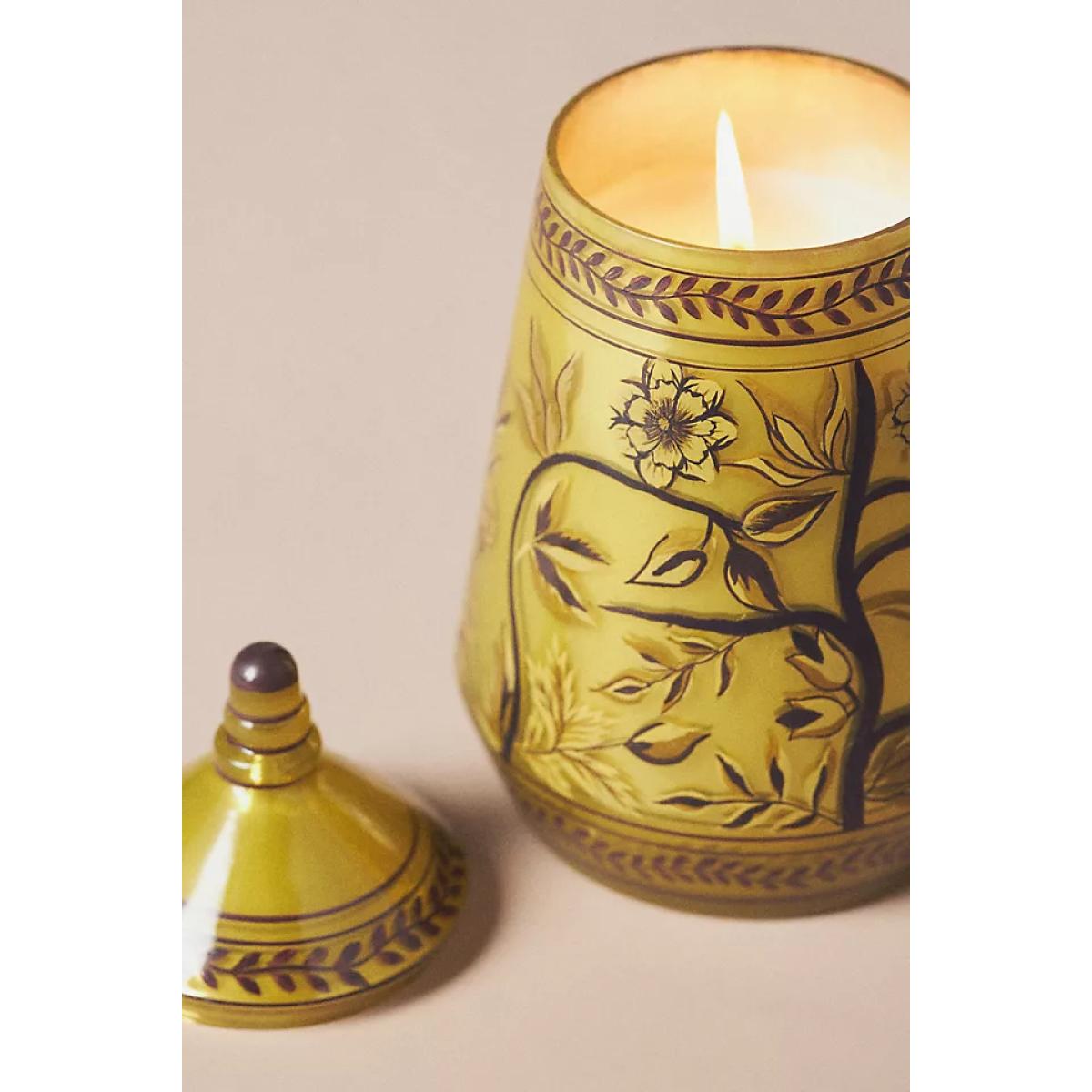 Violet Cypress (Woody Fresh):Warm tones of Australian blue cypress blend with crushed citrus leaves intensified by smoky swirls of aromatic, eastern myrrh and pure olibanum yielding a warm heart of woody fig and rich tree resins. For the best burn experience, keep the following in mind: The first time you light your candle, allow it to burn until the wax pool melts all the way to the edge; for a larger candle, this may take several hours. Wax has " memory," so if it is extinguished with a partial pool, that will prevent a full, even pool from forming in the future. Trim your wick each time you light the candle, removing any " bloom" from the previous burn. We recommend lighting a wick that is 1/4-1/2" in length. Ensure that your candle is placed on a heat-safe surface. Do not allow wick trimmings, dust, or other materials to accumulate in the wax pool. To ensure safety and longevity, be sure to check the bottom of your candle for additional instructions, including details on when to discontinue use. Ana Woody Violet Cypress Glass Candle by Anthropologie Size: Medium