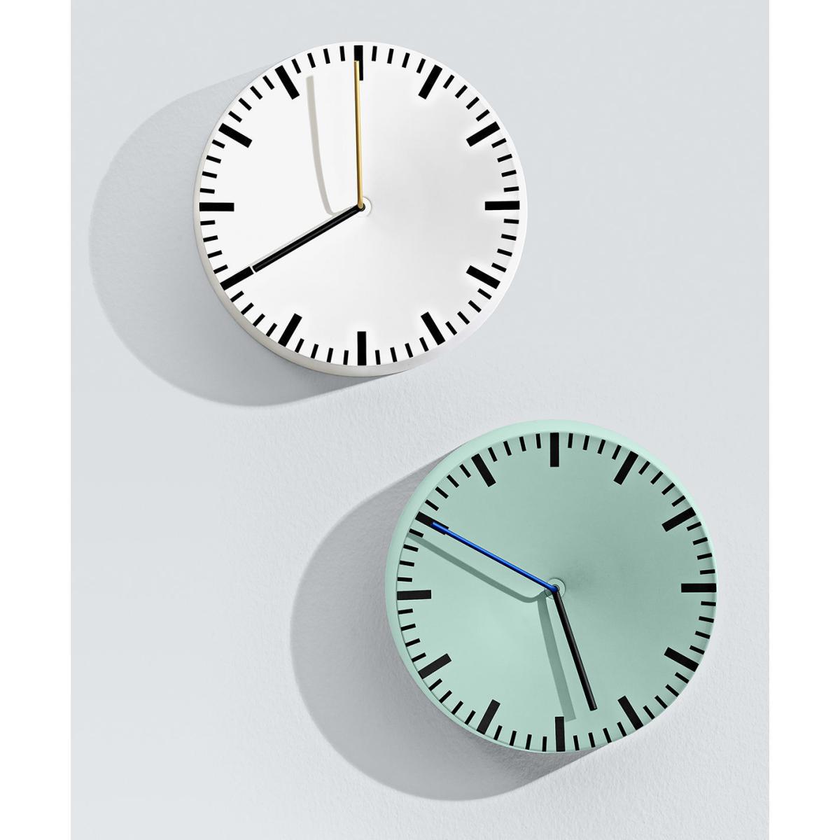 The Analogue Clock from HAY is, as the name suggests, a celebration of tradition and contrasts with the digital era that we live in. The materials and anodised finishes place the design squarely in the 21st Century with a contemporary aesthetic. Constructed from extrudedaluminium with solid aluminium hands, the clock has a presence of quality that is immediately evident. With its thicker-than-most design the clock face creates a statement on the wall and the hands stand out as a feature with their unusual rod shape. Readingthe Analogue clock is clear and simple with itsindices reminiscent of an industrial timepiece.