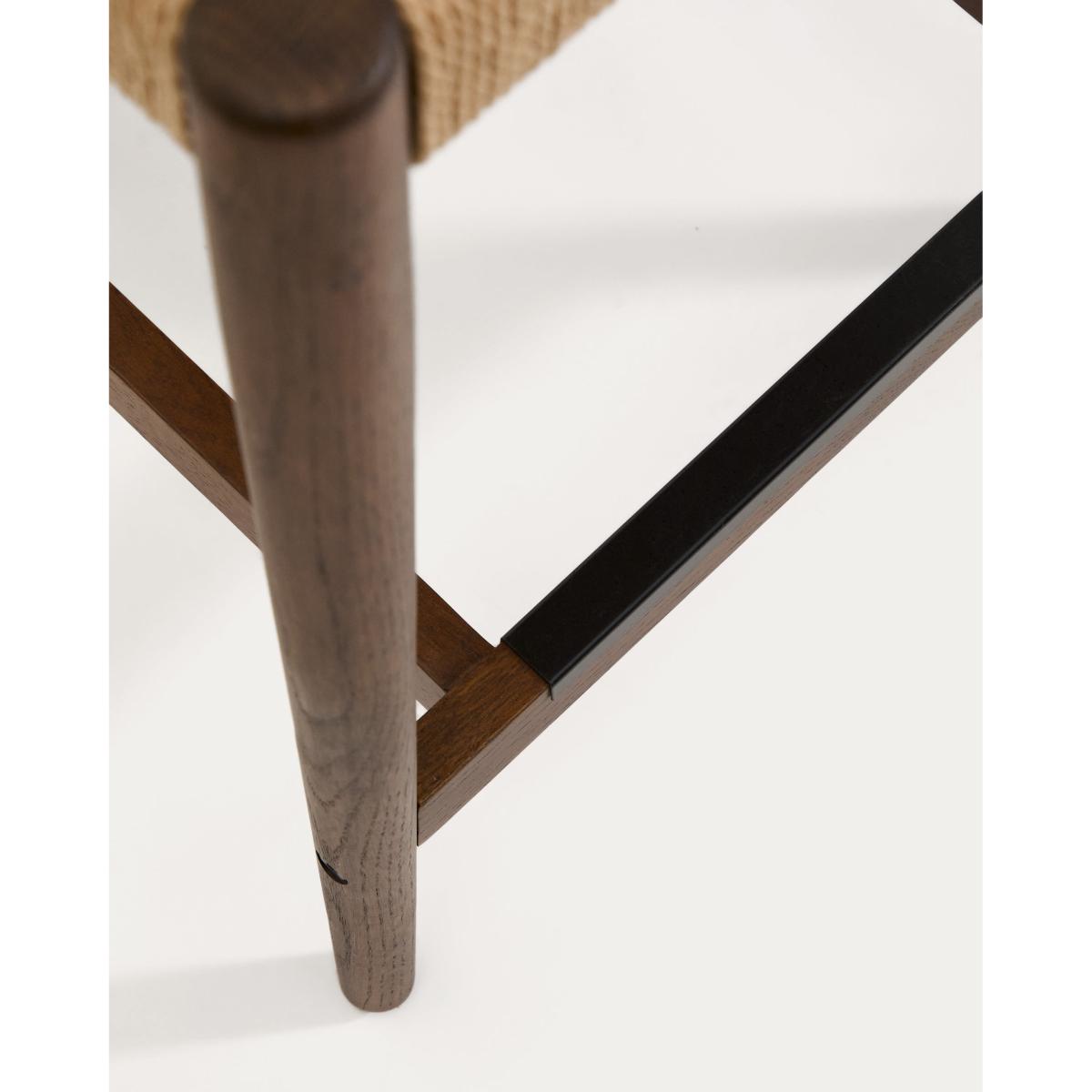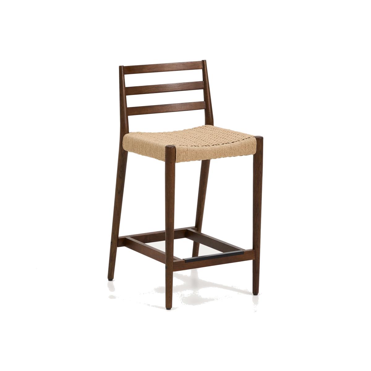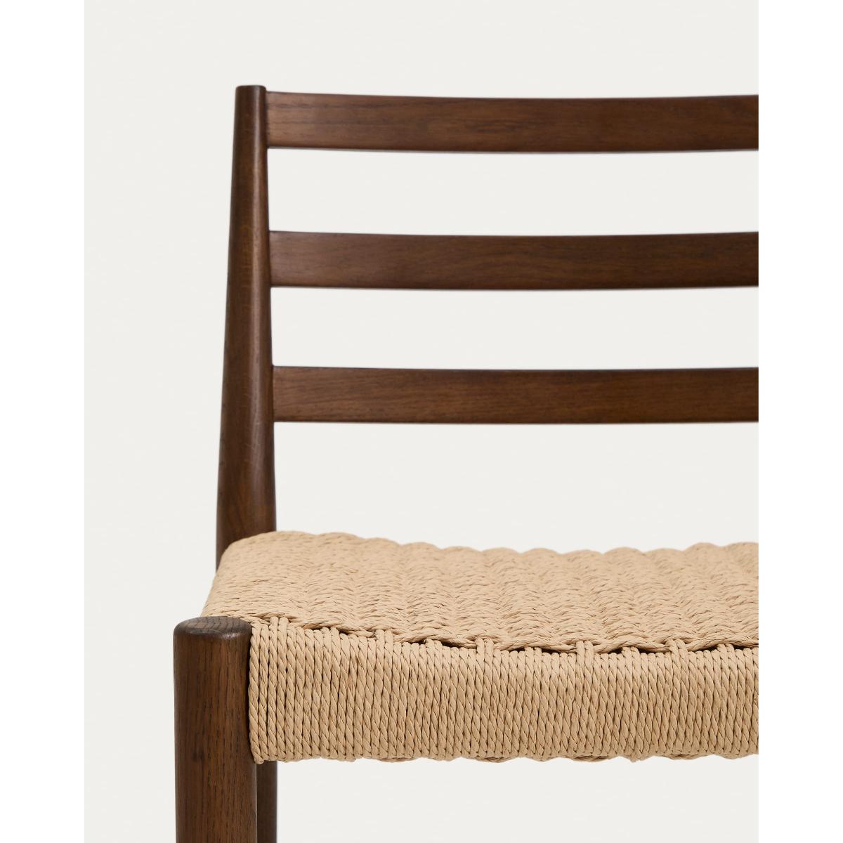 This stool with backrest combines the warmth of solid oak wood with the authenticity of handcrafted work. The seat is made with hand-braided paper cord, adding texture and a distinctive detail to the piece. Each item is unique thanks to the natural variations of the wood, with its singular grains and tones that make every stool one of a kind. The sturdy structure ensures stability and durability, while the backrest offers extra comfort for daily use. The wood is certified with FSC™ 100% chain of custody and comes from responsibly managed forests. A piece that stands out for its timeless design, ideal for kitchens, bars, and living areas alike.