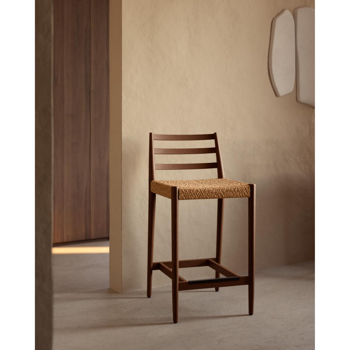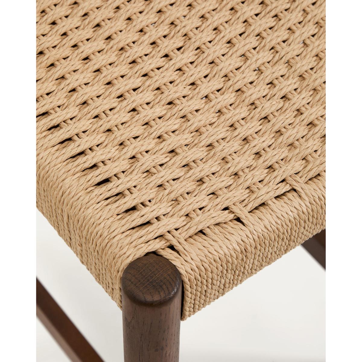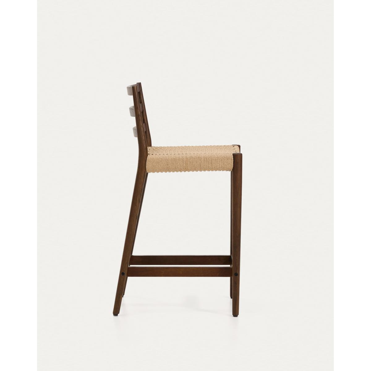 This stool with backrest combines the warmth of solid oak wood with the authenticity of handcrafted work. The seat is made with hand-braided paper cord, adding texture and a distinctive detail to the piece. Each item is unique thanks to the natural variations of the wood, with its singular grains and tones that make every stool one of a kind. The sturdy structure ensures stability and durability, while the backrest offers extra comfort for daily use. The wood is certified with FSC™ 100% chain of custody and comes from responsibly managed forests. A piece that stands out for its timeless design, ideal for kitchens, bars, and living areas alike.