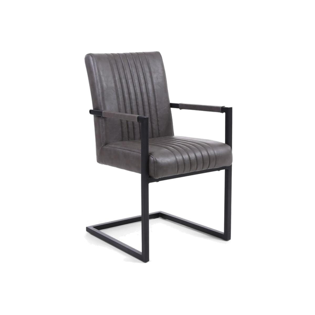 Ananya Grey Leather Armrests Carver Dining Chair Set of 2 - Grey