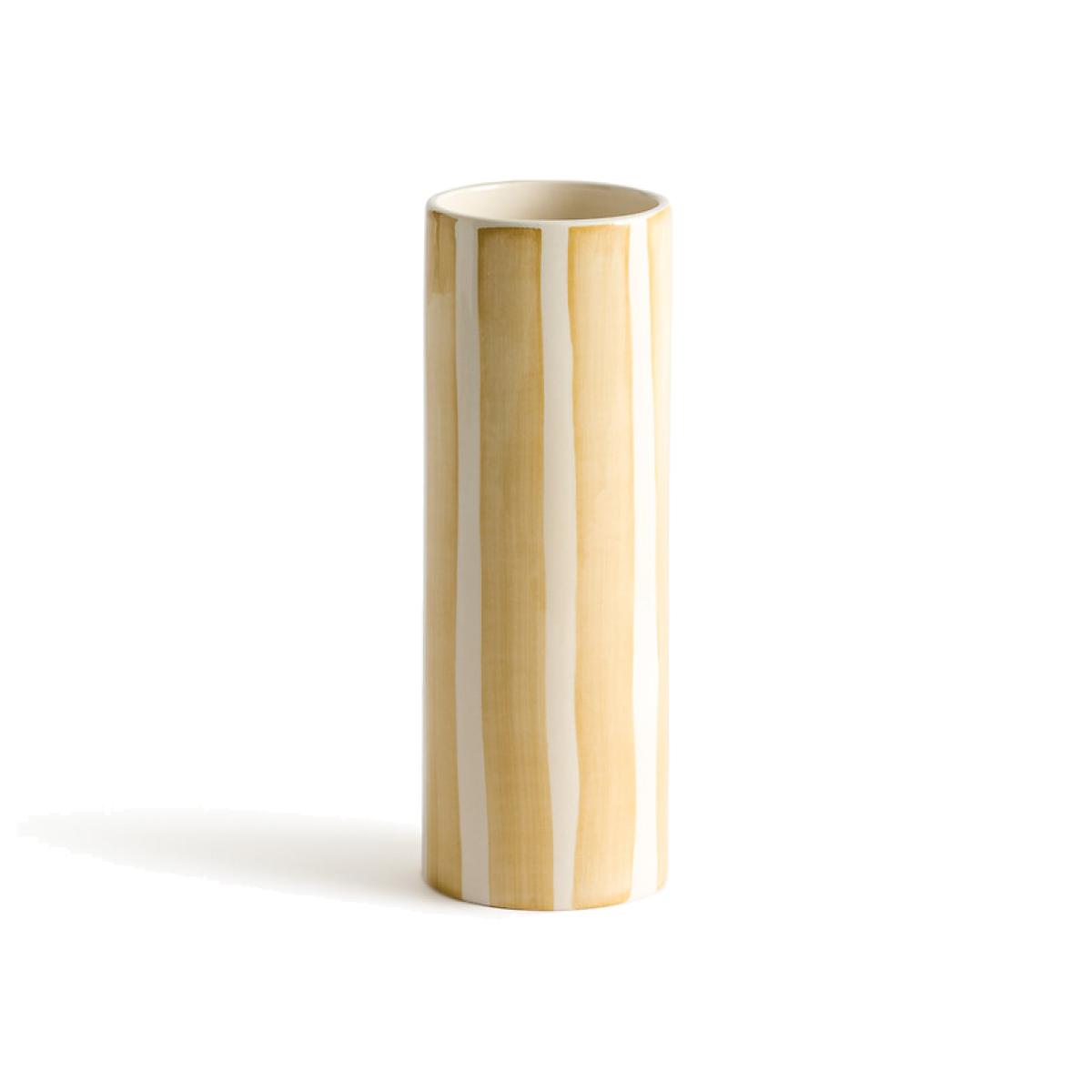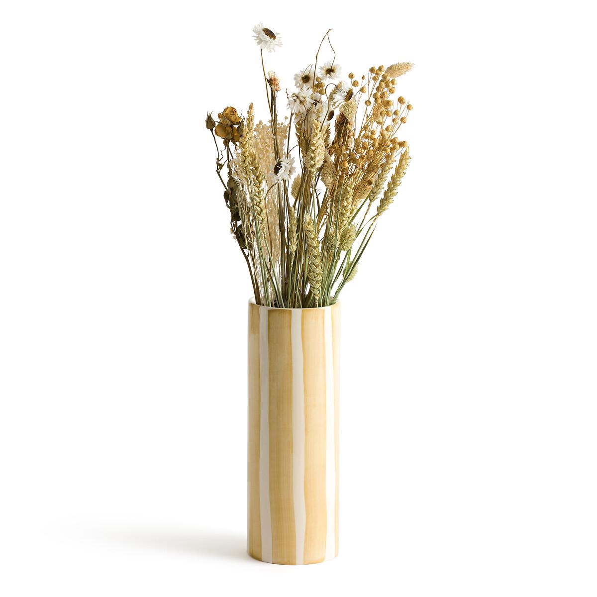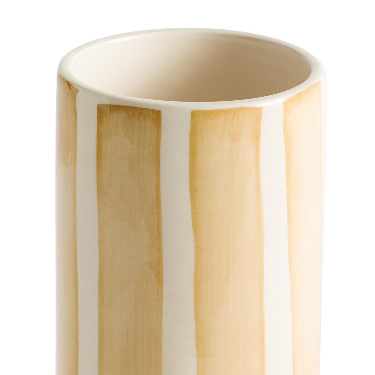 Irregular painted stripes, an artisanal spirit: the Anastase earthenware vase adds a Mediterranean touch to an interior. It can be displayed alone or with fresh flowers.. Made in Europe.