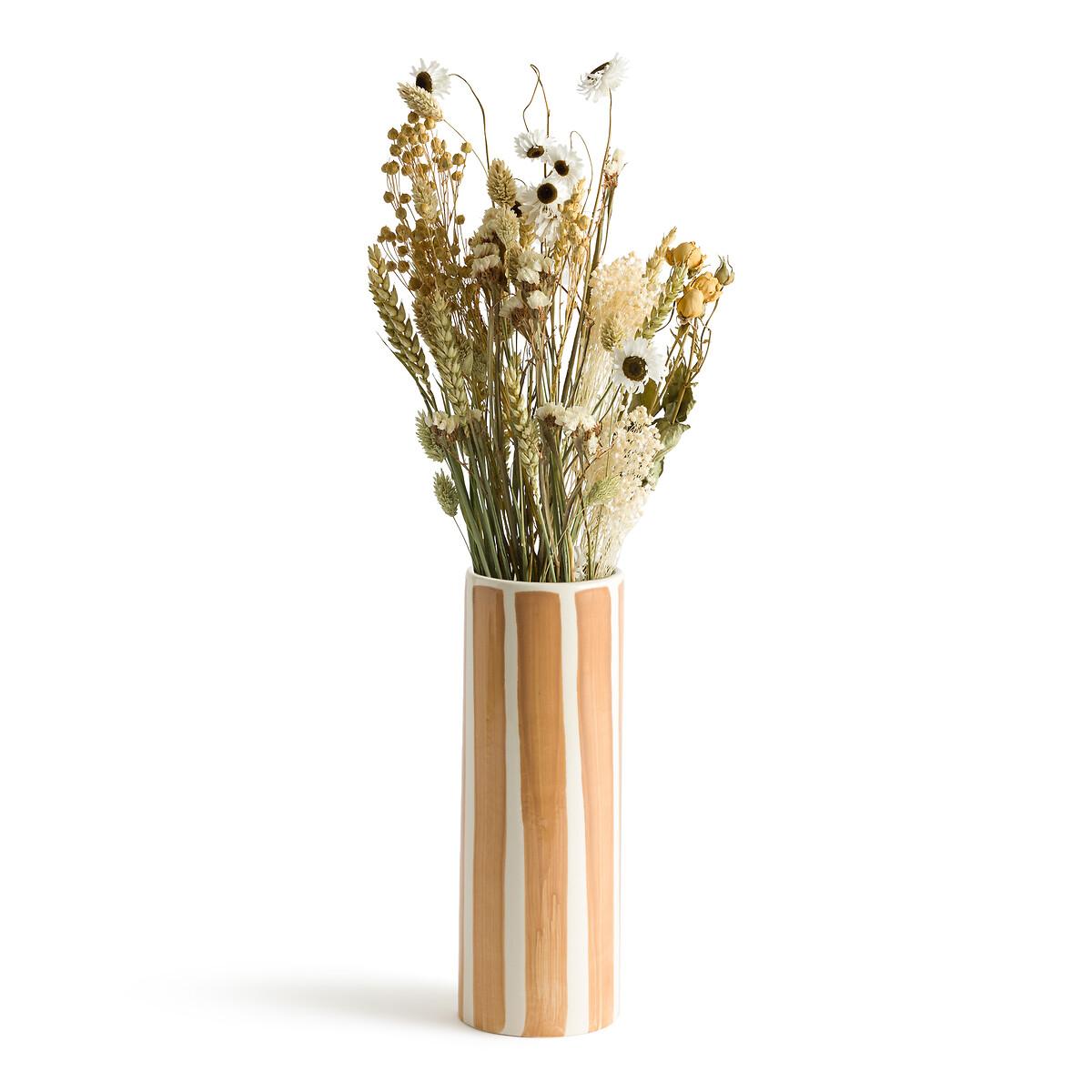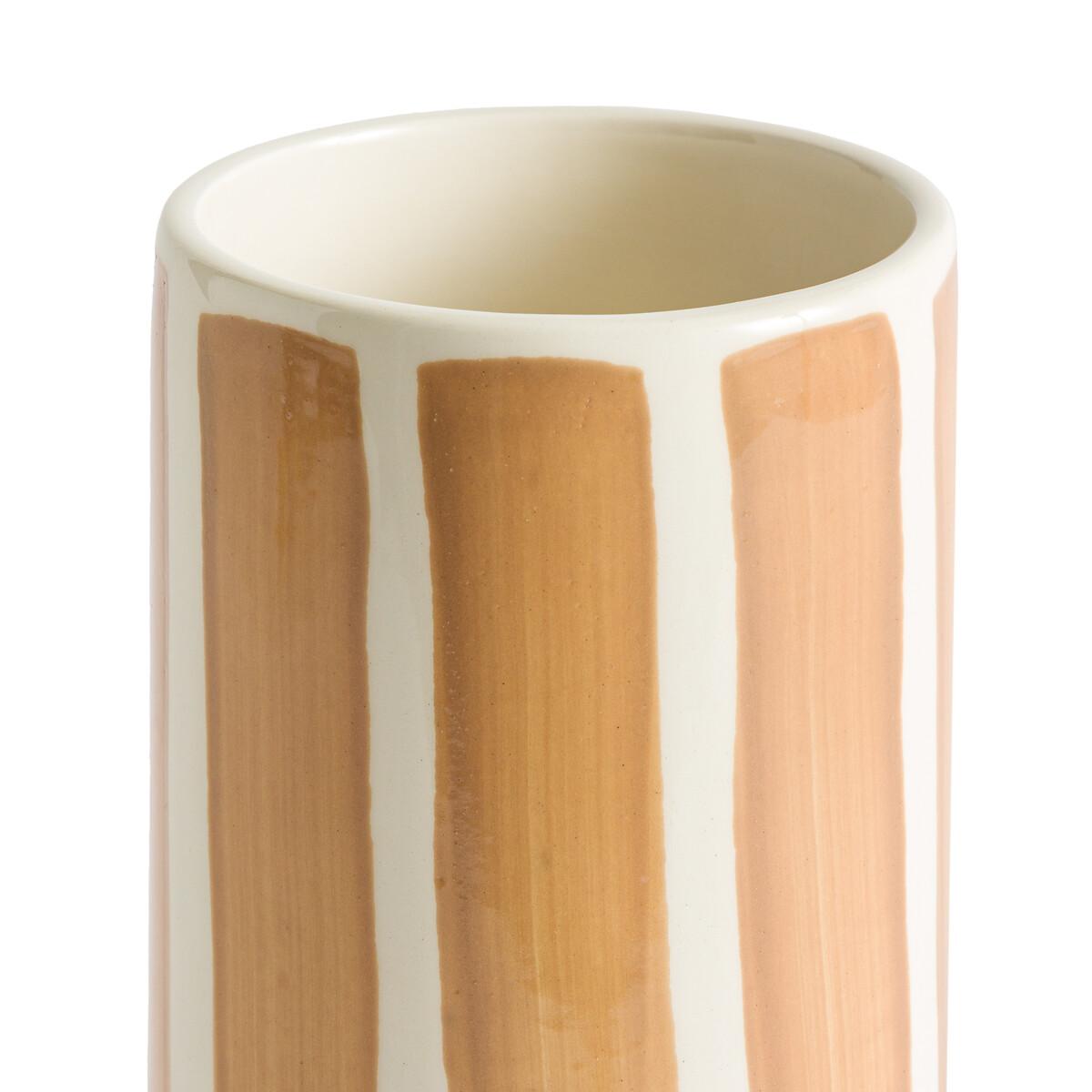 Irregular painted stripes, an artisanal spirit: the Anastase earthenware vase adds a Mediterranean touch to an interior. It can be displayed alone or with fresh flowers.. Made in Europe.