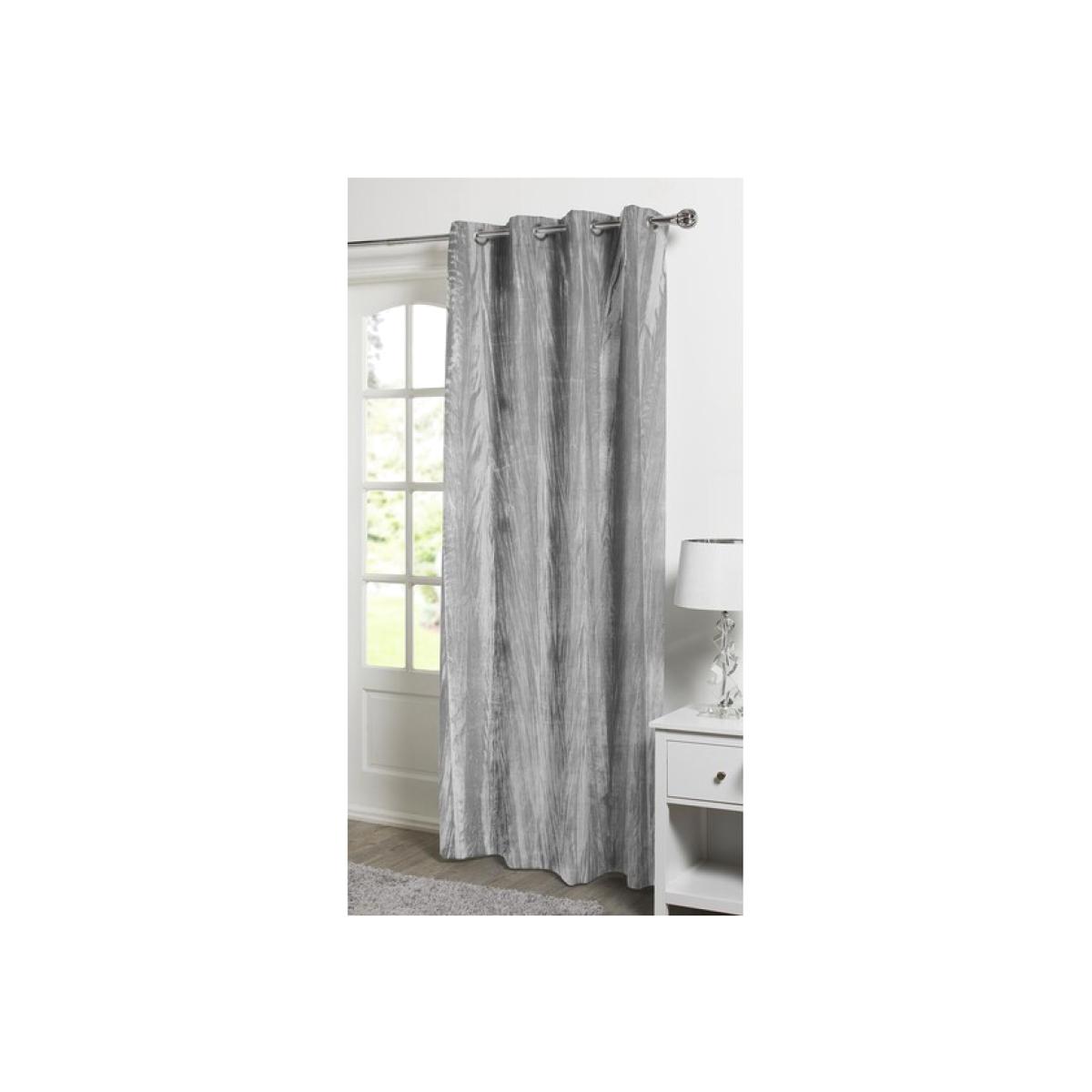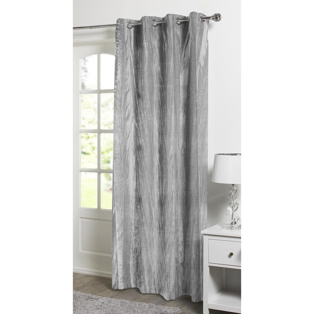 The gorgeous Anastasia Silver Velvet Eyelet Panel is fashioned from metallic velvet fabric with a unique and fabulous crinkled effect. Hanging from an eyelet header with complementing silver loops, this modern curtain panel will look exceptionally glamorous in your living space as it enriches your style with its lush texture.