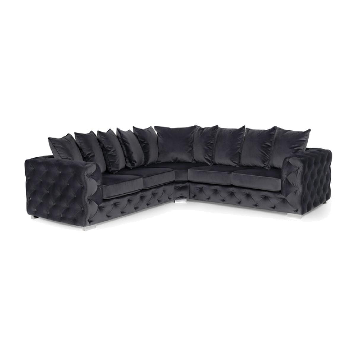 Plush Velvet Five Seater Corner Scatter Back Pillows supported with a hardwood frame. The Anasty Corner Sofa is a magnificent upholstery collection, offering affordable luxury, style and quality, perfect for any contemporary or modern home. An expertly engineered foam seat interior giving you the comfort of fiber with the retention of foam