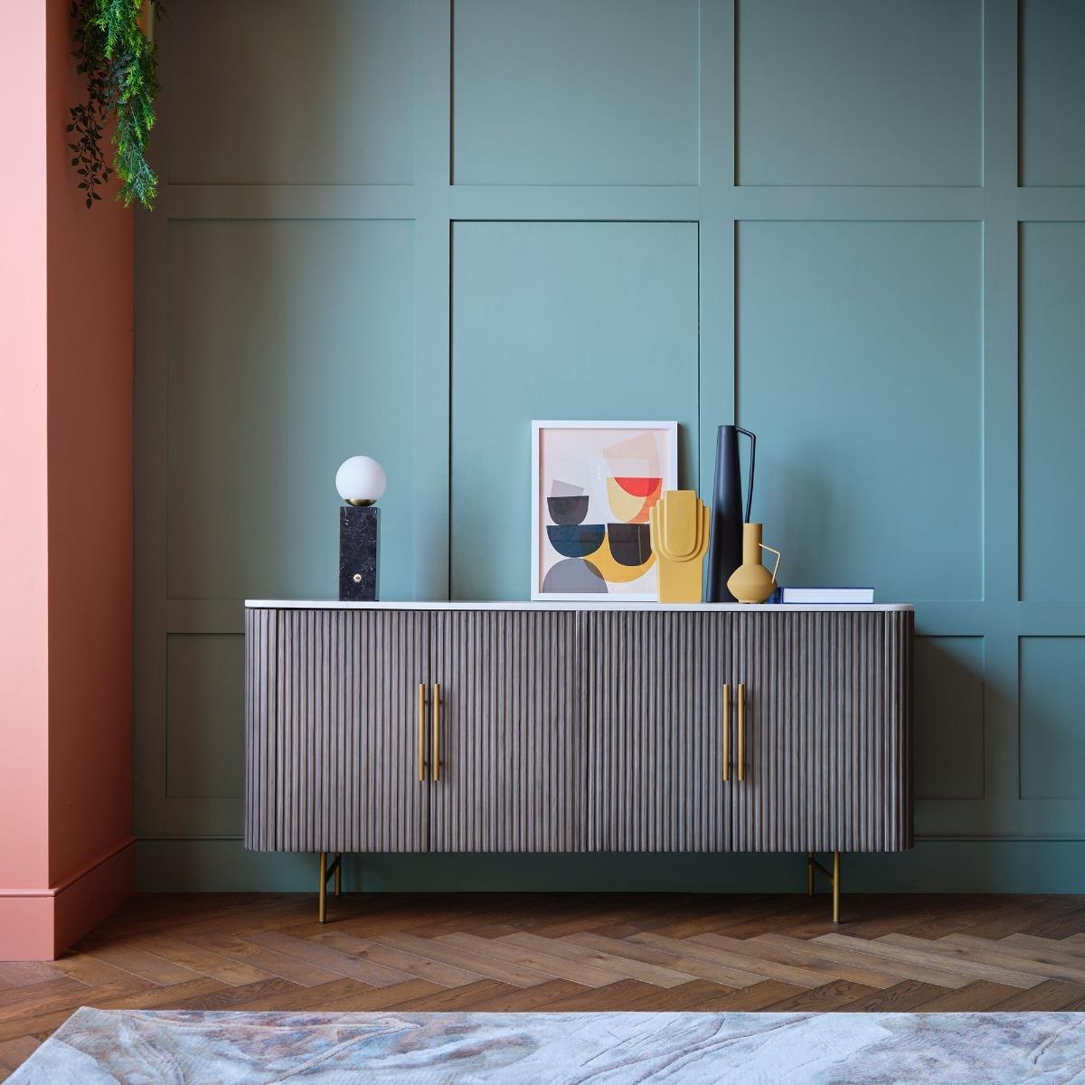 I’m a big fan of this marble-top sideboard for its mix of textured fluting and the clean, durable white marble surface - it brings a refined edge without feeling fussy. The brass legs and handles add warmth, so it works equally well in a contemporary living room, a Scandi-inspired dining area or even a pared-back hallway. Styling-wise, keep the top fairly simple: a low ceramic planter, a couple of coffee-table books and a sleek table lamp or a round mirror above will let the details shine. Inside, use woven baskets or matching boxes to corral table linens and board games, making the most of its spacious storage while keeping the exterior neat.
