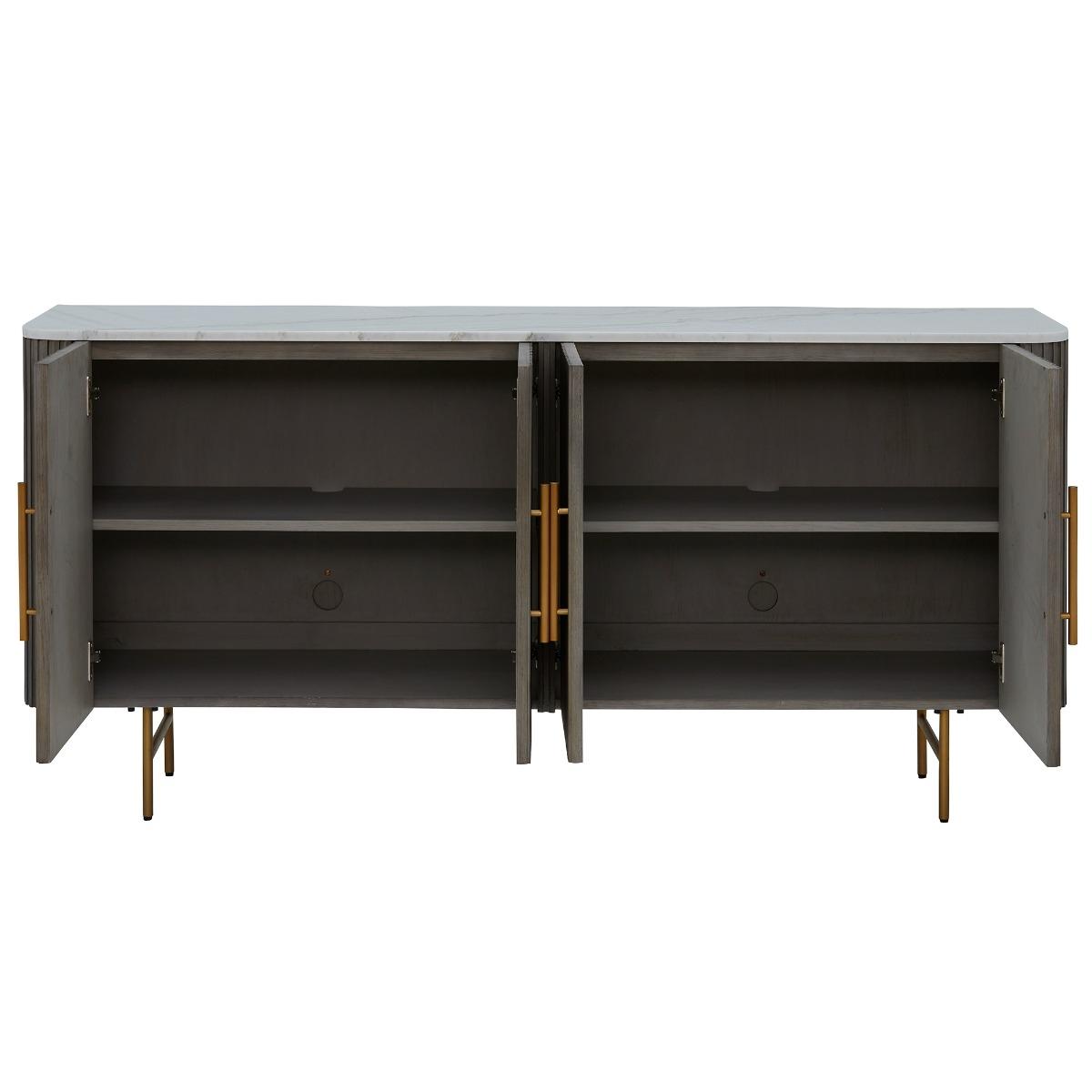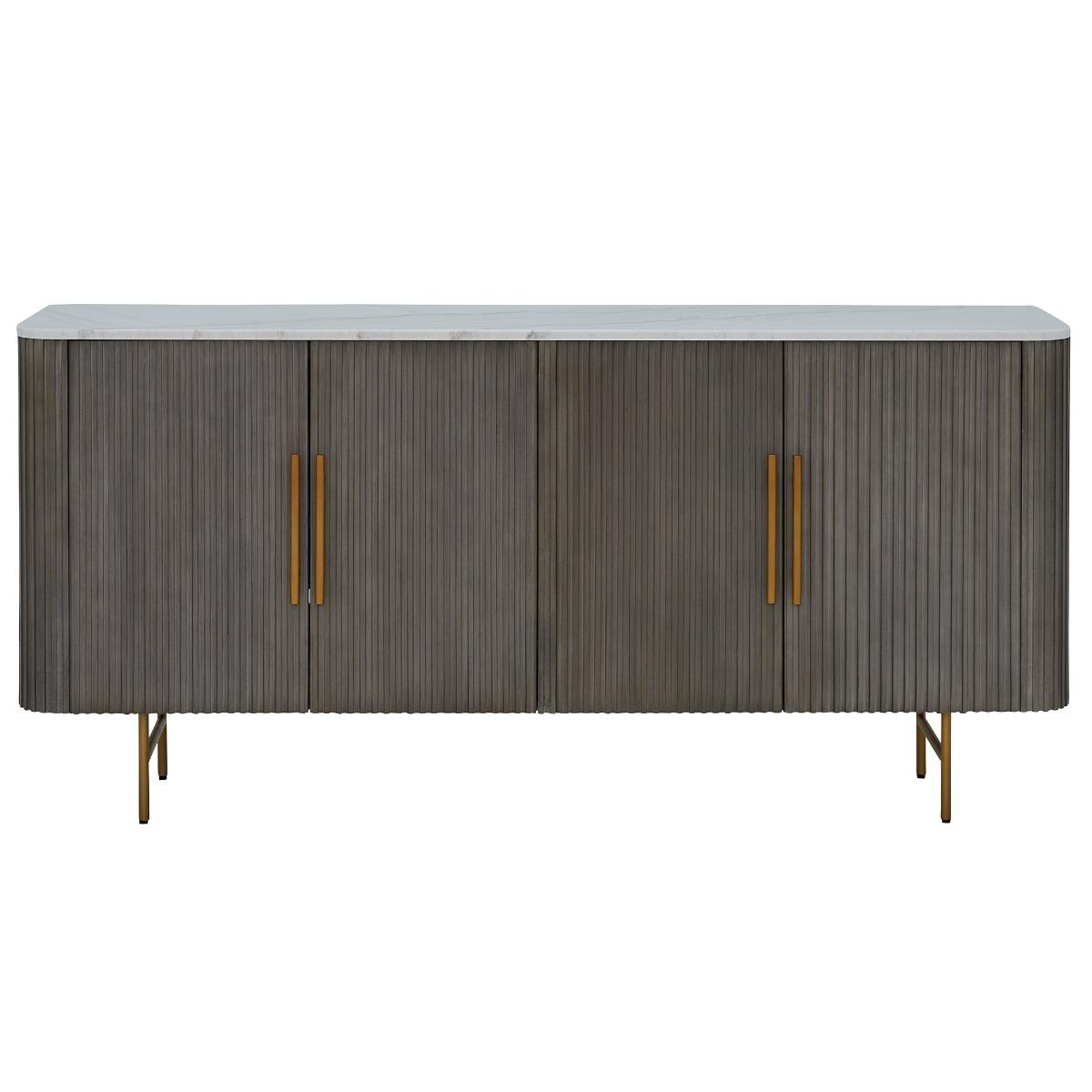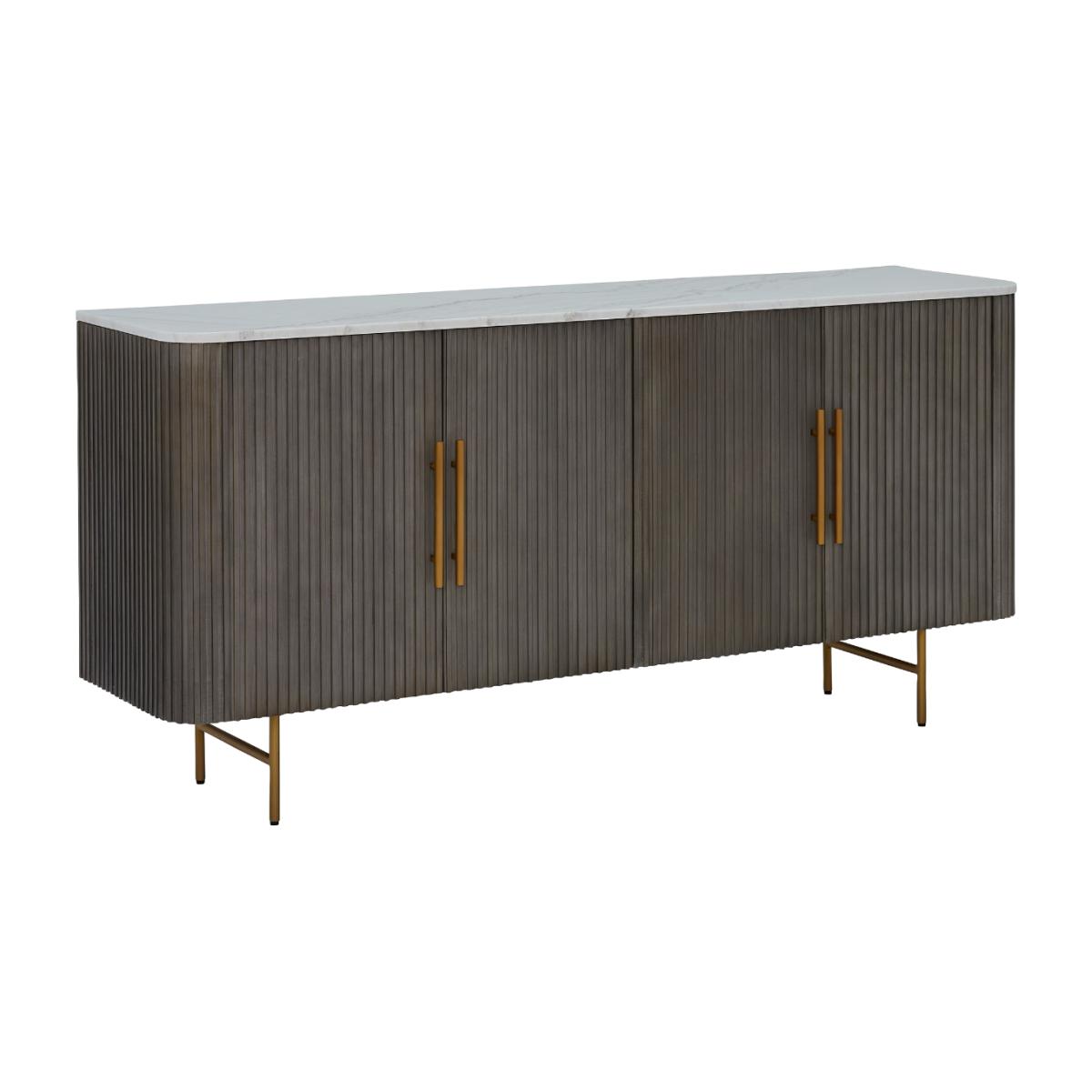 Design. With a stunning, quality white marble top and contrasting textured oak grey front, the Anatolia Wide Top Sideboard is the ultimate in sophisticated style as well as being a practical storage solution. The slim metal handles and legs add to the contemporary feel to the piece. The Anatolia Wide Top Sideboard will fit in and stand out perfectly within your modern dining area or hallway.