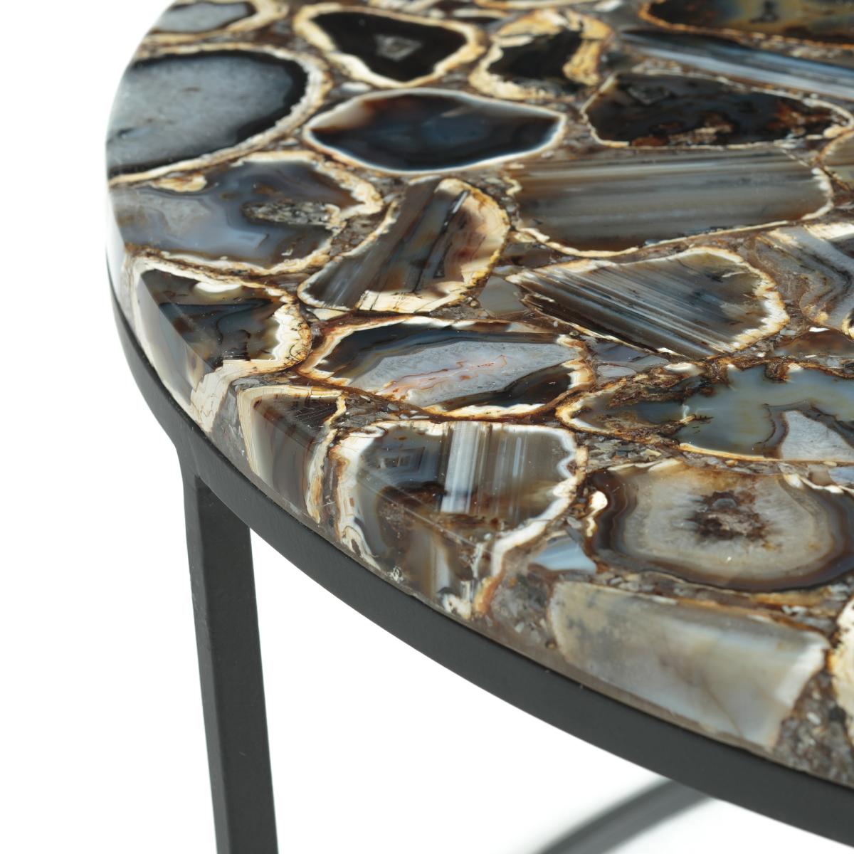 This coffee table is a real statement piece thanks to its striking agate surface paired with a sleek metal frame. I love how it brings a touch of natural luxury, making it perfect for both contemporary and transitional interiors. It works well in minimalist spaces where it can serve as a centrepiece, but also adds interest to more eclectic or bohemian rooms. Practical styling tips include keeping accessories minimal to highlight the surface’s beauty-think a couple of carefully chosen books or a small plant. Besides its aesthetic appeal, the agate top is durable and tactile, making it as functional as it is fashionable.