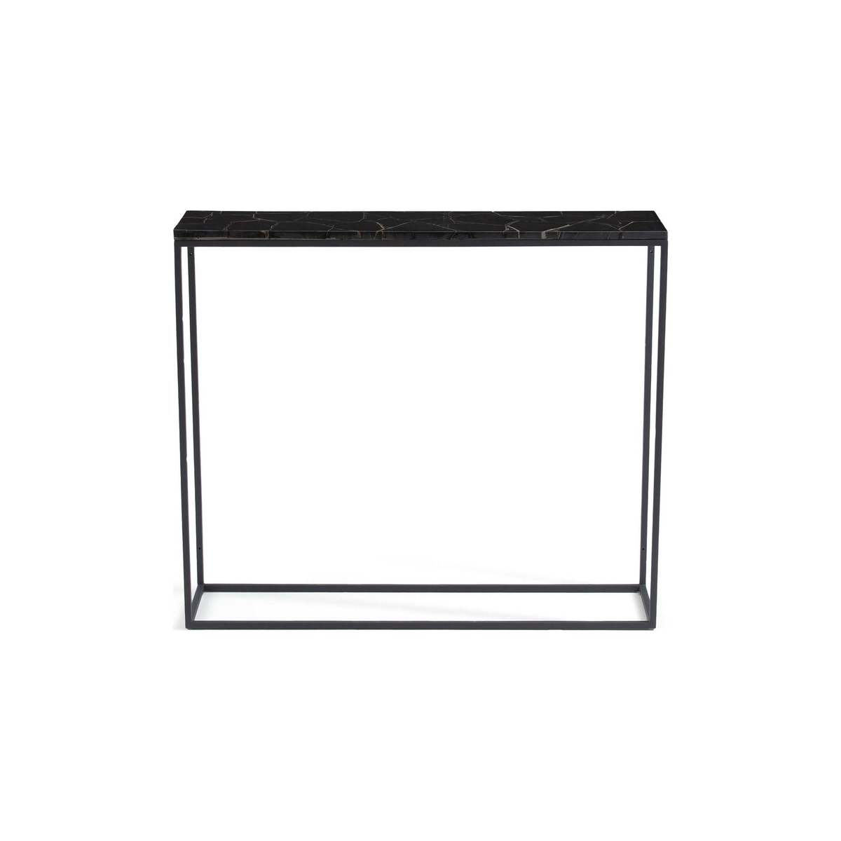 I love this table because of its sleek, minimalist design that effortlessly elevates a variety of interiors. It works particularly well in modern or contemporary spaces, adding a touch of sophistication without overpowering the decor. Practical styling tips include using it as a statement entrance piece with a lamp and a few decorative accents, or as a sophisticated backdrop in a living room for showcasing art or plants. Its slender profile means it can fit comfortably in narrower hallways or alcoves, making it a versatile addition to any home.
