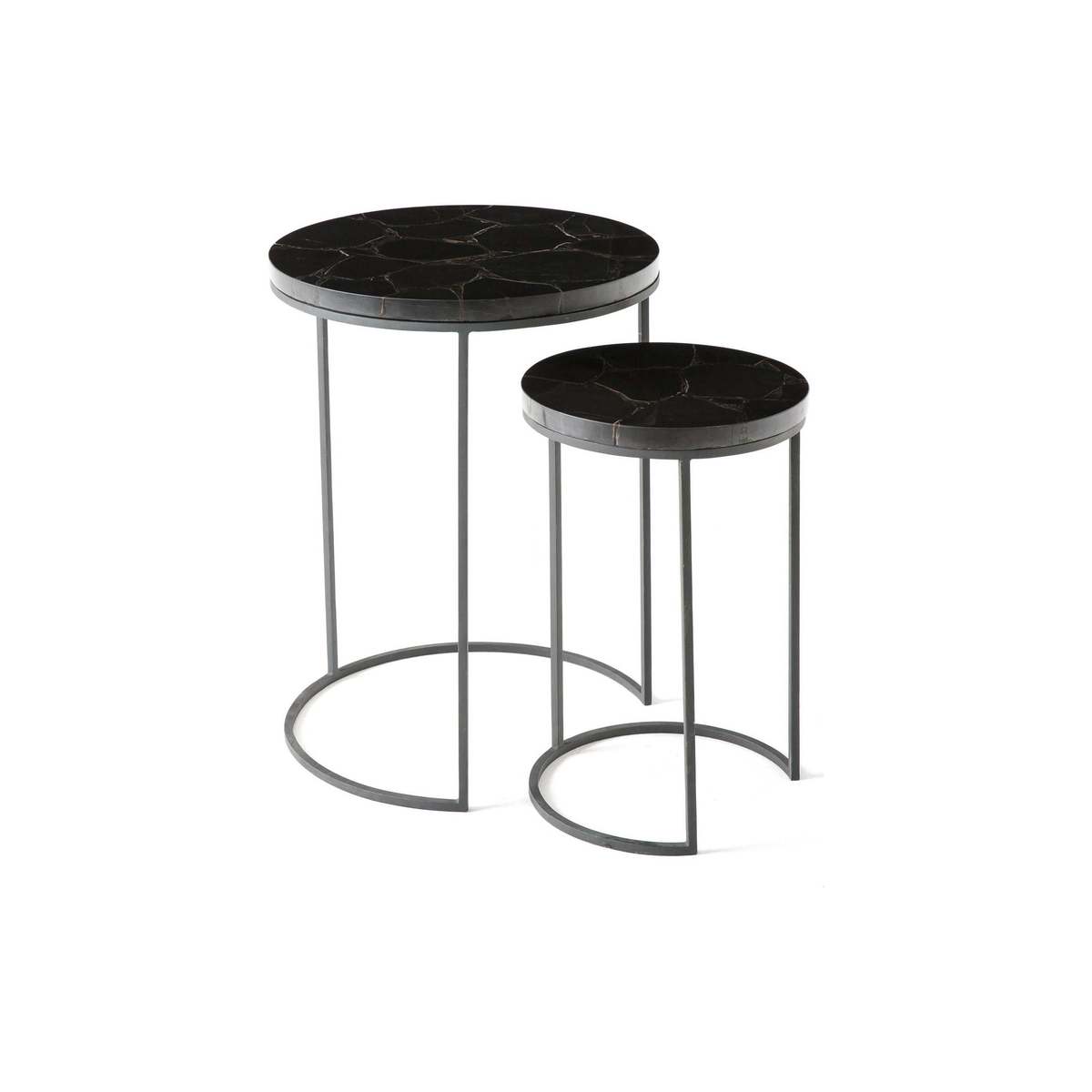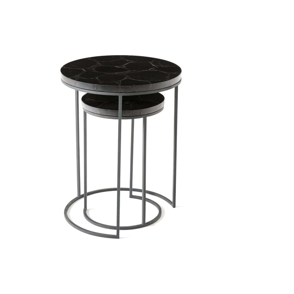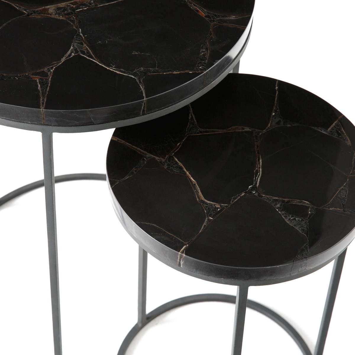 Anaximène Nest of 2 Side Tables in Agate & Metal