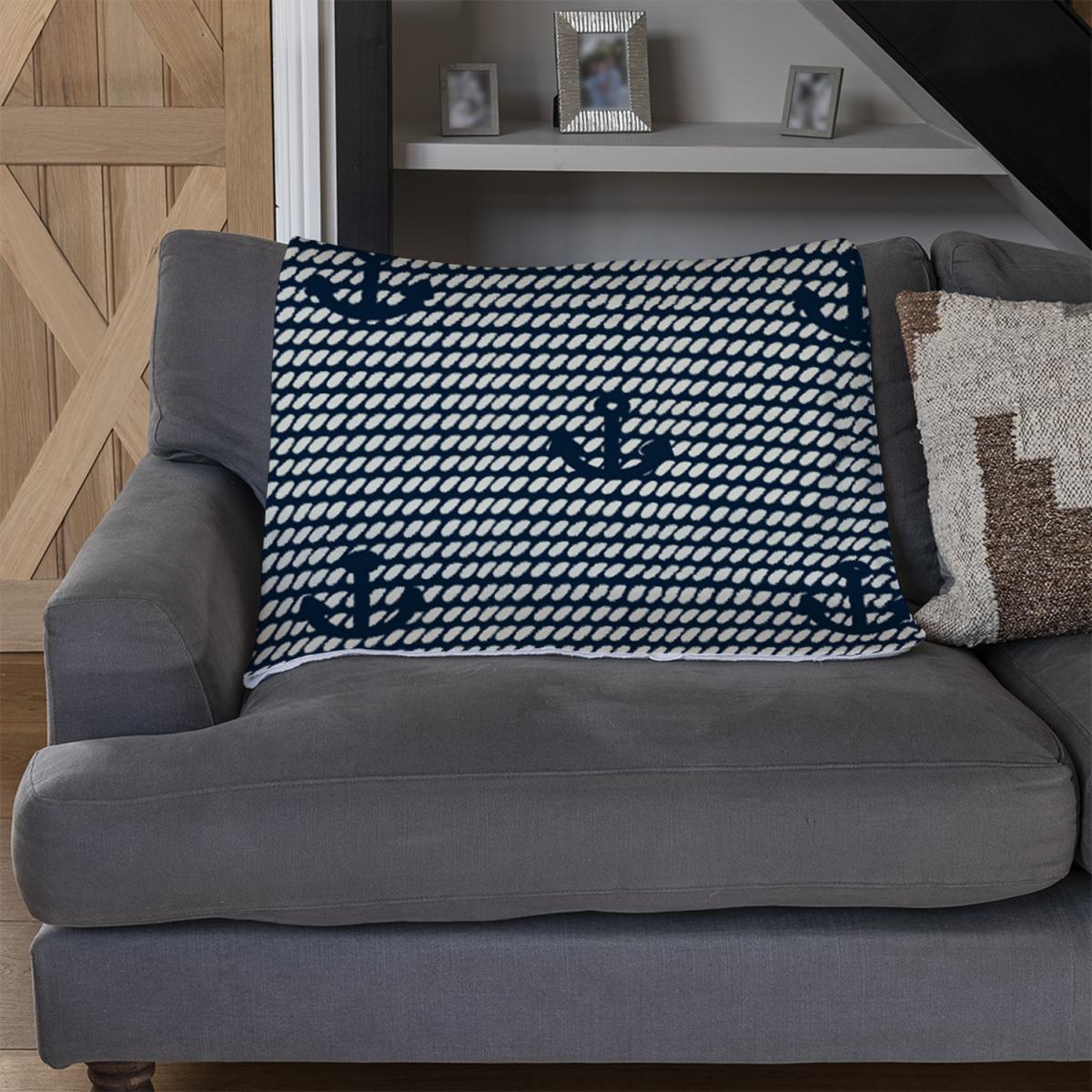 Anchors On Rope Pattern Blanket - Blue
