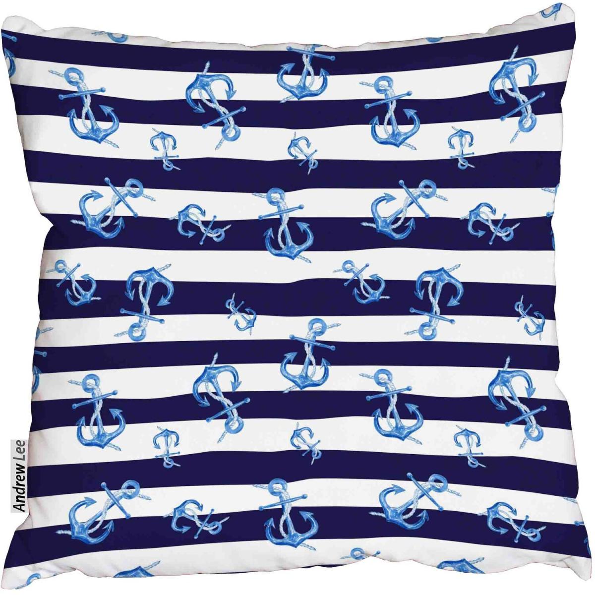 Anchors on white and blue marine Outdoor Cushion - Blue / 60cm