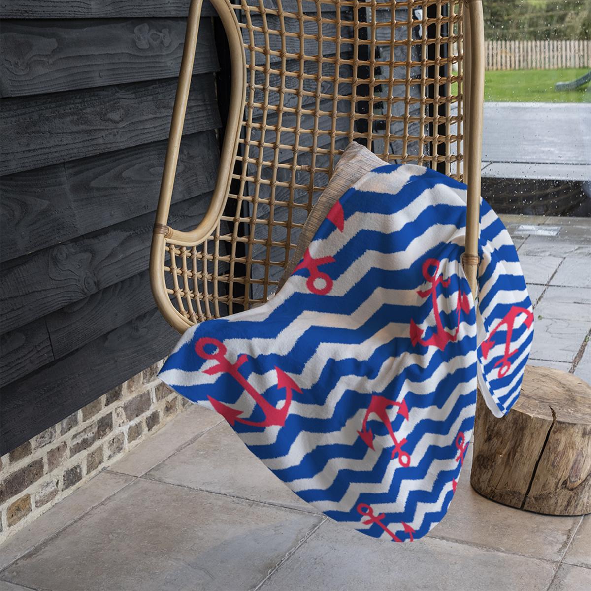 I love this nautical-inspired throw for adding a playful and bold statement to a variety of interiors. The zig zag stripes combined with the red anchors make it a versatile piece that works well in casual boho, seaside, or even modern coastal homes. It’s perfect draped over a sofa or layered on a bed for an instant splash of colour and pattern. Practical styling tip: keep the surrounding textiles neutral to let the striking pattern stand out, or pair with other marine-inspired accessories for a cohesive look. Its lightweight feel also makes it easy to switch up your look seasonally or when entertaining.