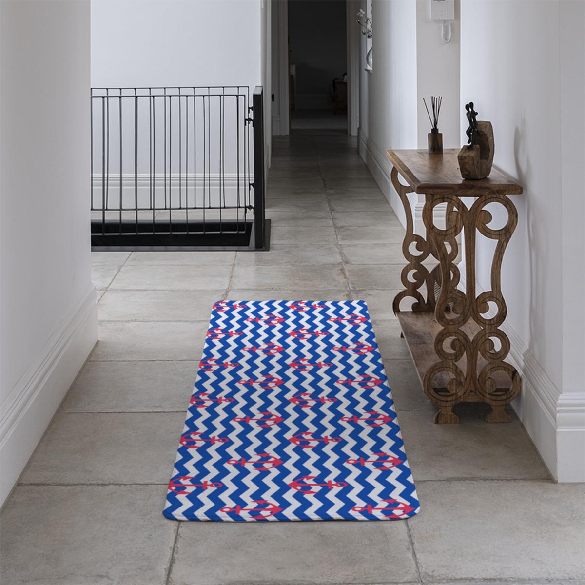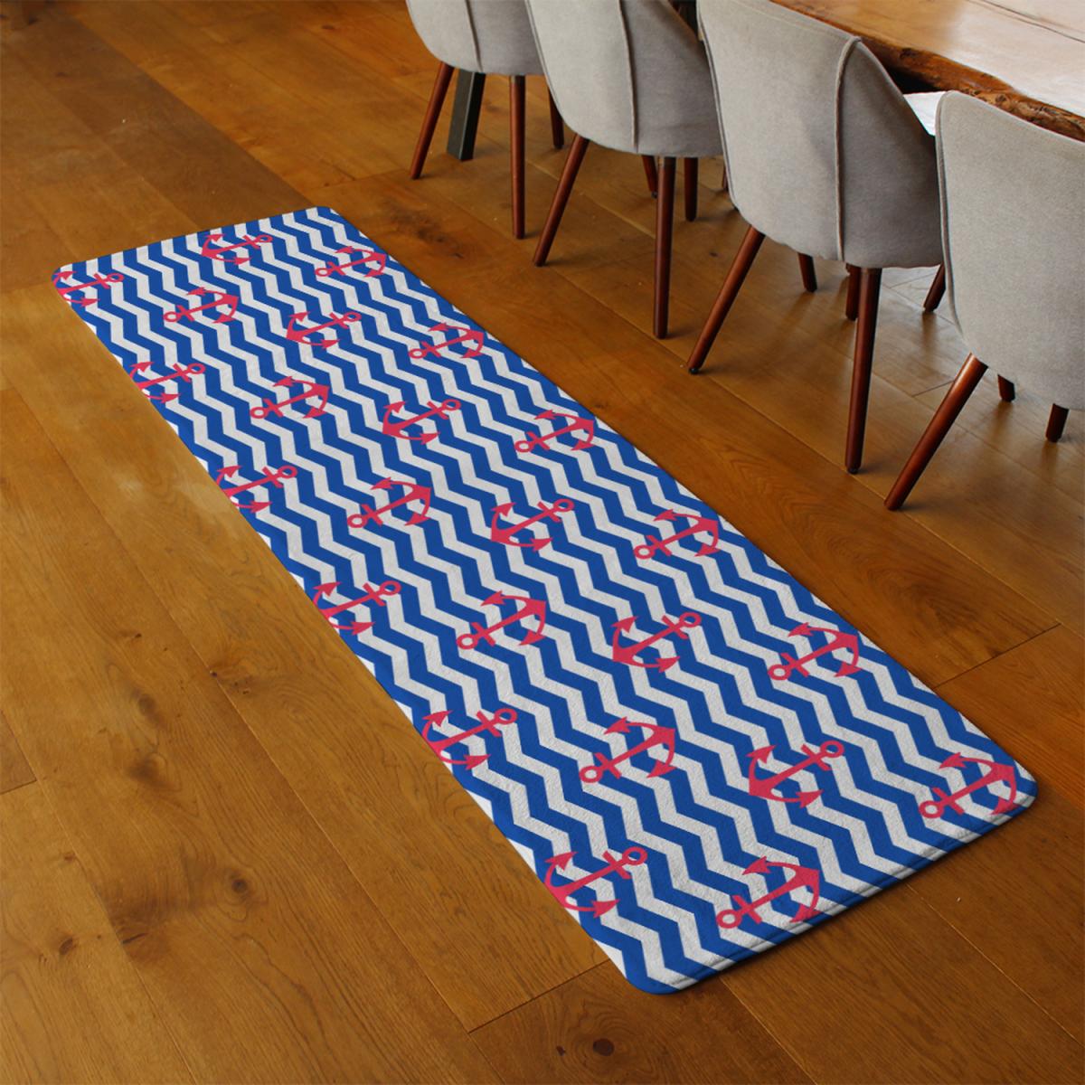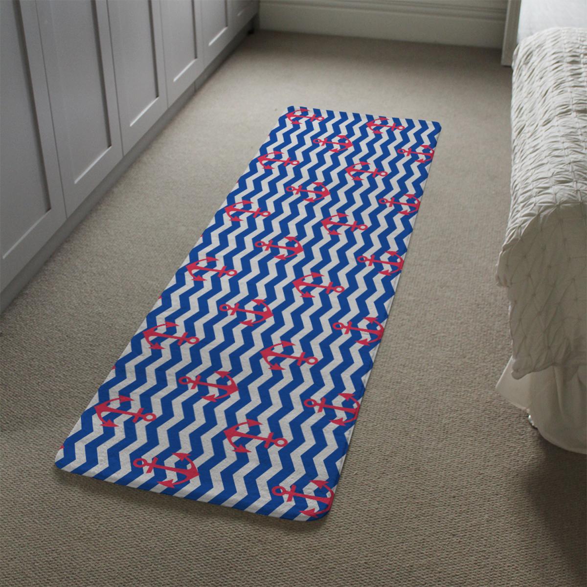 Anchors On Zig Zag Stripes Runner Rug - Blue