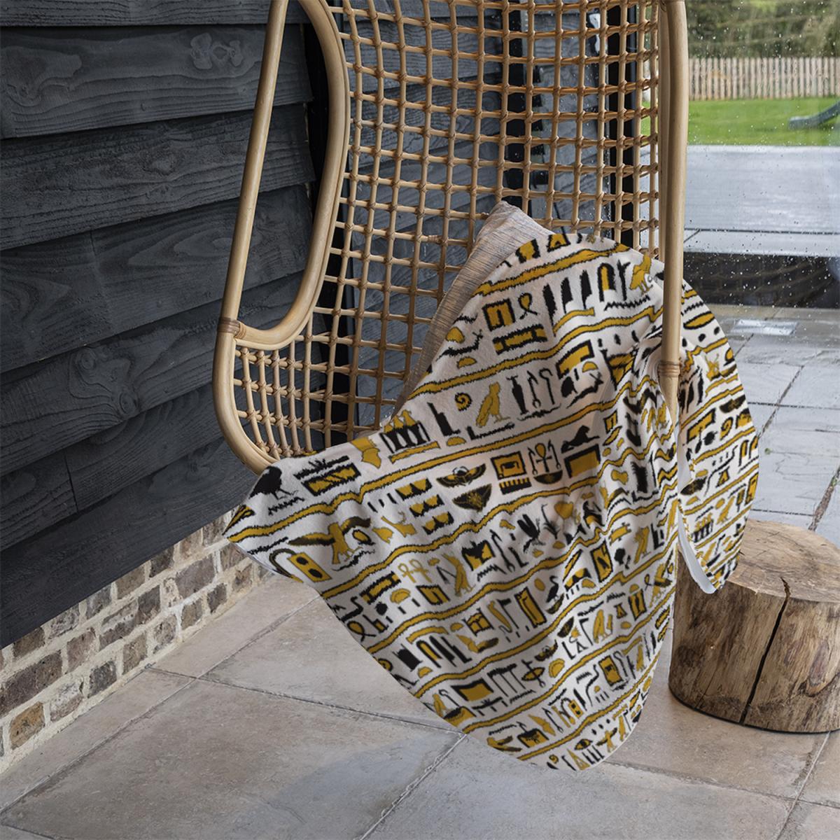 I love this blanket for adding a touch of historical character with a modern twist. Its warm brown tones and hieroglyphic pattern make it a versatile piece that can enhance boho, eclectic, or even desert-inspired interiors. It's perfect draped over a neutral sofa or layered on a cosy bed to introduce pattern without overwhelming the space. For styling tips, consider pairing it with textured cushions or earthy-toned throws to create a curated, inviting look. It also works well in a study nook or reading corner, adding both visual interest and comfort.