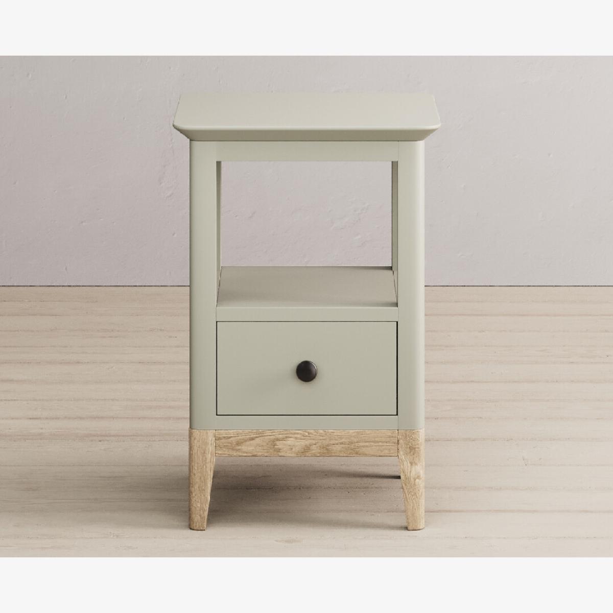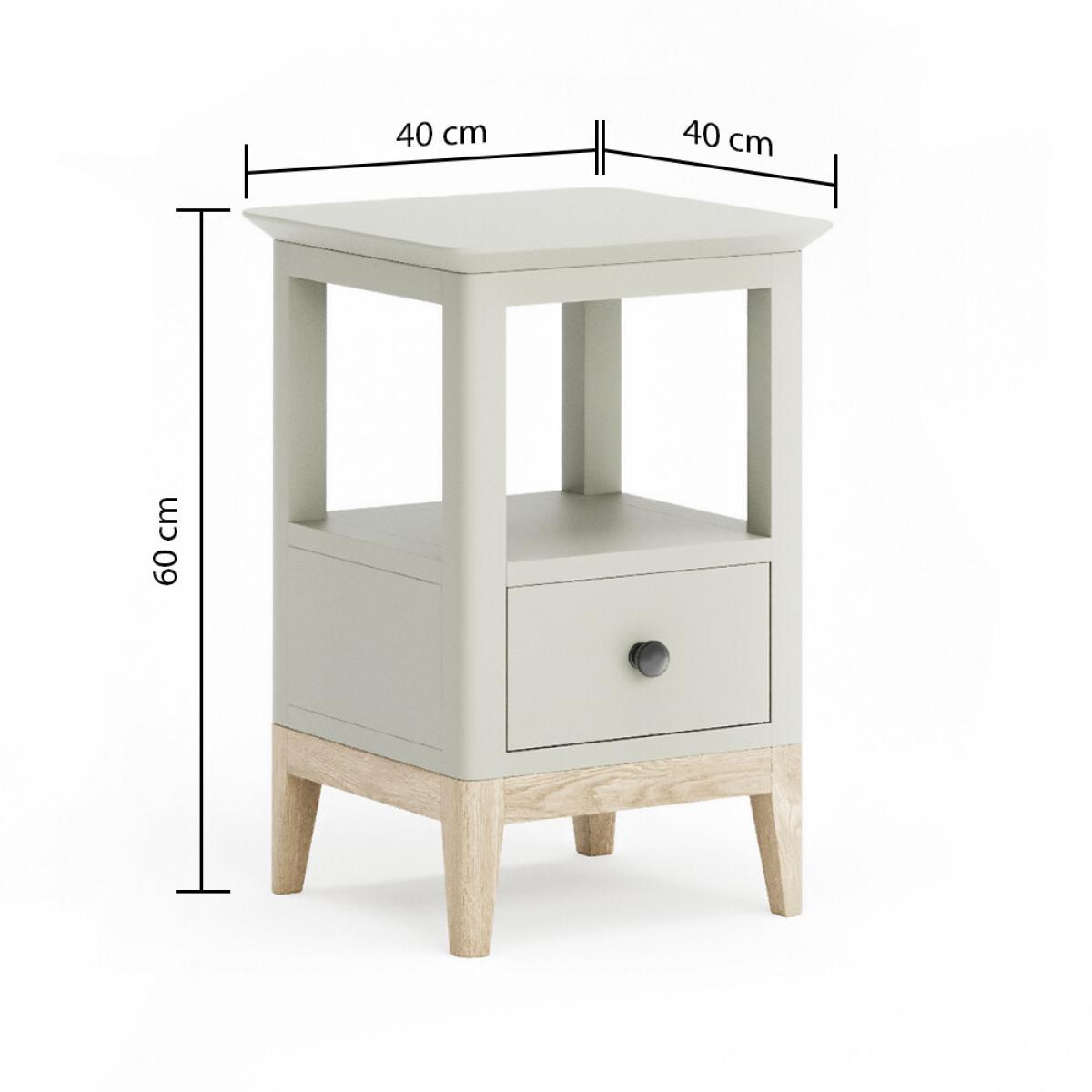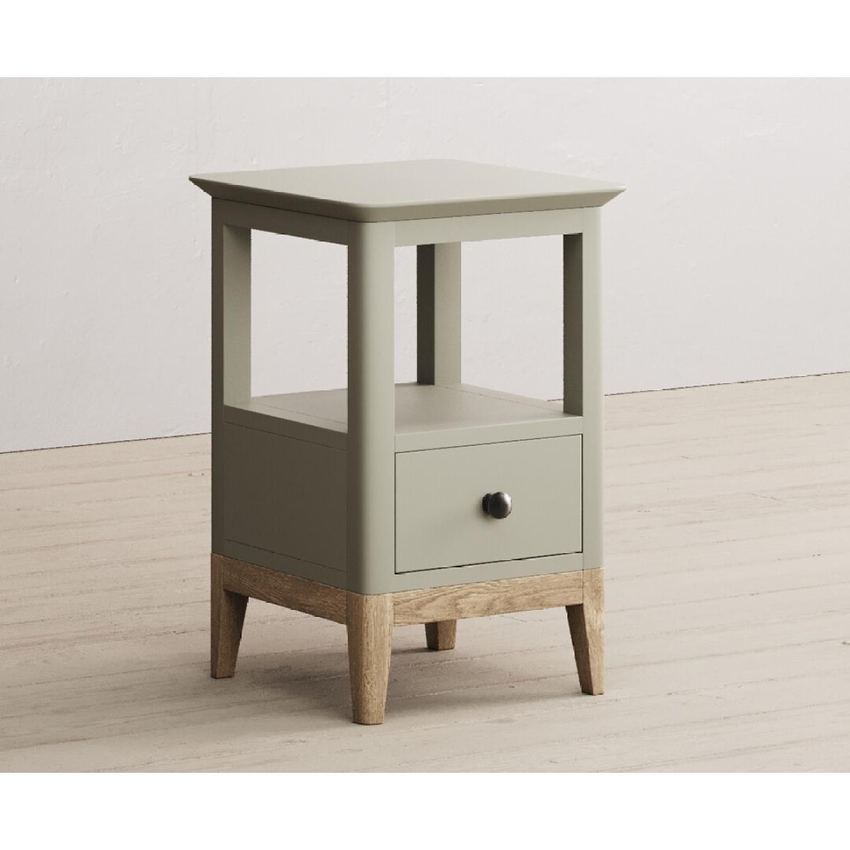 The Ancona Oak and Soft Green Painted Lamp Table is a stylish green painted solid hardwood lamp table with a lower shelf space and drawer.