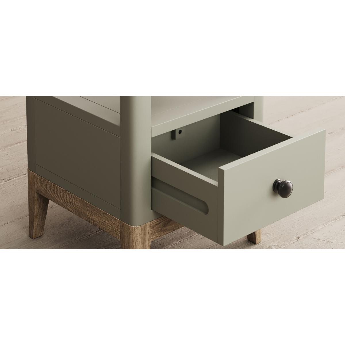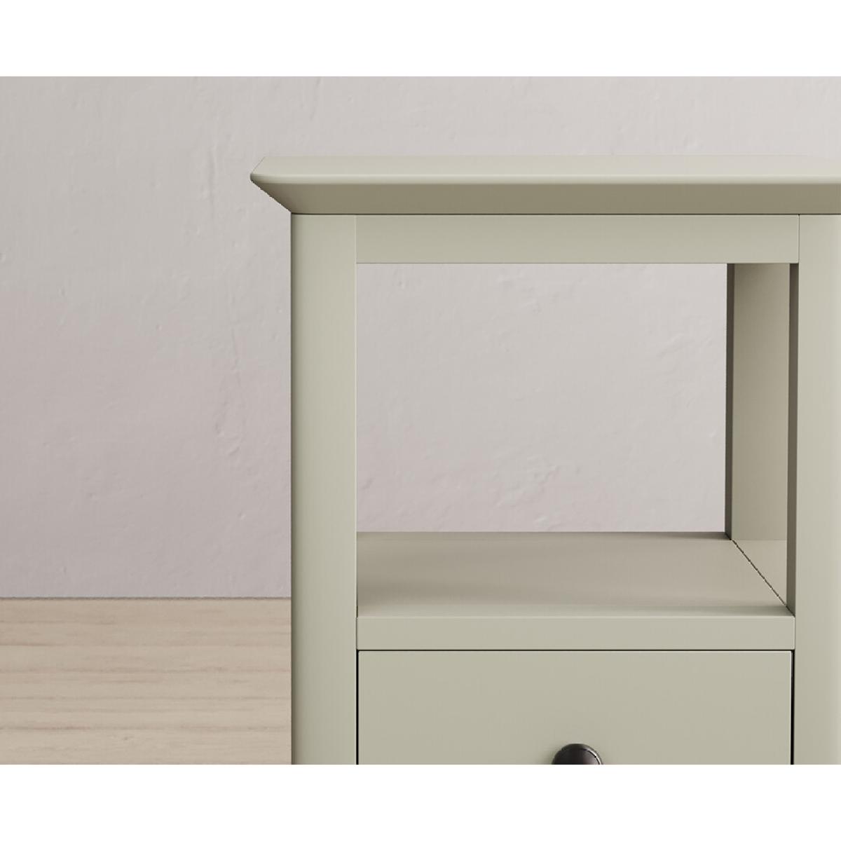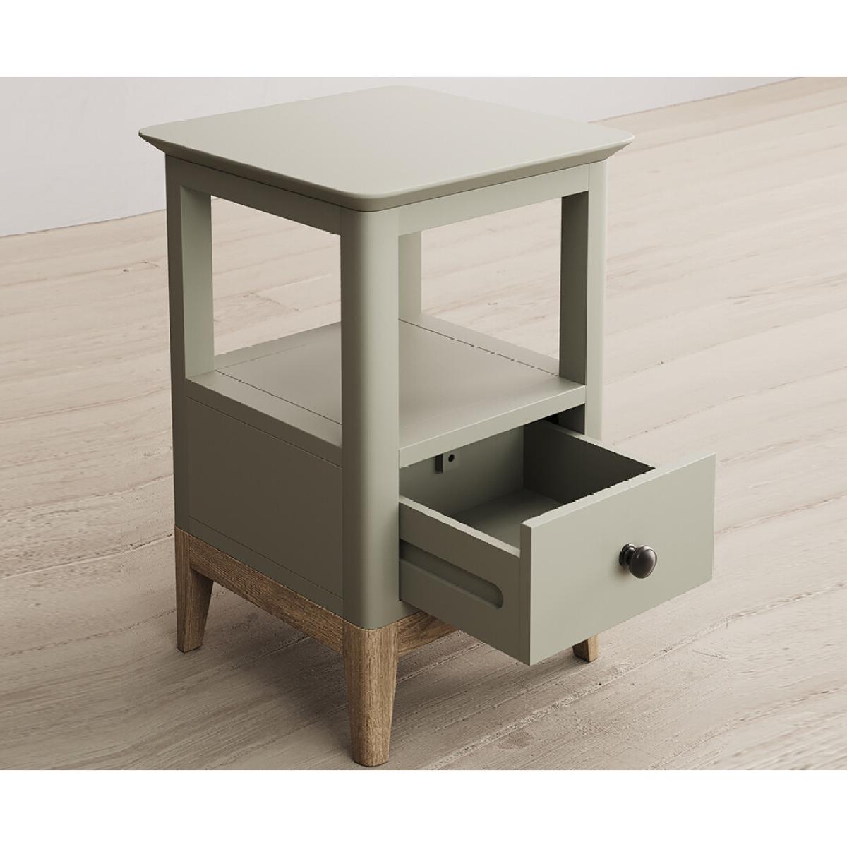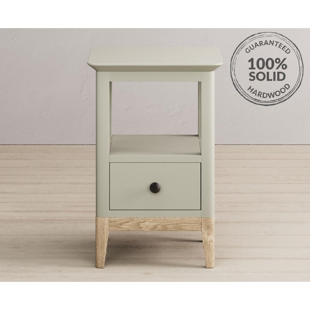 The Ancona Oak and Soft Green Painted Lamp Table is a stylish green painted solid hardwood lamp table with a lower shelf space and drawer.