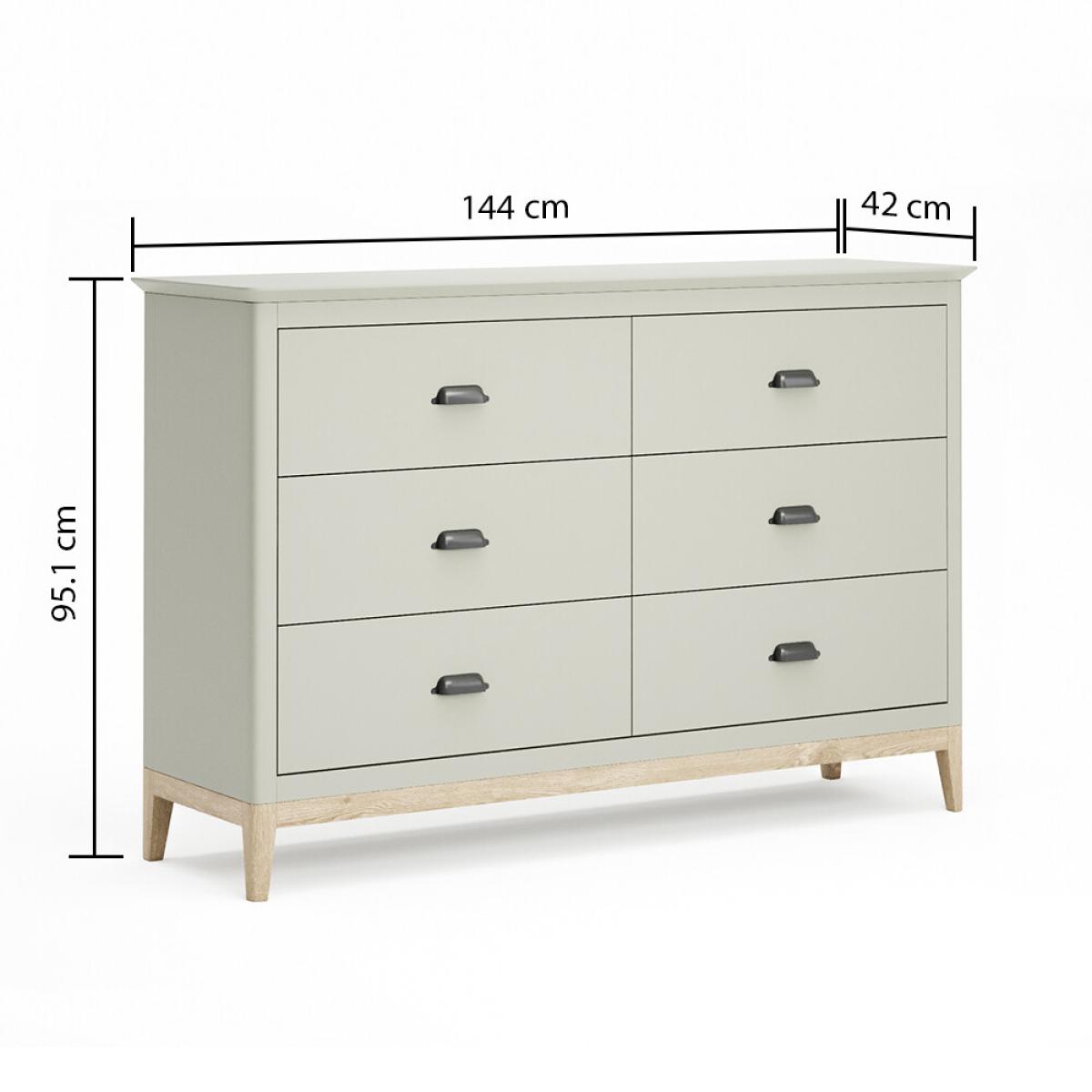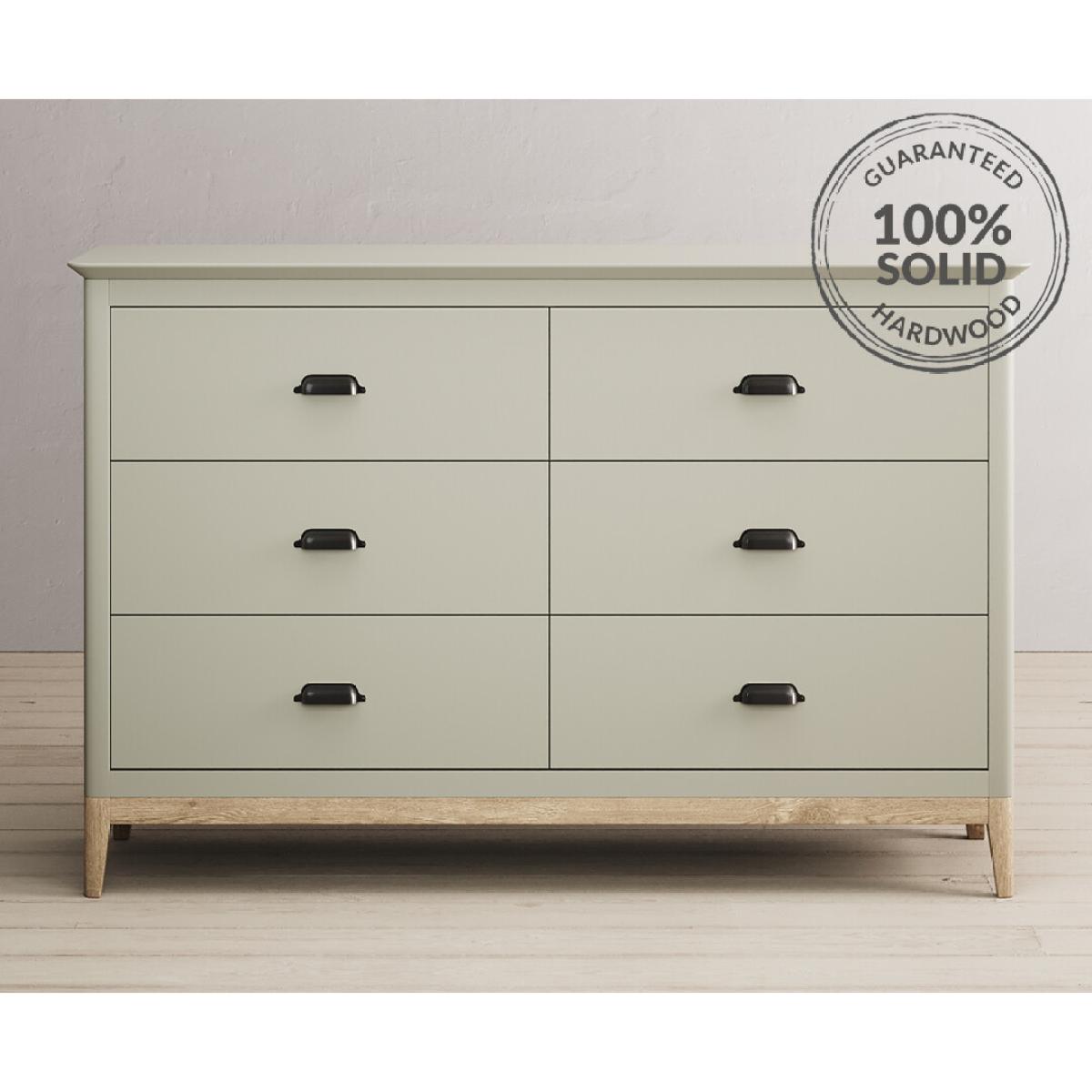 The Ancona Oak and Soft Green Painted Wide Chest Of Drawers is a large soft green painted chest of drawers with tapered solid oak legs.