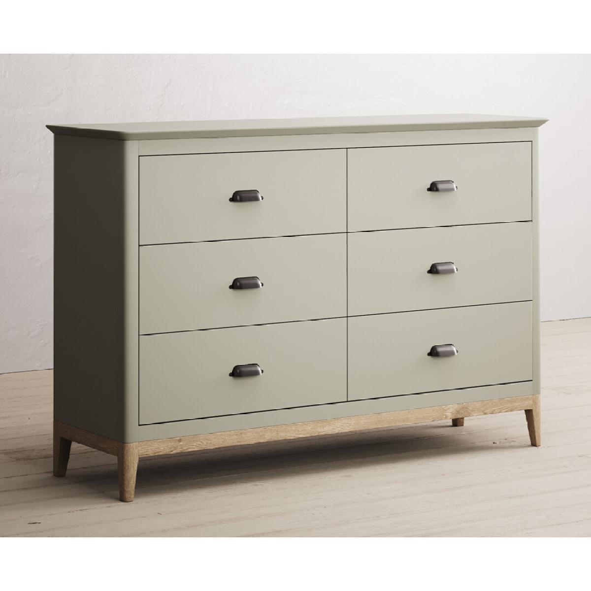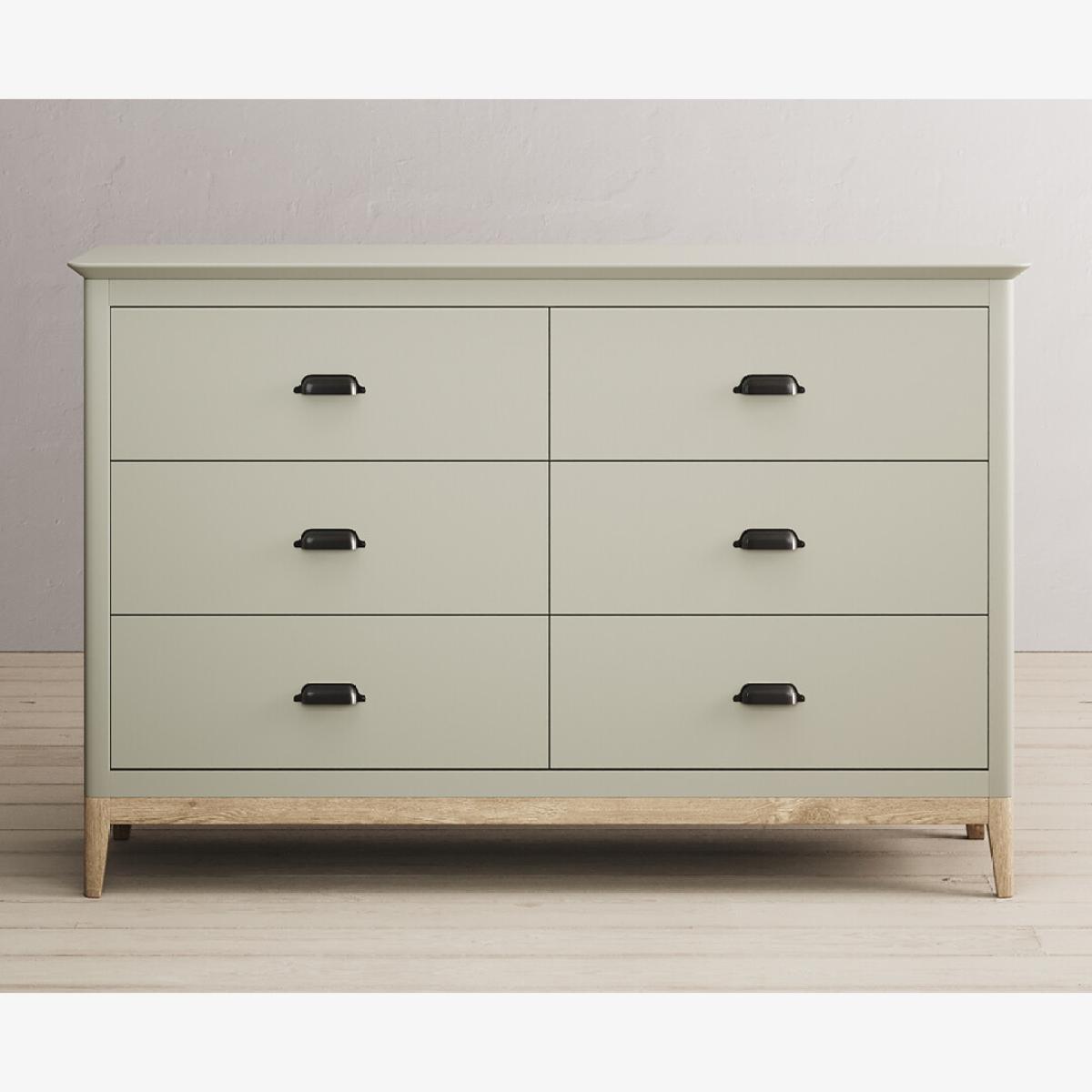 Ancona Oak and Soft Green Painted Wide Chest Of Drawers