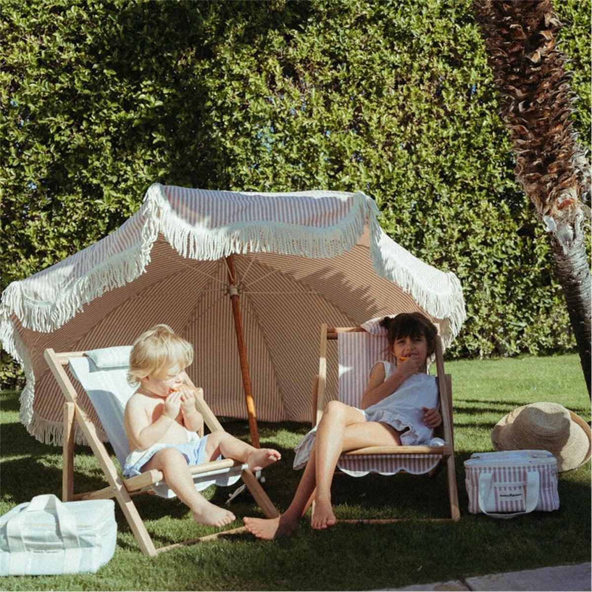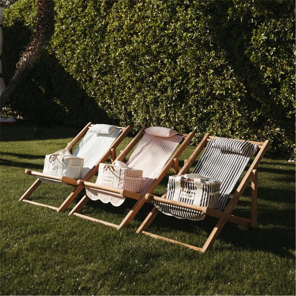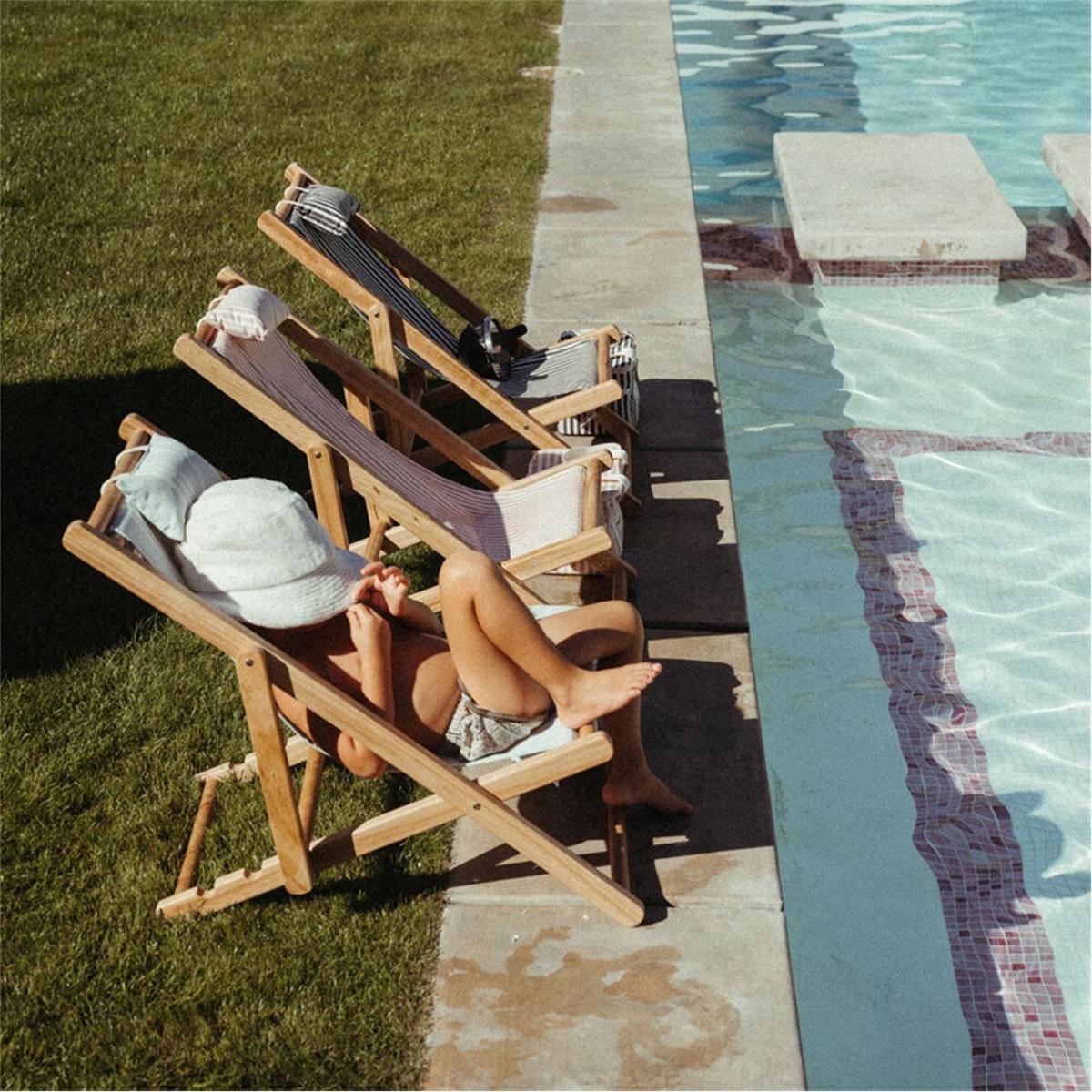 Ensure your little one has poolside style with this sling chair from Business & Pleasure Co. The perfect accessory for afternoons spent in the sun, this mini deck chair features a solid hardwood frame, sling canvas seat and comfy padded headrest. Perfect for sun-drenched days at the beach, it's available in two tones.