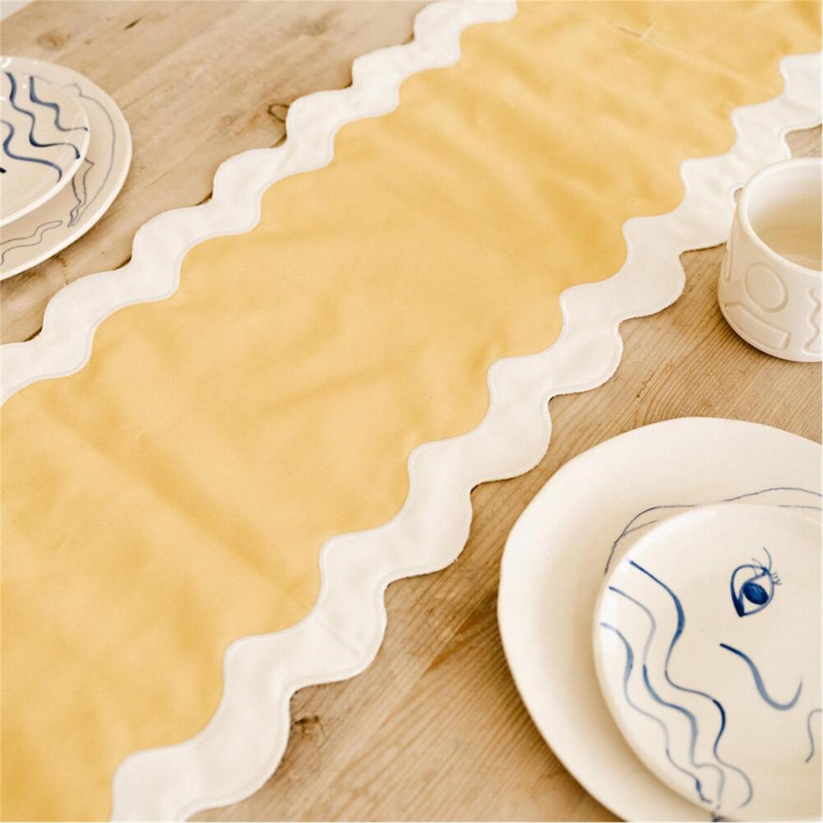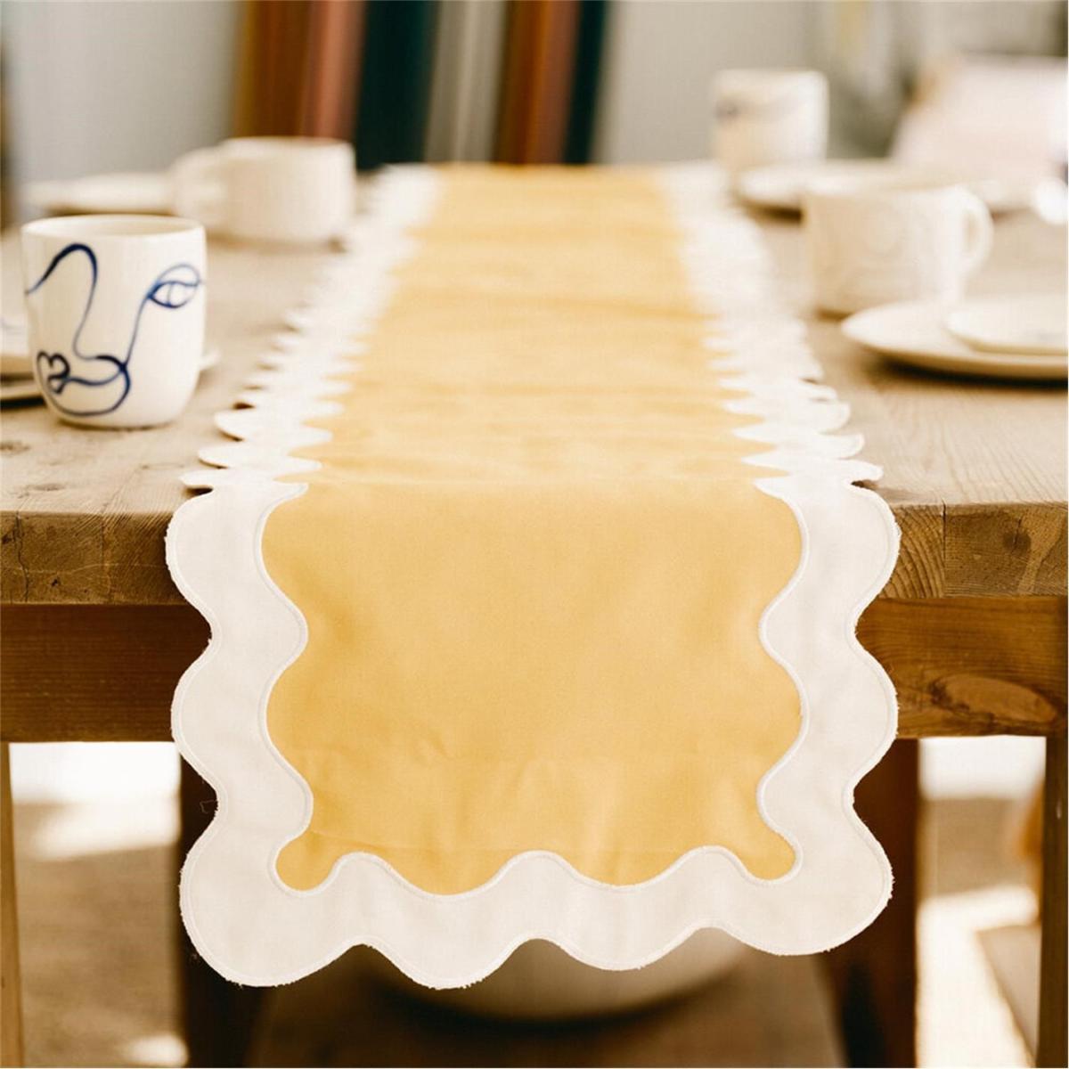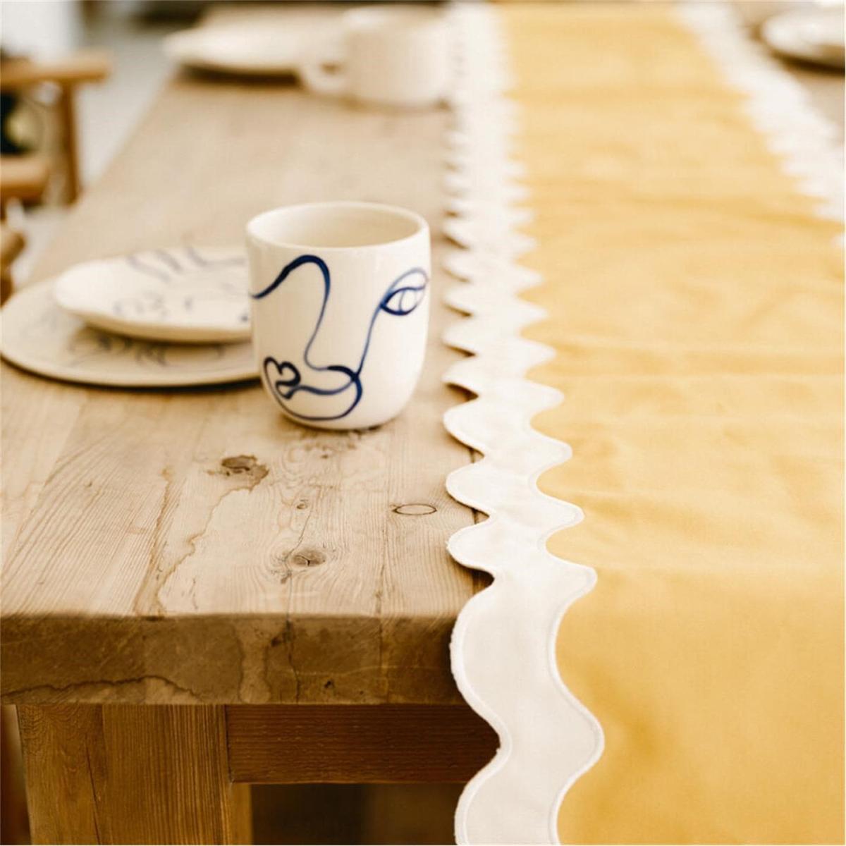 I love this scallop table runner for adding a touch of subtle texture and a hint of playful charm to any setting. Its lightweight design and delicate wavy edge make it versatile enough to work in both casual and more formal interiors, from country kitchens to modern dining rooms. Practical styling tips include layering it over neutral or patterned tablecloths to highlight its detail, or pairing it with simple dinnerware and fresh florals for an understated yet elegant look. It’s especially effective when used in spaces where you want to introduce a bit of personality without overwhelming the overall aesthetic.