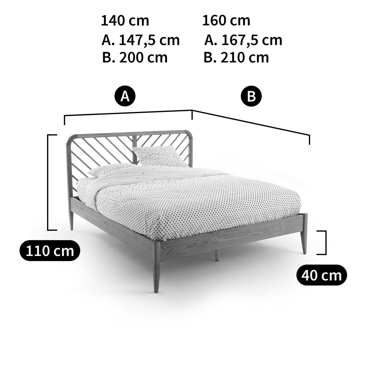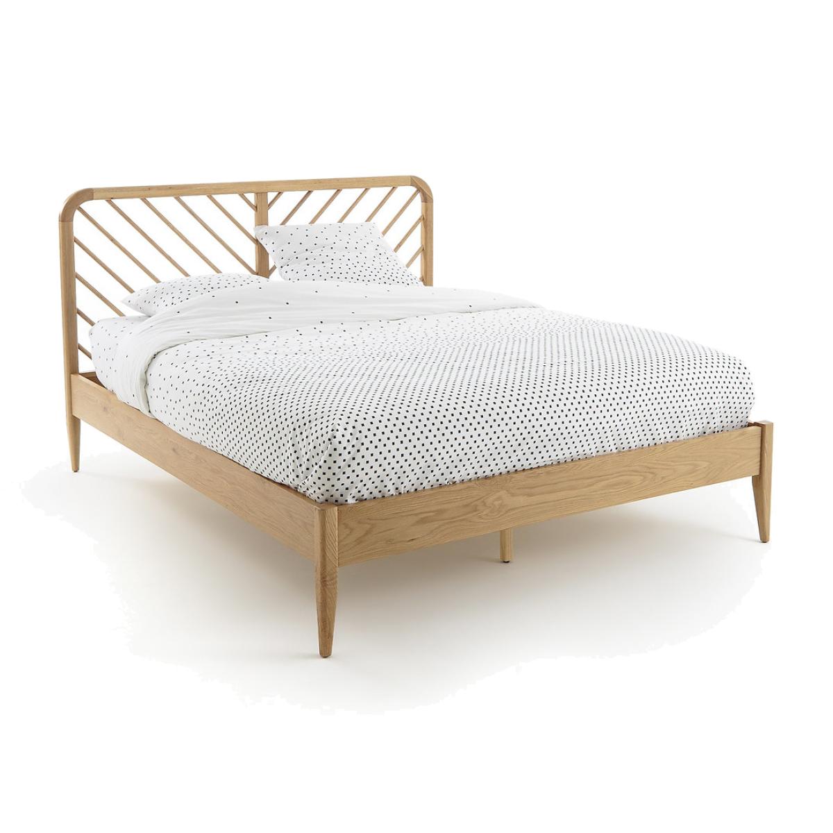 Clean and contemporary. The Anda bed is a La Redoute Intérieurs creation. Product Details • Solid oak, clear nitrocellulose varnish finish • Spindle headboard • Supplied with plywood slatted base • Reinforced legs in solid pineDimensions. Double Size (140 x 190cm) • Width: 147.5cm • Length: 200cm • Height: 110cm • Height of legs : 40cm • Height available under the long side: 23cm • Weight: 44.5kg. King Size (160 x 200cm) • Width: 167.5cm • Length: 210cm • Height: 110cm • Height of legs : 40cm • Height available under the long side: 23cm • Weight: 48kg Super King Size (180 x 200cm) • Width: 187.5cm • Length: 210cm • Height: 110cm • Height of legs : 40cm • Height available under the long side: 23cm • Weight: 50kgDelivery:. Assembly required. Available for home delivery. Note! Please check that all access points are large enough to accommodate your delivery (doors, stairs, lifts). Dimensions and weight of parcel4 parcels. Double size: • 154.5 x 118 x 13cm. 17.5kg. • 154.5 x 48 x 13cm. 8.5kg. • 206 x 21 x 15cm. 21.5kg. • 142 x 24.5 x 9cm. 11.5kg. King size : • 174.5 x 118 x 13cm. 19.4kg. • 174.5 x 48 x 13cm. 10kg. • 206 x 21 x 15cm. 21.5kg. • 162 x 24.5 x 9cm. 12.4kg. Super King size: • 195 x 118.5 x 13cm. 20.5kg. • 195 x 49 x 13cm. 10kg. • 206 x 21 x 15cm. 16kg. • 182 x 24.5 x 9cm. 16kg.