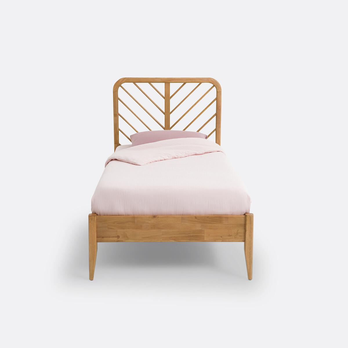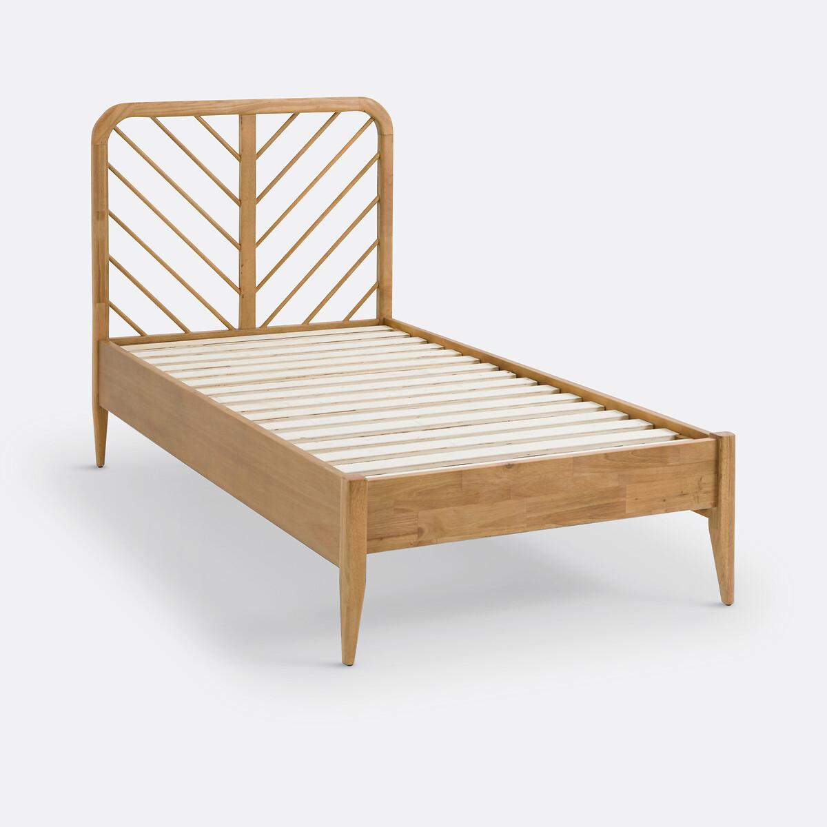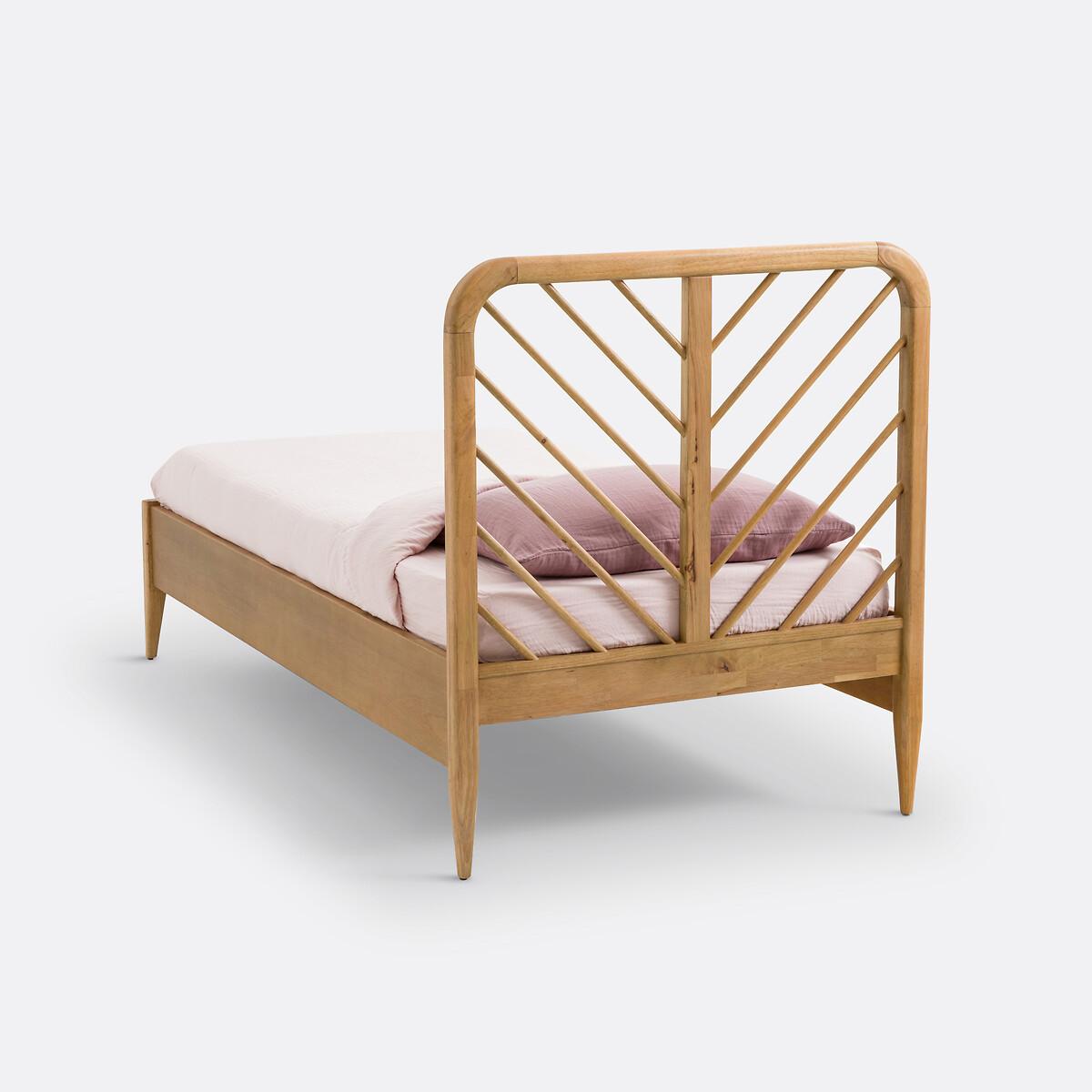 Clean and contemporary. The Anda bed is an iconic and timeless piece of furniture, it is one of our customers' favourites. A graphic design in solid rubberwood... Anda gives character to a room. An iconic bed in more ways than one. Designed by La Redoute Interiors. Product Details • Solid rubberwood, nitrocellulose varnish finish • Headboard with bars • Supplied with plywood slatted base • Reinforced legs in solid pineDimensions. Single: Sleeping area 90 x 190cm • Width: 97.5cm • Length: 200cm • Height: 110cm • Height of legs : 40cmDelivery:. This product is sold ready to assemble. Dimensions and weight of parcel2 parcels • L105.5 x H18 x D118cm. 26kg. • L201 x H16 x D18cm. 14kg.