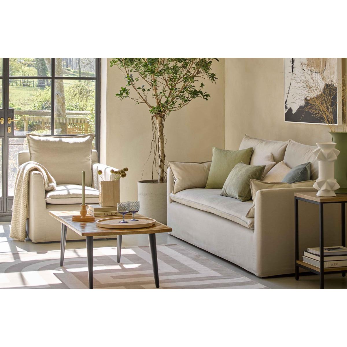 I love this sofa for its versatile and welcoming Nordic Pine Hygge aesthetic, which makes it perfect for creating cosy, inviting living spaces. Its chunky weave adds texture and a tactile element that lends warmth and depth to both modern and traditional interiors. It works especially well in relaxed, neutral-toned schemes or paired with layered textiles like soft throws and cushions in earthy or muted colours for that laid-back hygge vibe. For styling tips, consider placing it in a space with natural wood accents or greenery to enhance its organic feel. Keep accessories simple and understated to let the sofa be the star, but don’t be afraid to mix in some rustic or minimalistic decor to complement its casual appeal.