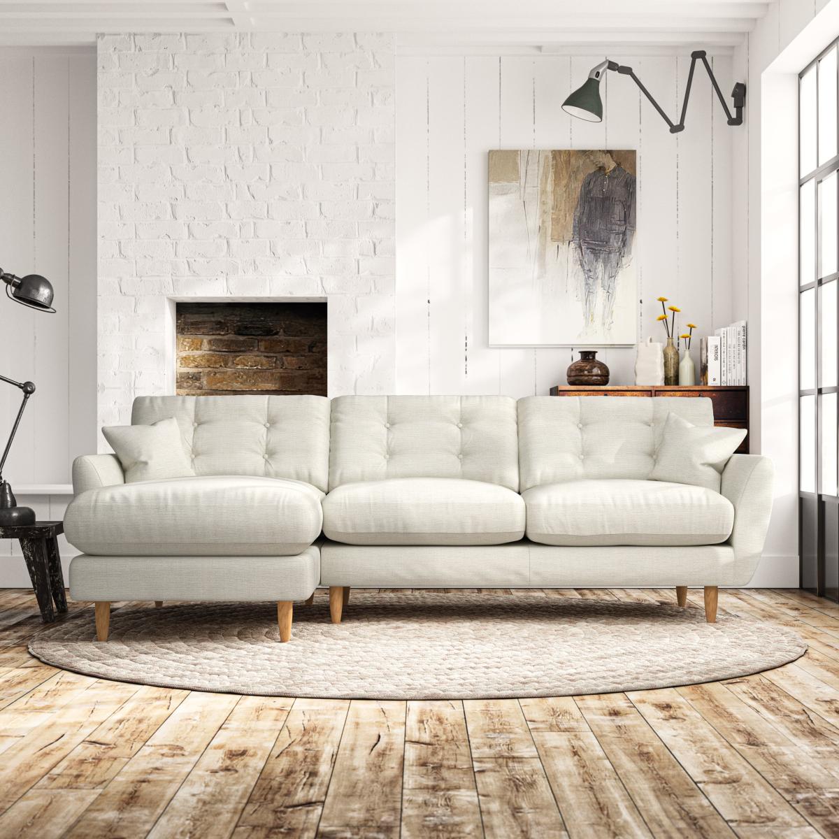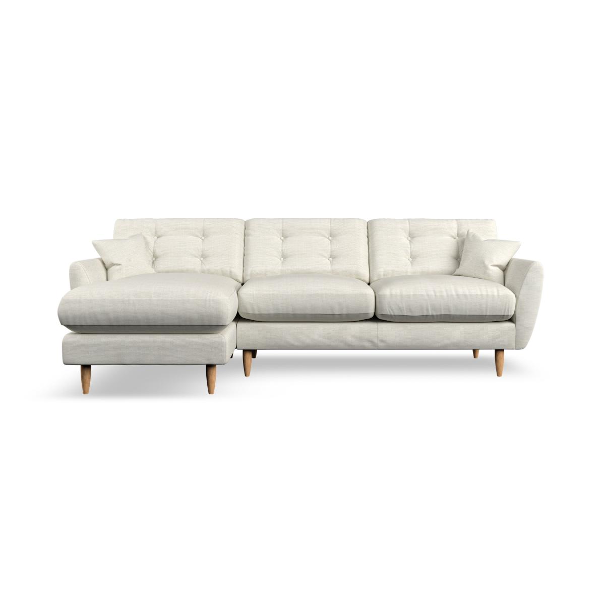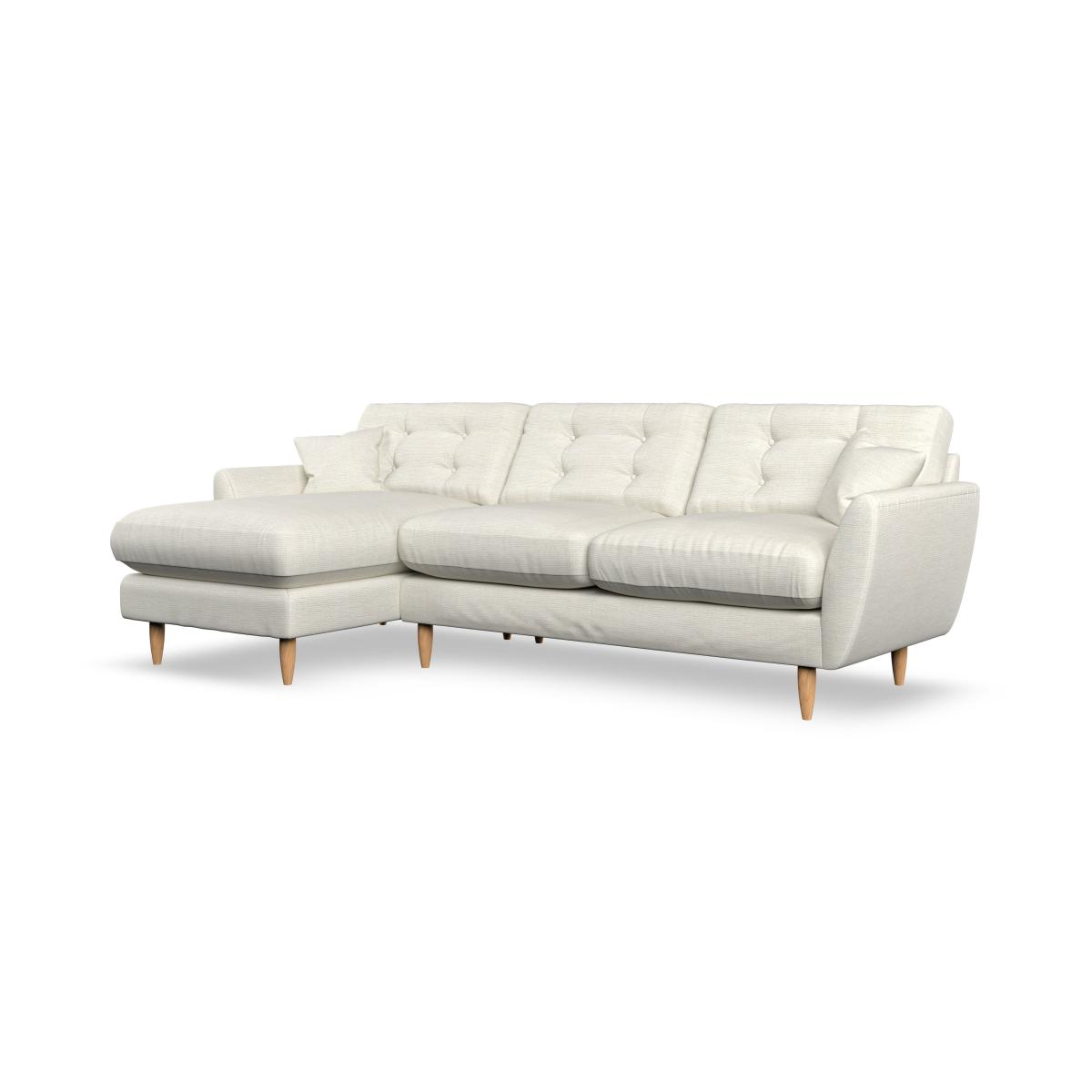 * Scandi design* Tear drop arms* Scatter cushions* Top stitched arm details* Serpentine seat springs* Choose your orientation, support, fabric and leg colour The Anders corner chaise sofa offers the perfect combination of Scandinavian-inspired design and spacious comfort. Its elegant tear-drop shaped arms, fibre-filled scatter cushions, and sleek hardwood legs in a choice of finishes create a modern yet timeless look. Designed for versatility, the corner chaise provides ample room to stretch out and relax, while the fibre-filled back cushions, complete with a stylish double-row button pull detail, ensure both comfort and support. Customise your sofa with a choice of seating options: a supportive, low-maintenance foam seat or the ‘Qualofill Blue’ fibre seat.